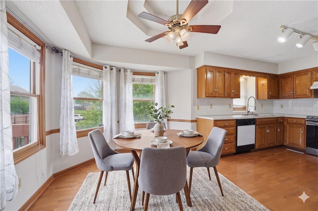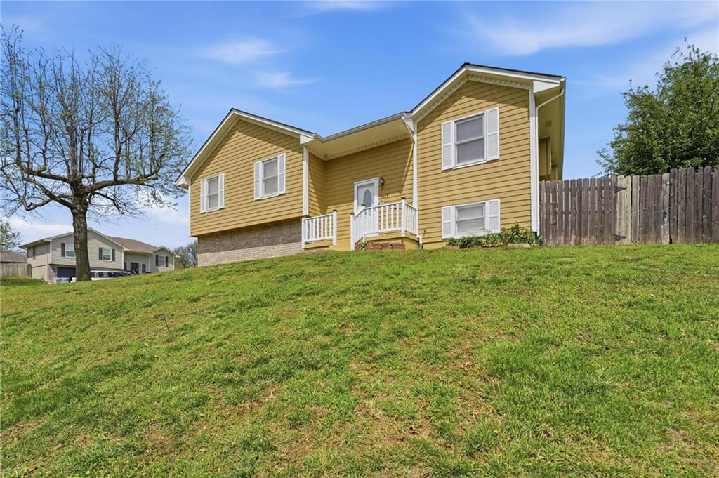 This well-maintained home offers a comfortable and functional layout with a mix of inviting living spaces and practical features. The kitchen is equipped with laminate countertops, luxury vinyl plank flooring, a pantry, and an eat-in area, creating a bright and efficient space for daily living. The main living area features carpeted flooring and a ceiling fan, providing a cozy setting to relax or entertain. The primary bedroom includes a walk-in closet, while additional bedrooms offer ample space and storage. Bathrooms are thoughtfully distributed, including a main floor full bath with a tub/shower combination and a jacuzzi feature, a private primary bath, and an additional full bath in the basement. The unfinished basement provides excellent potential for future expansion or storage and also includes the laundry area and utility space. Outside, the fenced backyard offers privacy and room to enjoy outdoor activities.