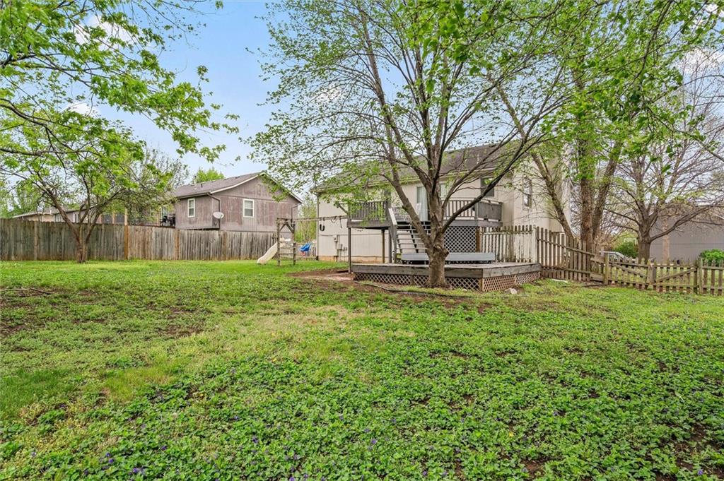 Welcome to Golden Lane Heights, a well-maintained 3-bedroom, 2-bath split-level home ideally situated on a spacious corner lot in the heart of De Soto. Offering a thoughtful layout, generous living spaces, and excellent outdoor features, this home is designed for both everyday comfort and easy entertaining. Step inside to find inviting living areas filled with natural light, creating a warm and welcoming atmosphere from the moment you enter. The split-level design provides a functional separation of space, allowing for both connection and privacy—perfect for a variety of lifestyles. Whether you're hosting guests or enjoying a quiet evening at home, the layout offers flexibility to suit your needs. The home features three generously sized bedrooms and two full bathrooms, providing ample room for family, guests, or even a dedicated home office. Each space is well-proportioned and ready to make your own. One of the standout features of Golden Lane Heights is the outdoor living space. The large deck is ideal for entertaining, grilling, or simply relaxing while overlooking the expansive yard. Positioned on a corner lot, the property offers added space, privacy, and curb appeal, with plenty of room for outdoor activities, pets, or future improvements. Downstairs, you’ll find a substantial basement storage area, giving you all the extra space you need to stay organized without sacrificing your main living areas. Whether it's seasonal items, hobbies, or equipment, there’s room for it all. Combining space, functionality, and a desirable location, Golden Lane Heights presents a fantastic opportunity to enjoy comfortable living both inside and out. Don’t miss your chance to call this De Soto gem your next home.