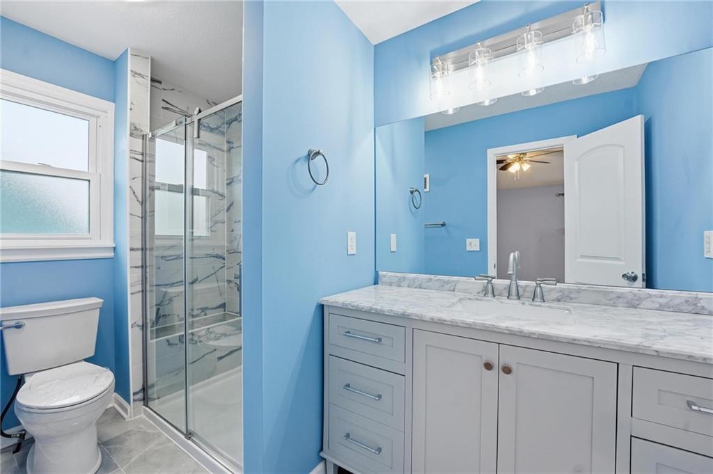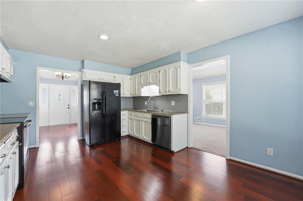NEW ROOF, GUTTERS & WINDOW WRAPS 4/22/2026! Large home in The Coves has been updated and upgraded! 2020-new windows, exterior paint & siding repairs. Most of privacy fence was replaced. 2022 renovated primary suite bathroom. Open front door to find a large, open home. Entry has wood floor, vaulted ceiling. To the left is living room with large picture window, open to formal dining room. Wood floor from entry continues through to kitchen & breakfast room with windows offering great light & view of private backyard. Granite countertops & painted cabinets for updated look. Few steps down to fantastic family room with brick fireplace, large windows and door out to spacious stone patio & level backyard with privacy fence, firepit, mature trees. 1/2 bath and large laundry room on this level as well. Up a short flight of stairs to the bedroom level of the home. Primary suite is at the back corner of the home, for quiet privacy. This spacious bedroom offers vaulted ceiling with ceiling fan, 2 BIG closets and private bath. Bath was updated with brand new vanity w/granite top, new plumbing & light fixtures. Large shower with custom tiled walls, bench along back wall. On this level there are 3 additional bedrooms that offer great closet space. All bedrooms have ceiling fans. Hall bath has large vanity with plenty of storage and counterspace, tile floor & shower over tub. Just a partial flight of stairs down from family room to sub basement. Tremendous amount of storage on this level. Home also offers an oversized garage, room for 2 vehicles & plenty of storage space. Kitchen refrigerator, laundry washer & dryer, nest thermostat all stay! Prior owner had sewer line replaced from home to city sewer line, and new cleanout access was added. Seller replaced one of the window wells for the sub basement, improved grading around foundation.