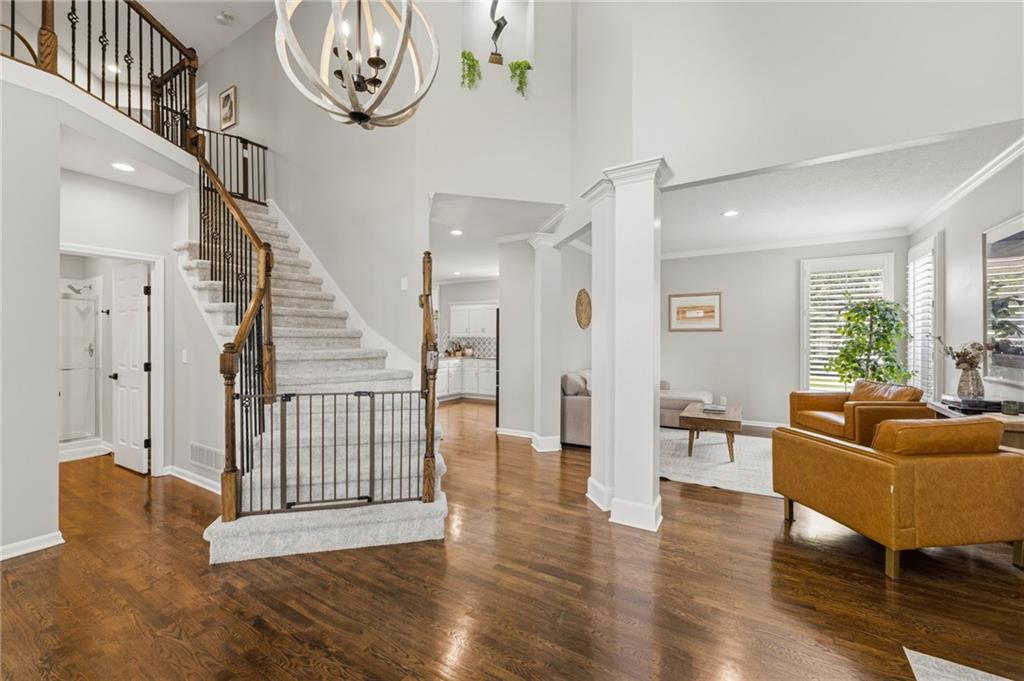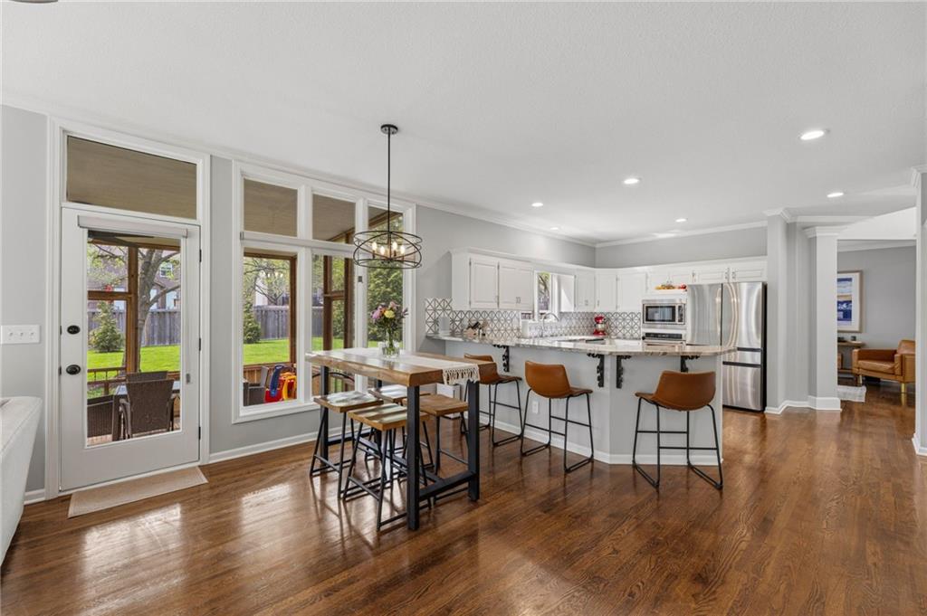 SELLERS HAVE ACCEPTED AN OFFER AND ARE WAITING FOR FINAL SIGNATURES FROM RELO CO. TO CHANGE THE STATUS. This home offers an impressive blend of luxury, functionality, and an unbeatable location. Step inside to a spacious, light-filled interior featuring designer finishes and quality craftsmanship throughout. Hardwood floors anchor the main level, where a thoughtfully designed layout offers multiple living and dining spaces—perfect for both everyday living and effortless entertaining. Enjoy a large, inviting family room ideal for gathering, along with additional living areas that provide flexibility for relaxing, working, or hosting guests. The home also features multiple dining spaces, including a formal dining room for special occasions and more casual areas for everyday meals. Soaring vaulted ceilings and generously sized rooms create a bright, airy atmosphere showcasing the home beautifully. Freshly painted inside and out, the property also boasts numerous upgrades throughout. The stunning gourmet kitchen is a true centerpiece, complete with stainless steel appliances, quartz countertops, and abundant white cabinetry. A well-appointed main-level bedroom provides added flexibility, ideal for guests, multigenerational living, or a private office retreat. Additional highlights include a composite roof replaced less than two years ago, and a lower-level recreation room featuring new LVT flooring, a cozy fireplace and wet bar—ideal for relaxing or hosting guests. A non-conforming sixth bonus room and a convenient half bath complete the lower level. For those who enjoy the outdoors, the newly screened porch offers the perfect retreat. Unwind with a good book while taking in peaceful sunset views over the private fenced backyard. Located in a highly sought-after neighborhood, this home is just minutes from Town Center, offering a variety of dining and shopping options, as well as nearby parks with scenic walking and biking trails.