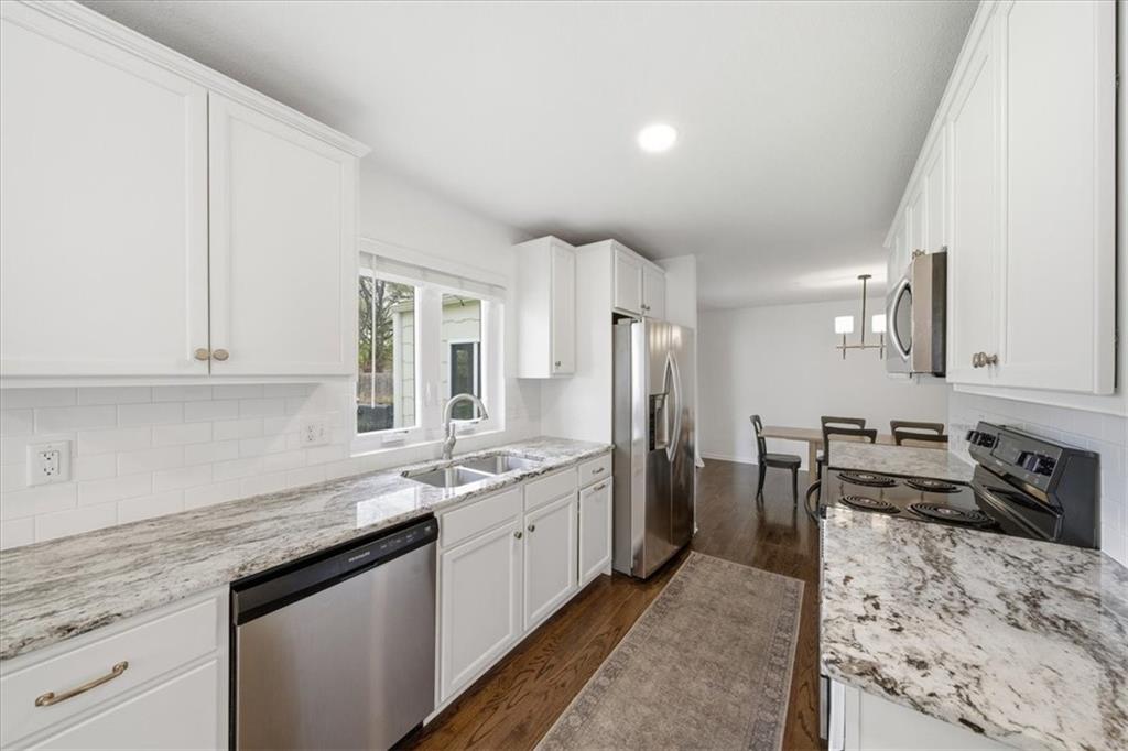 Beautifully updated, spacious and pristine ranch on a large, corner lot in SMSD and the heart of Prairie Village just a mile from the Shops! The open floor plan features clean, white walls and gleaming hardwood floors, creating the perfect canvas to make this already stunning space your own. The spacious living area is illuminated by a big, bright picture window and a cozy fireplace to set the perfect mood no matter the time of year. The elegant, understated dining area is the ideal setting for enjoying an intimate meal or entertaining guests, and while you eat you can enjoy views of the sunroom and fenced backyard and patio, or enjoy your meal al fresco when the weather is too good to resist. The beautifully appointed kitchen features fresh white cabinets, gorgeous granite countertops, subway tile backsplash, and a conveniently placed breakfast or home office nook, laundry closet and half bath. On the other side of this true one-level living home you will find a private primary suite, two nicely sized bedrooms and a second full bath. The full, concrete basement is perfect for storage, future finished space, or enjoying a round of pickleball! You can’t beat this aesthetic, this location, or this school district, so don’t wait to make this one yours!