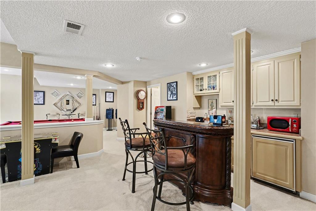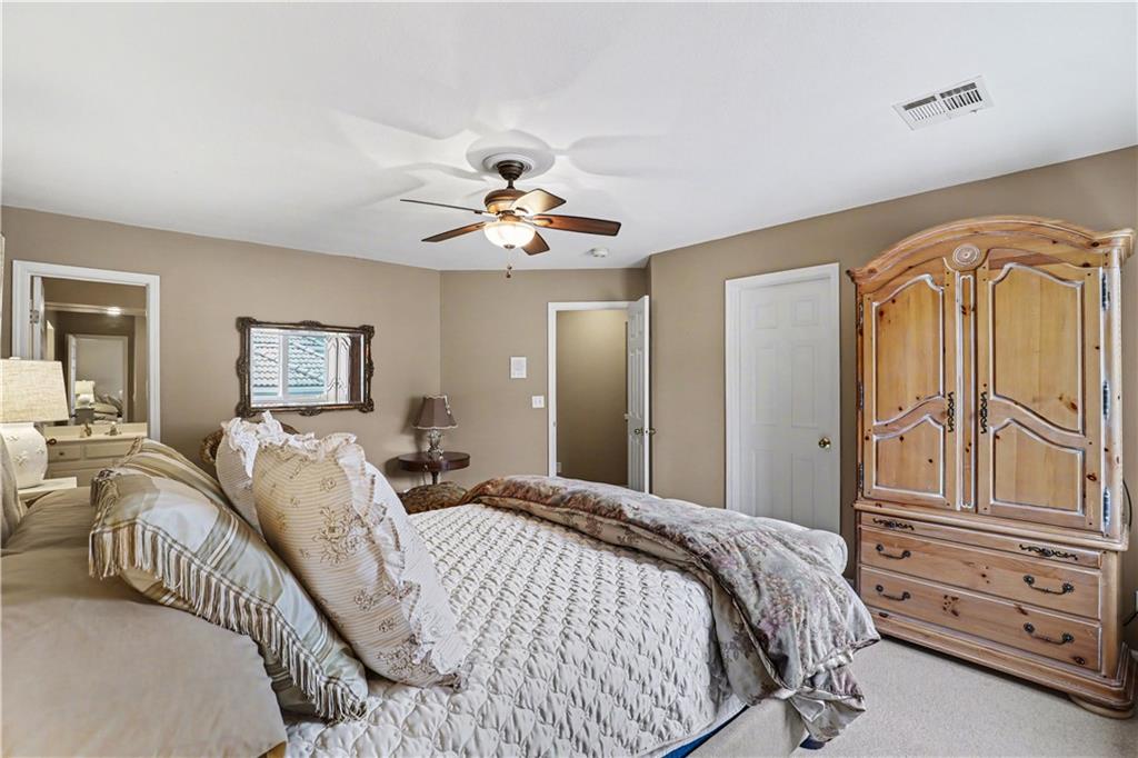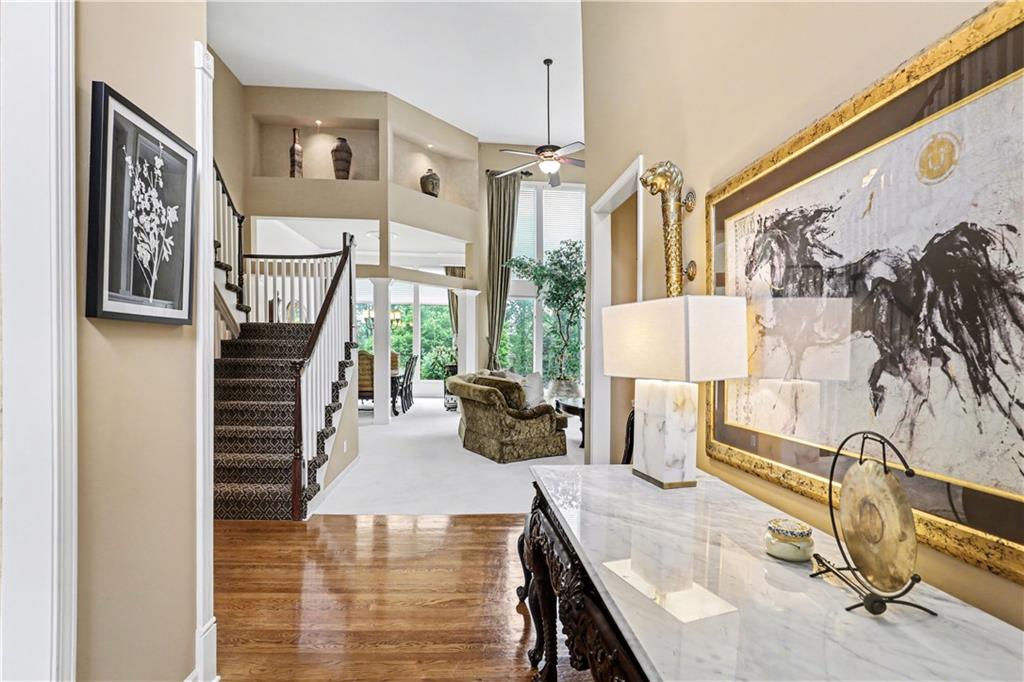 Welcome to this stunning 1.5-story residence nestled in the prestigious Lakewood Shores community, where luxury living meets an unmatched lifestyle. Boasting just under 5,500 square feet, this beautifully maintained home offers 4 bedrooms, 4 full baths, 1 half bath, a 3-car garage, and a fully finished lower level—all set on a beautifully landscaped lot with a spacious patio perfect for outdoor entertaining. From the moment you step inside, you’re greeted by soaring ceilings, dramatic floor-to-ceiling windows, and a grand staircase that sets the tone for the elegance throughout. The expansive living room features a gas fireplace, custom built-ins, and flows seamlessly into the formal dining space. At the front of the home, a private office or sitting room provides a quiet retreat. The updated kitchen is a true showstopper, complete with granite countertops, a center island, gas cooktop, stainless steel appliances, abundant cabinetry, and additional built-ins. The kitchen opens into the hearth room with a second fireplace and casual dining area. Perfect for entertaining! Step outside to the generous patio and enjoy peaceful views of the beautifully maintained backyard. Mudroom and laundry area just off the kitchen. The main-level primary suite is a luxurious retreat, offering a large walk-in closet and a beautifully updated spa-like bath featuring dual vanities, a soaking tub, separate shower, and private water closet. Upstairs, you’ll find three spacious bedrooms—all with walk-in closets—and two full bathrooms. The finished lower level is an entertainer’s dream, featuring a wet bar, full bath, game area, fitness room, office space, family room, and an abundance of storage. Enjoy the incredible amenities that Lakewood community has to offer, including two scenic lakes, swimming beach, pools, tennis and pickleball courts, a golf course, walking trails, and a vibrant calendar of community events. This is more than just a home—it’s a lifestyle.