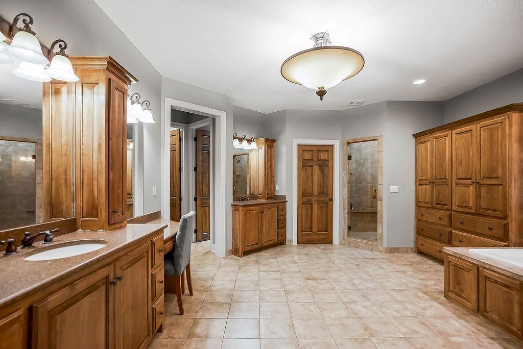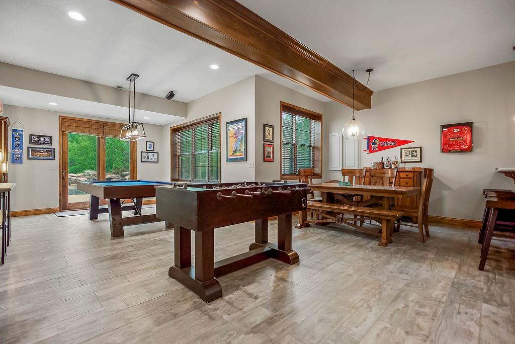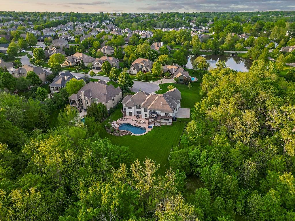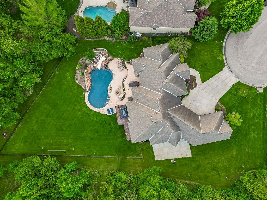 Custom-Built Reverse 1.5 Story by Lambie-Geer Homes, on a private wooded lot at the end of the culdesac. You're going to love that it backs to TREES & GREENSPACE (actually ... there is greenspace along the backyard AND all along the sideyard too). Spacious in ALL the right places - OVERSIZED Lot, EXPANDED main floor layout with generous room sizes, HUGE 4-Car Garage (plus a bonus 5th garage and workshop underneath), OPEN finished lower level ideal for entertaining family and friends, plus a Large Fenced Backyard with SWIMMING POOL. If you've been hoping for the "right reverse 1.5 story", this can be THE ONE. The primary bedroom suite is on one side of the main floor (oversized bedroom & bath, 2 big walk-in closets, plus private French Doors to the deck outside). On the opposite side of the main floor (formal dining, formal living, enormous island kitchen/hearth/informal dining), there are THREE additional rooms (library/music room at the front, Guest BR and Full Bath in the middle, and another guest room at the back corner of home currently serving as a home office with French Doors). This one is a Must See - PROFESSIONAL PHOTOS COMING SOON !