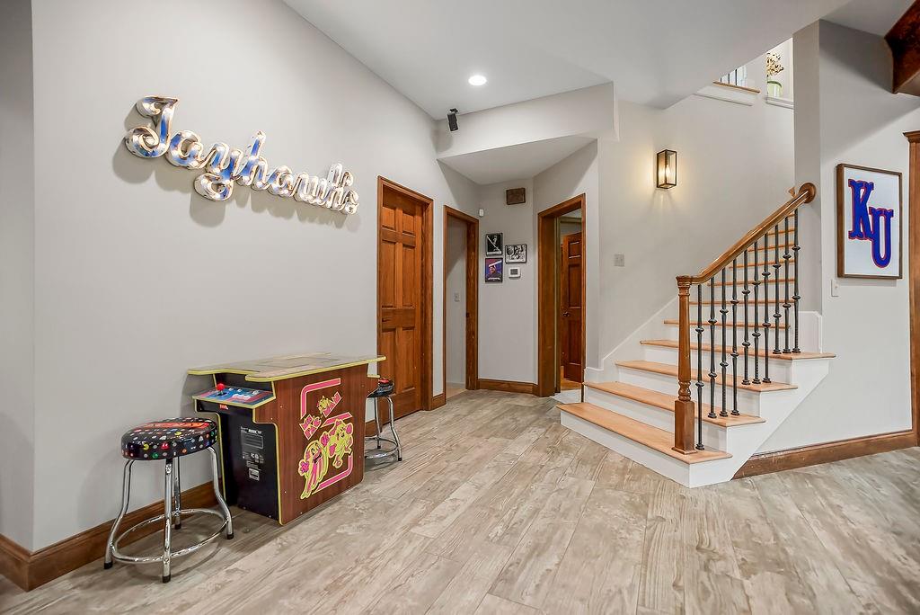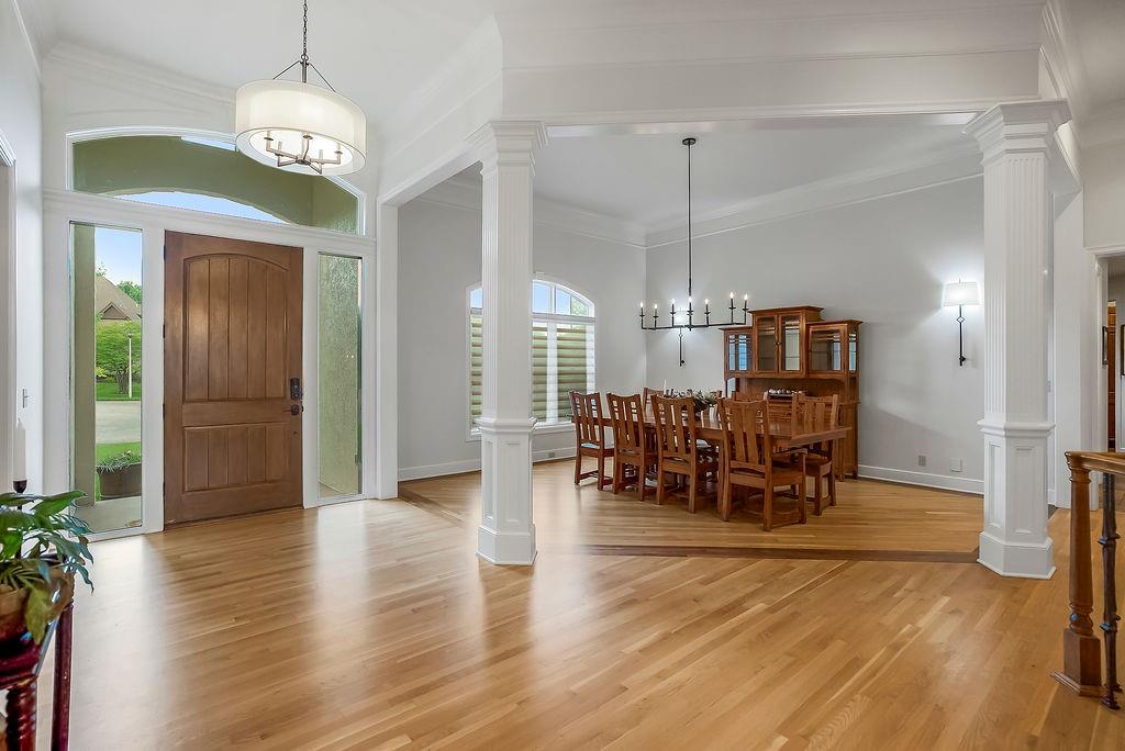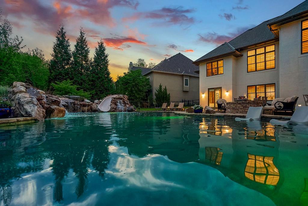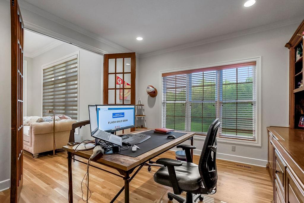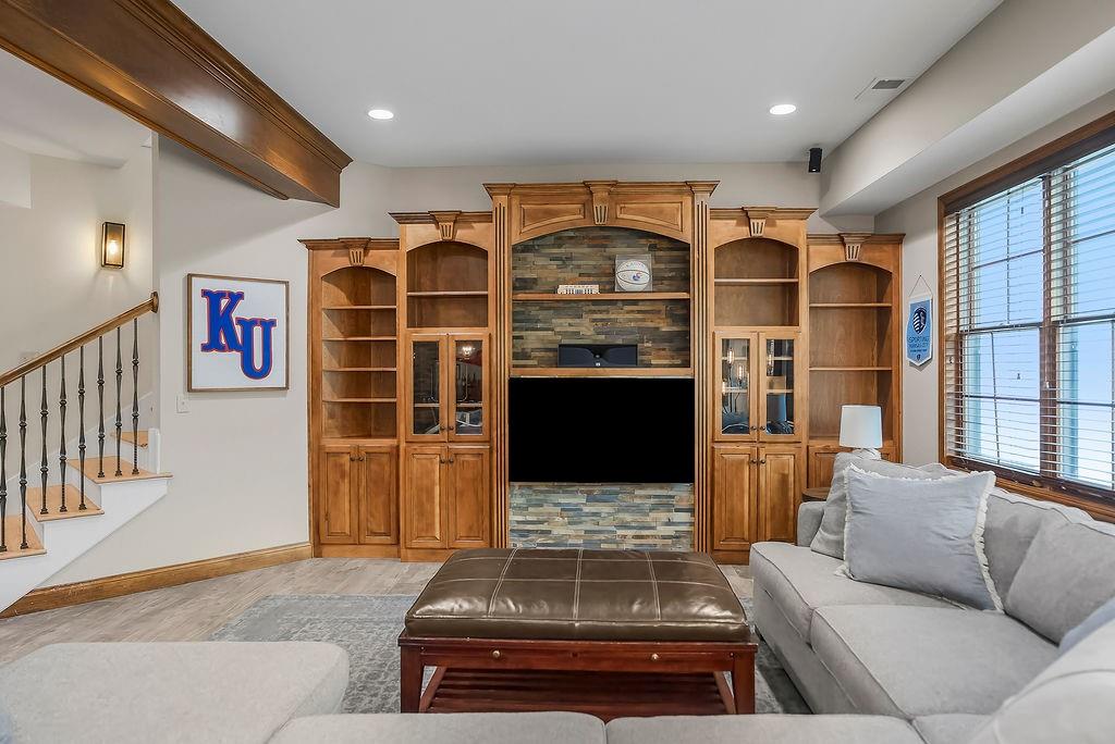 Custom-Built Reverse 1.5 Story by Lambie-Geer Homes, on a private wooded lot at the end of the culdesac. You're going to love that it backs to TREES & GREENSPACE (actually ... there is greenspace along the backyard AND all along the sideyard too). Spacious in ALL the right places - OVERSIZED Lot, EXPANDED main floor layout with generous room sizes, HUGE 4-Car Garage (plus a bonus 5th garage and workshop underneath), OPEN finished lower level ideal for entertaining family and friends, plus a Large Fenced Backyard with SWIMMING POOL. If you've been hoping for the "right reverse 1.5 story", this can be THE ONE. The primary bedroom suite is on one side of the main floor (oversized bedroom & bath, 2 big walk-in closets, plus private French Doors to the deck outside). On the opposite side of the main floor (formal dining, formal living, enormous island kitchen/hearth/informal dining), there are THREE additional rooms (library/music room at the front, Guest BR and Full Bath in the middle, and another guest room at the back corner of home currently serving as a home office with French Doors). This one is a Must See - PROFESSIONAL PHOTOS COMING SOON !
