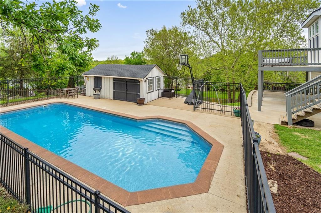 Beautiful two-story home in desirable Shawnee featuring your own private backyard oasis sitting on almost a half acre lot. This well-maintained property offers a spacious and functional layout with generous living areas, perfect for both everyday living and entertaining. The main level includes a bright and inviting living room, a well-appointed kitchen with ample cabinet space, and a dining area overlooking the backyard. New windows thruought! Upstairs, you’ll find 4 comfortable bedrooms including a primary suite with a private bath and plenty of closet space. The finished lower level provides additional living or recreational space, ideal for a home office, gym, or media room. Step outside to enjoy the highlight of the home—a sparkling in-ground pool surrounded by a patio, perfect for summer gatherings and relaxing evenings. The large fenced backyard offers privacy and room to play or garden. Conveniently located near parks, shopping, dining, and top-rated schools, this home combines comfort, style, and outdoor enjoyment in a fantastic Shawnee location. Pool is not open yet for current season.