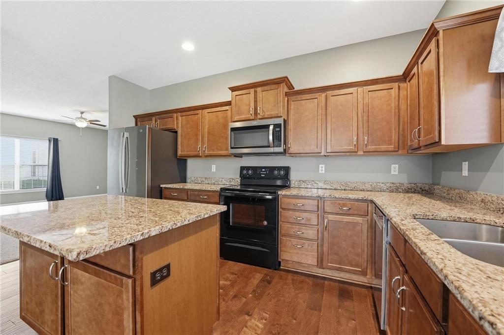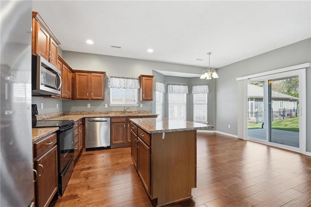 Enjoy easy living in this well-maintained 3 bedroom, 2 bathroom home offering true one-level living in a convenient location. The spacious layout features a large living area with vaulted ceilings and abundant natural light, creating an open and inviting atmosphere. The kitchen is equipped with warm wood cabinetry, ample counter space, a center island, and flows seamlessly into the dining area with access to the patio, perfect for everyday living and entertaining. Recent updates include new carpet and interior paint in 2022, along with a brand new roof in 2025, providing peace of mind for years to come. The primary suite offers a comfortable retreat with a tray ceiling and generous space, while additional bedrooms are well-sized. A dedicated laundry room and attached two-car garage add to the home’s functionality. With yard/snow removal provided, this home offers a low-maintenance lifestyle in a desirable setting.