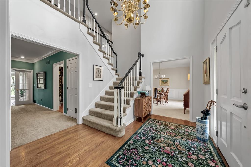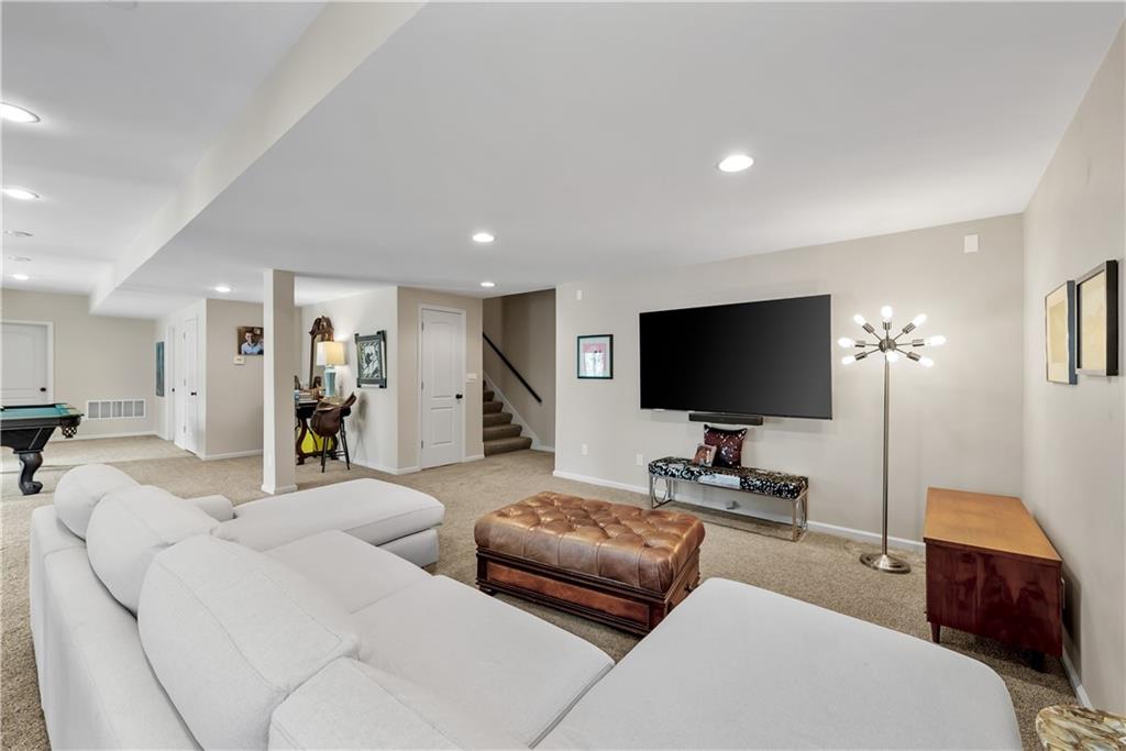 Nestled in the serene and sought-after Tremont Manor community, this stunning custom two-story home is a true gem. With over 4,800 square feet of living space, it offers 4 spacious bedrooms, 3 full bathrooms, and 2 half bathrooms—balancing comfort and luxury. Set on a picturesque half-acre lot, the fenced yard is a private retreat backing to lush woods. Enjoy your morning coffee or summer gatherings on the raised deck while soaking in the tranquil views. Spend your afternoons unwinding in the sunroom. The cul-de-sac location ensures peace and privacy, while the professionally landscaped yard enhances curb appeal. Inside, the layout is functional and inviting. The walk-out basement offers endless possibilities for recreation, gaming, or storage, while the large office is perfect for working from home. A massive laundry room simplifies daily living, and the 3-car garage provides plenty of room for vehicles and gear. Conveniently located, you’ll have easy access to Kansas City International Airport and the city’s vibrant restaurants, entertainment, and sports venues. This is more than a home—it’s a lifestyle. Welcome to Tremont Manor.