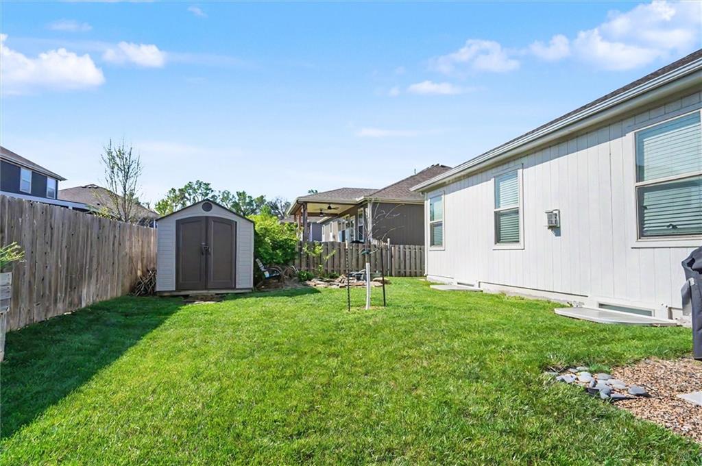 Welcome home to this beautifully maintained 4 bedroom, 3 bathroom ranch home offering the perfect blend of comfort, style, and convenience. An open concept space filled with natural light, showcasing stunning finishes and a seamless flow. The spacious kitchen opens to the main living area, creating a warm and inviting atmosphere. The primary suite offers a private retreat, while the additional bedroom on the main level provides flexibility. Downstairs, the finished basement expands your living space with a large open area, 2 additional bedrooms, 1 bath and unfinished storage space that lines the basement. Outside, enjoy your own backyard oasis complete with a charming koi pond, storage shed, and plenty of room to relax or entertain. The 3-car garage offers ample space for vehicles, tools, and storage. Conveniently located near K-10 and local amenities, this home combines peaceful living with easy access to shopping, dining, and commuting. A must-see!