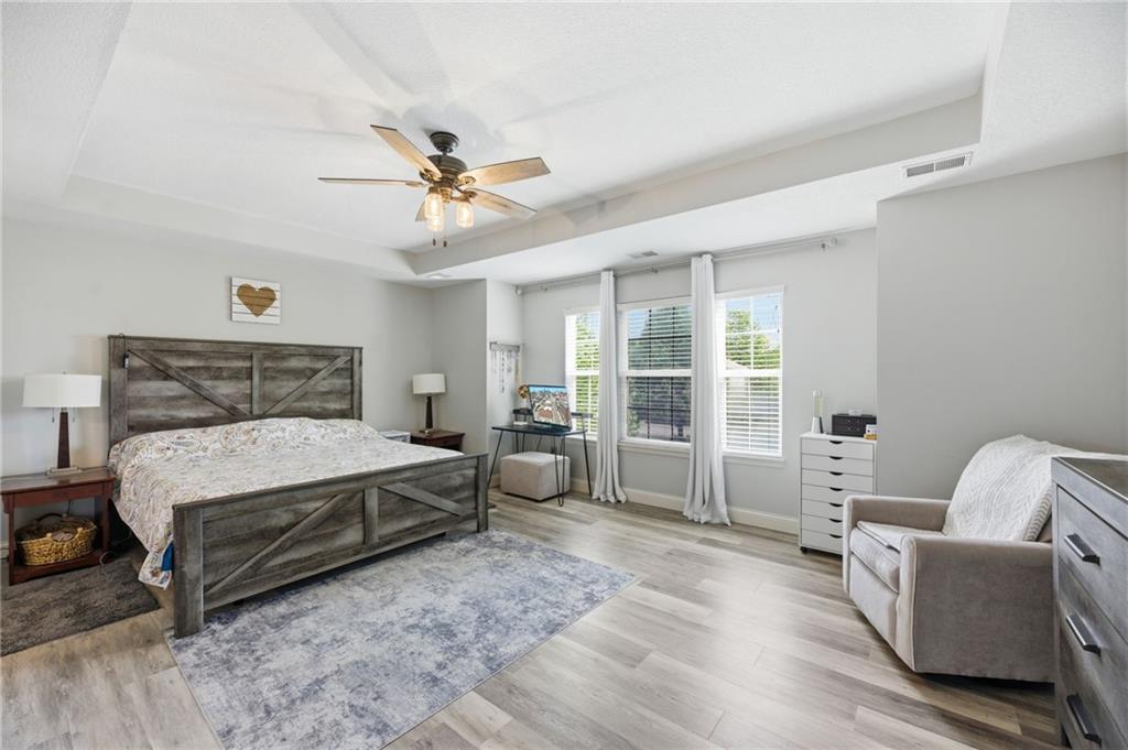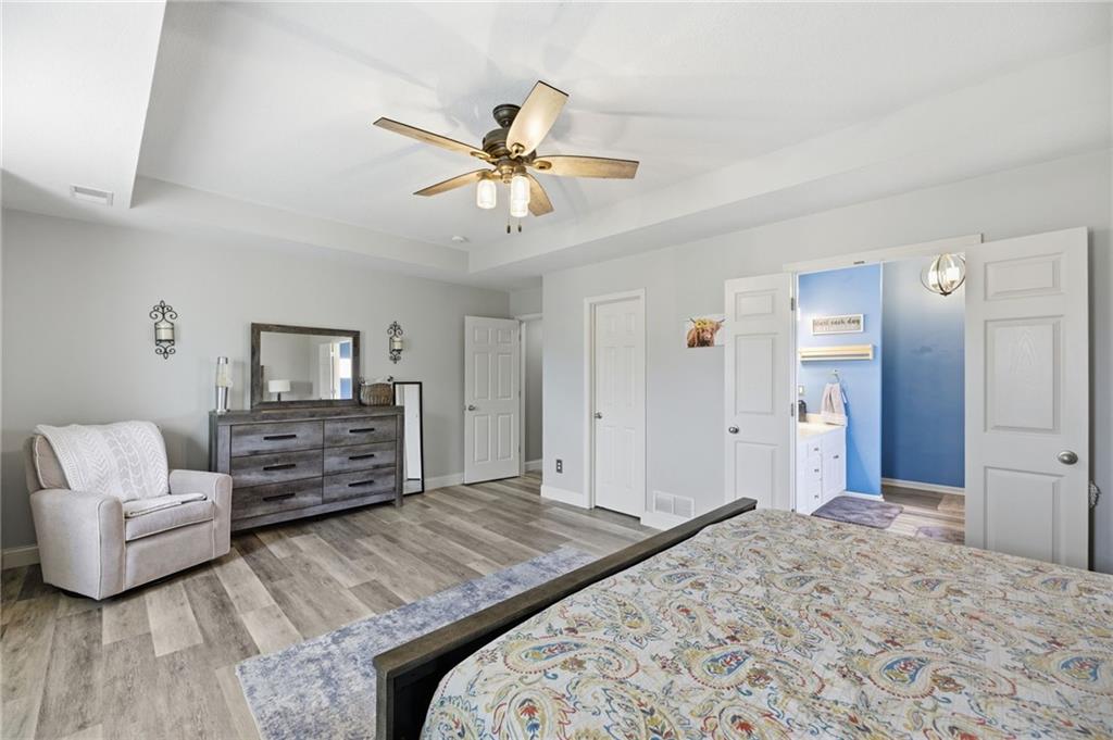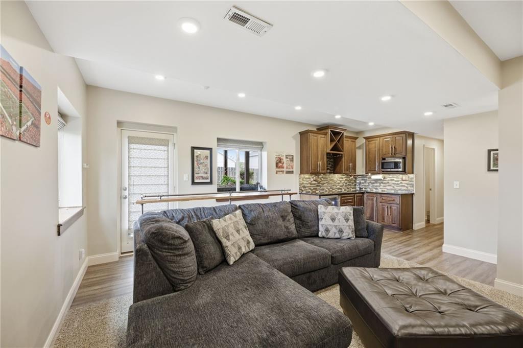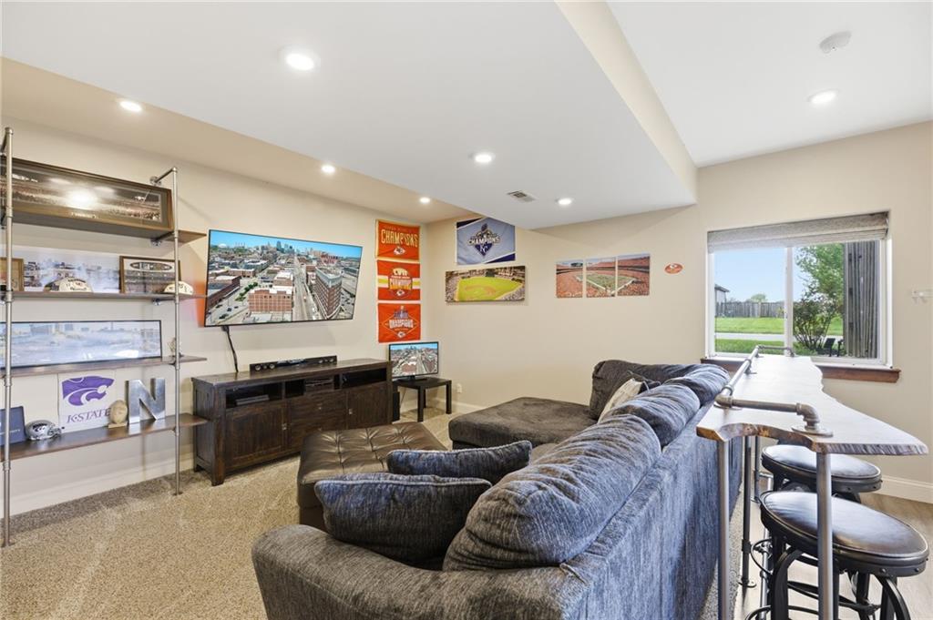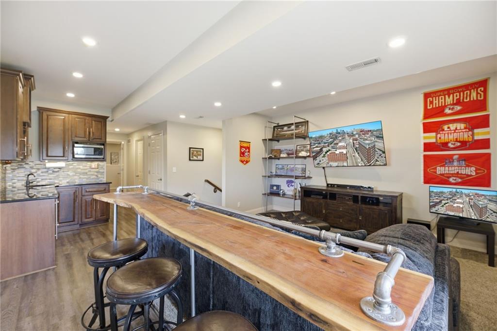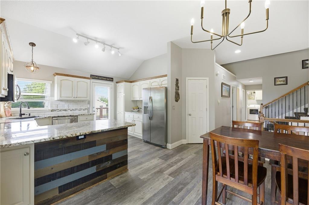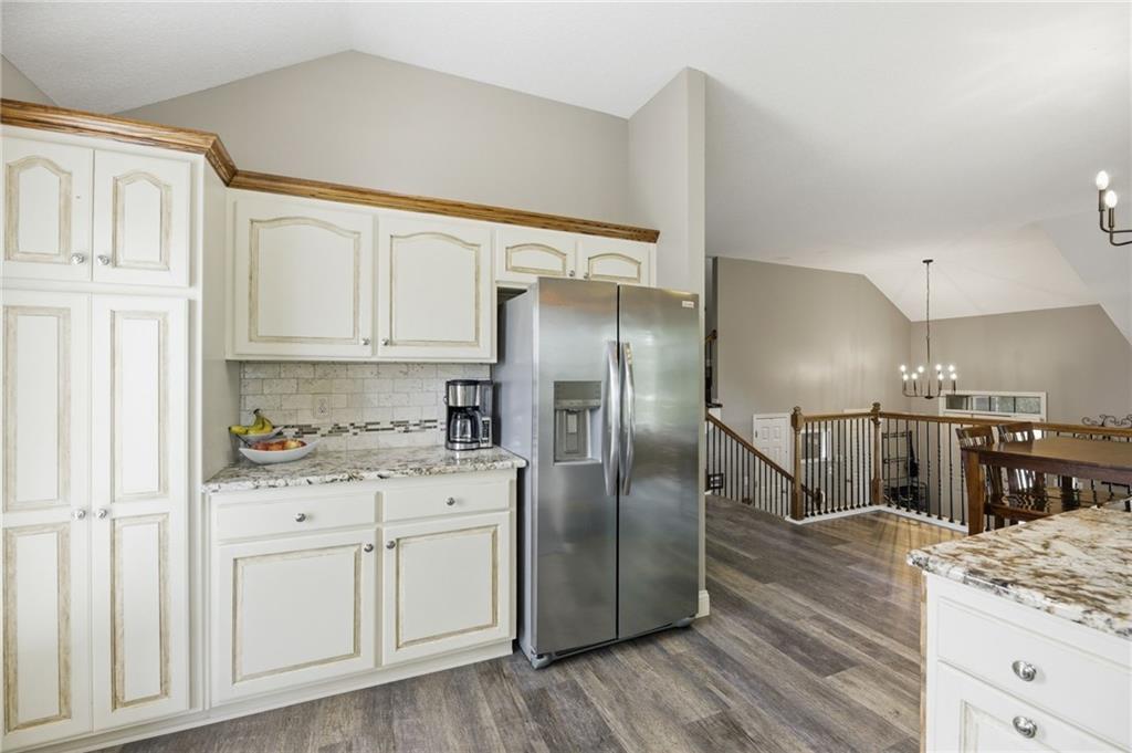 Welcome to this beautifully maintained California split offering 4 bedrooms and 2.5 baths, thoughtfully updated with stylish finishes throughout. From the moment you enter, you’ll notice the upgraded light fixtures, designer tile fireplace, elegant iron spindles, and custom stair carpeting that elevate the home’s overall look and feel. The kitchen is both functional and inviting, featuring granite countertops, custom cabinetry, stainless steel appliances, a dedicated coffee bar, and not one—but two—pantries. Convenient main-level laundry adds to the home’s practical layout. The spacious primary suite provides a relaxing retreat with dual sinks, a soaking tub, and a separate shower. The walk-out lower level is perfect for entertaining, complete with a full wet bar featuring granite countertops, a microwave, and a bar fridge. A unique live-edge bar seating area behind the sofa will remain with the home, along with matching barstools and coordinating shelving. The lower level also includes a 4th bedroom—ideal for guests—and access to a sub-basement for additional storage. Step outside to enjoy a perfectly manicured lawn with upgraded landscaping, a Trex deck, and a fully fenced backyard with a sprinkler system. The 3-car garage includes a large workbench and a convenient pedestrian door to the backyard. This home truly combines comfort, style, and functionality—ready for you to move in and enjoy.