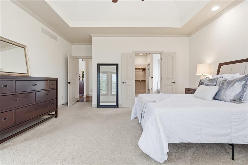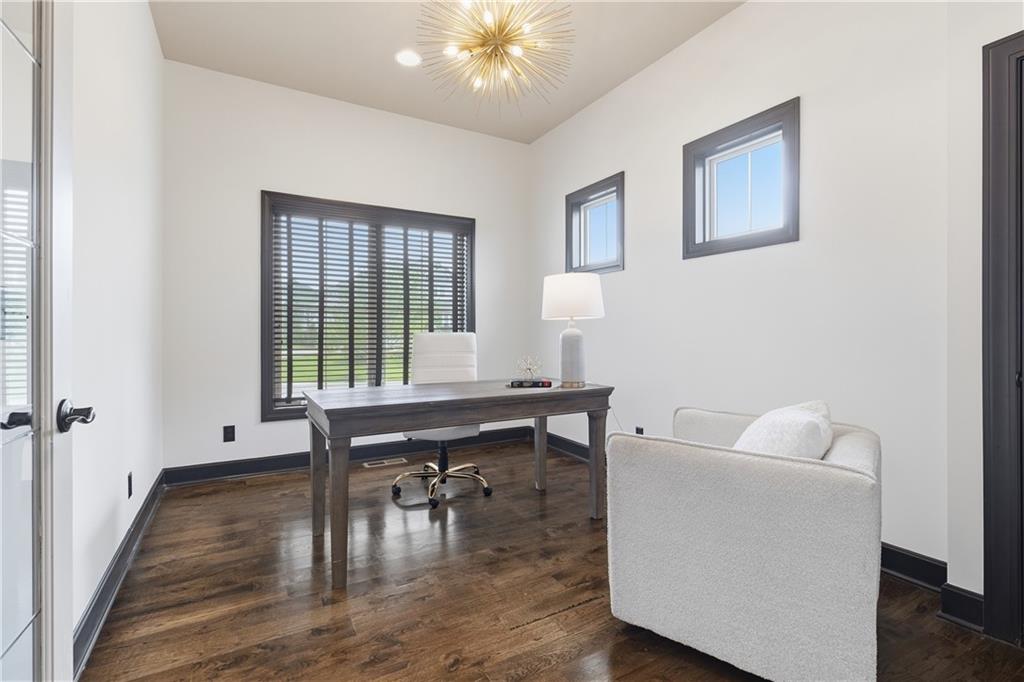 Welcome to this stunning custom-built home in the highly sought-after Mills Farm community, offering nearly 5,000 square feet of thoughtfully designed, freshly painted living space. This impressive 1.5-story home features 5 spacious bedrooms and 6 full bathrooms, blending timeless elegance with modern comfort. Inside, you’ll find an open and inviting floor plan with a seamless flow between the formal dining area, gourmet kitchen with double ovens, and expansive living room—perfect for both everyday living and entertaining. The kitchen is the heart of the home and a true centerpiece, complete with large island, abundant cabinetry, and a functional layout designed for gatherings. The main-level primary suite offers a private retreat with a spa-like bath and generous walk-in closet. Additional main floor highlights include a dedicated office, enclosed porch with trex decking, optional screens, outdoor fireplace, and convenient access to outdoor living. Upstairs, spacious secondary bedrooms provide comfort and privacy, complete with rec room while the finished walkout basement is an entertainer’s dream—featuring a an exercise space, and additional living area with large wet bar ideal for hosting or relaxing. Located in the award-winning Blue Valley School District, this community is luxury living at its finest feturing a club House with Exercise Room, Party Room, Play Area, Swimming Pool & tennis Courts. Don’t miss the opportunity to make it yours!