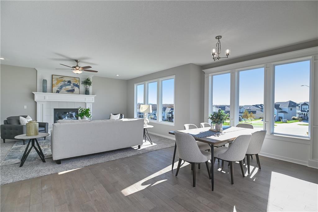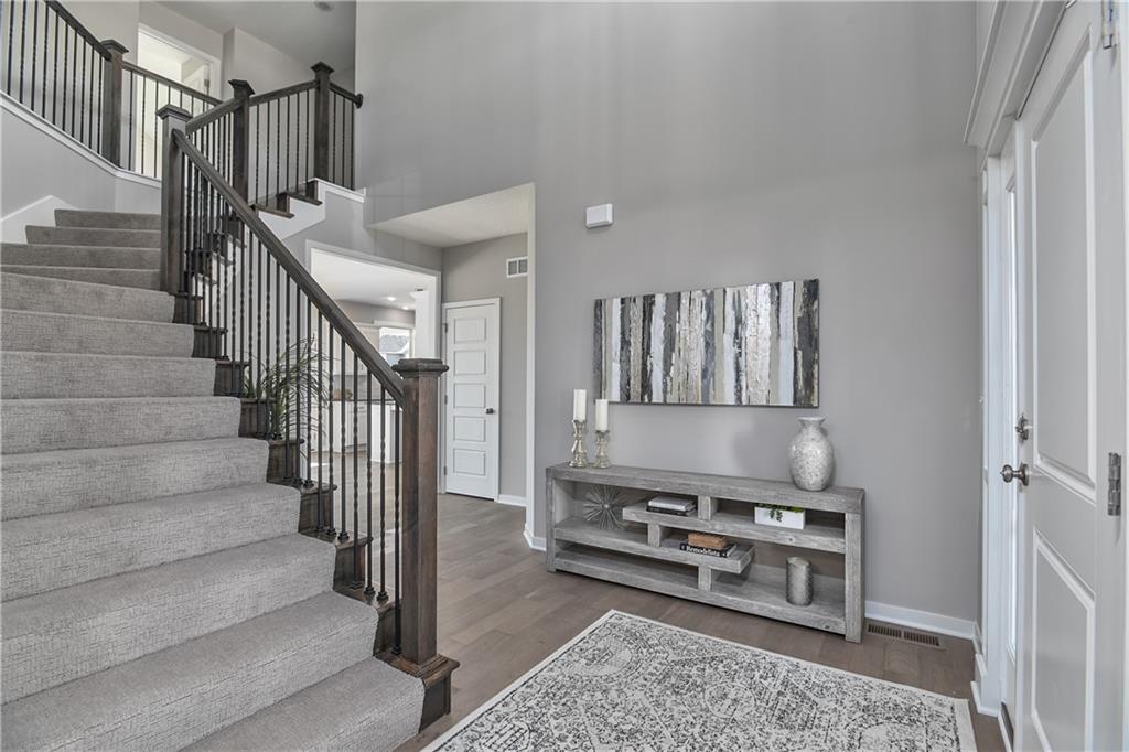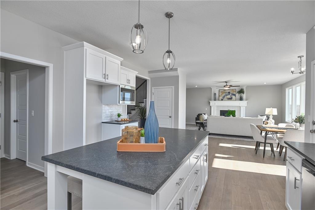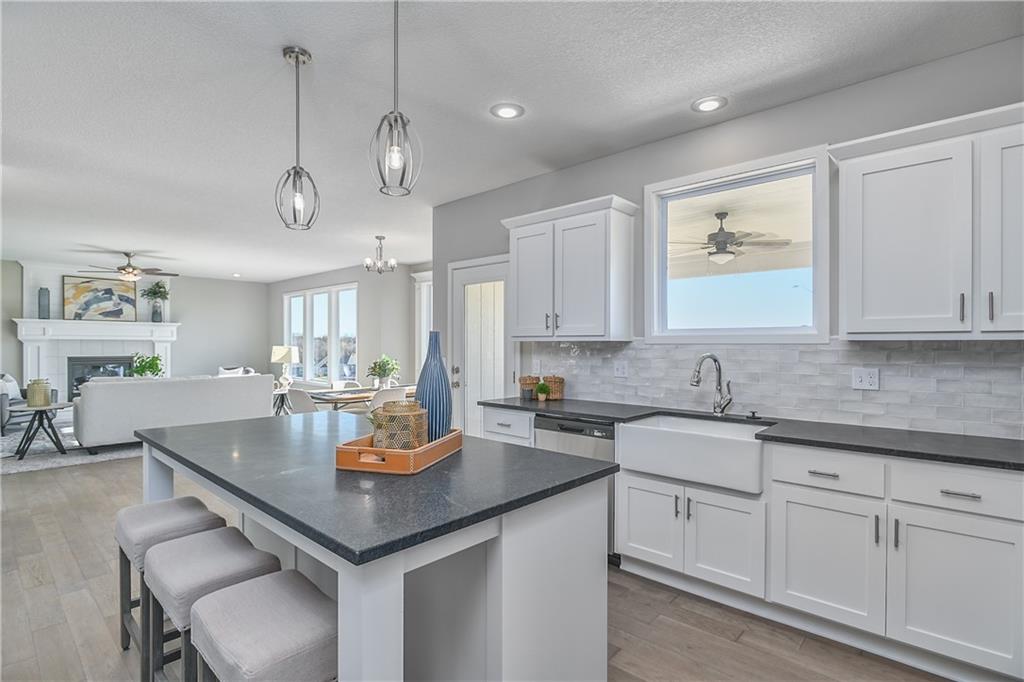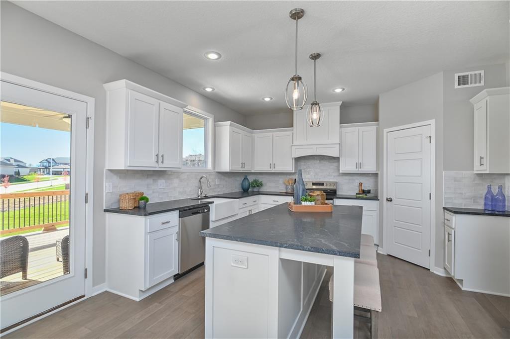 Popular Harlow 5 | 5 Bedrooms | 4 Baths | 3-Car Garage | Prairie Farms This stunning 2-story Harlow 5 home offers 5 bedrooms, 4 baths, and a spacious 3-car garage in the highly sought-after Prairie Farms community. From the moment you enter, you’ll be impressed by the beautiful turned staircase and gleaming hardwood floors. The formal dining room features built-in cabinetry on both sides and flows seamlessly into a bright, open great room with a cozy fireplace and abundant natural light. The adjacent dining area and chef’s kitchen are an entertainer’s dream—highlighted by hardwood floors, granite countertops, a large center island, apron-front sink, painted custom cabinets with soft-close doors and drawers, upgraded hardware, stainless steel appliances, built-in microwave, and a generous walk-in pantry. A main-level bedroom with a closet offers flexibility as a guest suite, office, playroom, craft space, or more. Upstairs, the luxurious owner’s suite boasts a spa-like bathroom with double granite vanities, tile floors, a free-standing soaking tub, and a walk-in tiled shower. A spacious walk-in closet connects directly to the conveniently located laundry room. Two secondary bedrooms share a Jack & Jill bath, each with its own private vanity. A fourth upstairs bedroom features its own private bath and walk-in closet. Additional highlights include a huge unfinished basement with abundant storage potential, an in-ground sprinkler system, and more. Community amenities include a large swimming pool, cabana, playground, and walking trails. Plus, Prairie Farms is adjacent to the newly renovated Lake Olathe, offering paddleboarding, fishing, hiking, and more—making this a perfect place to call home!