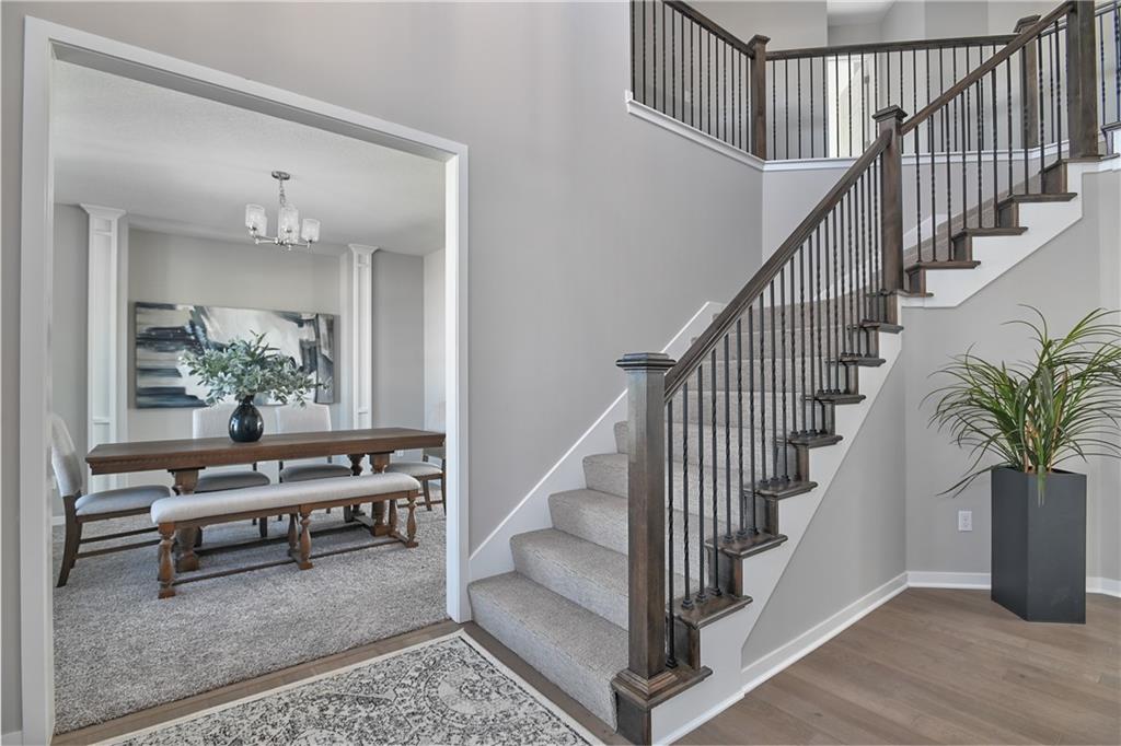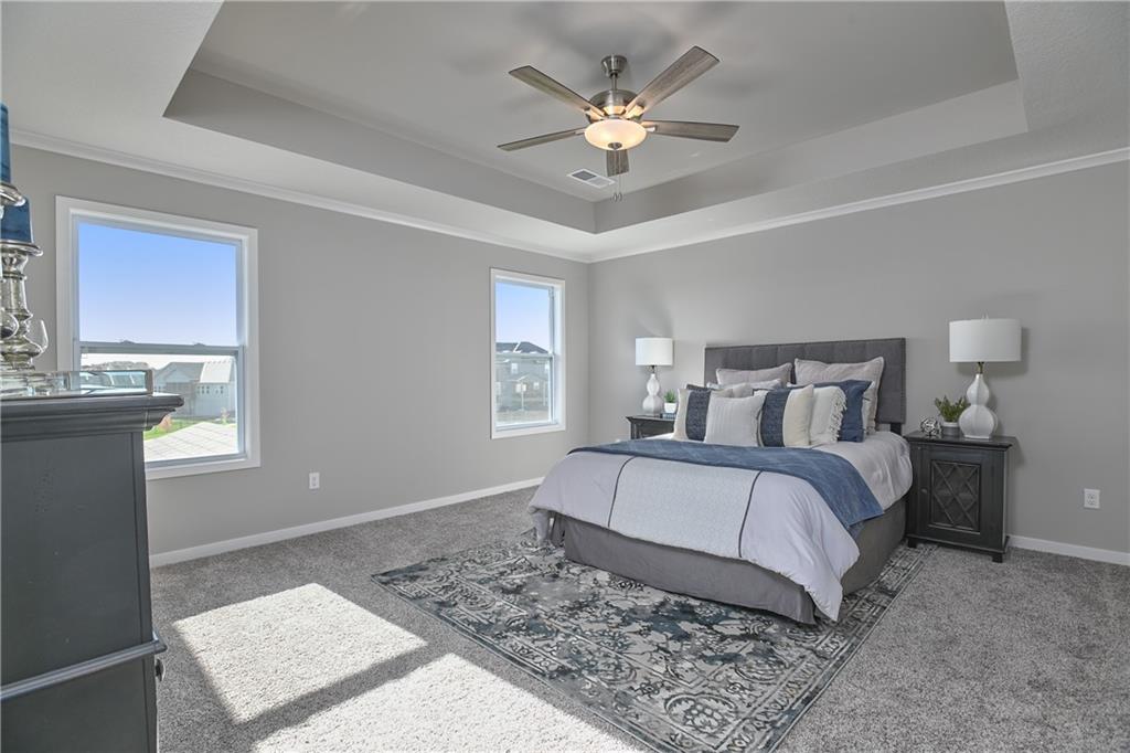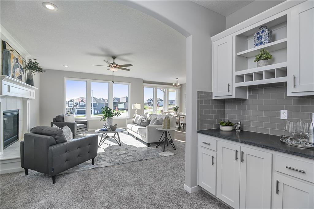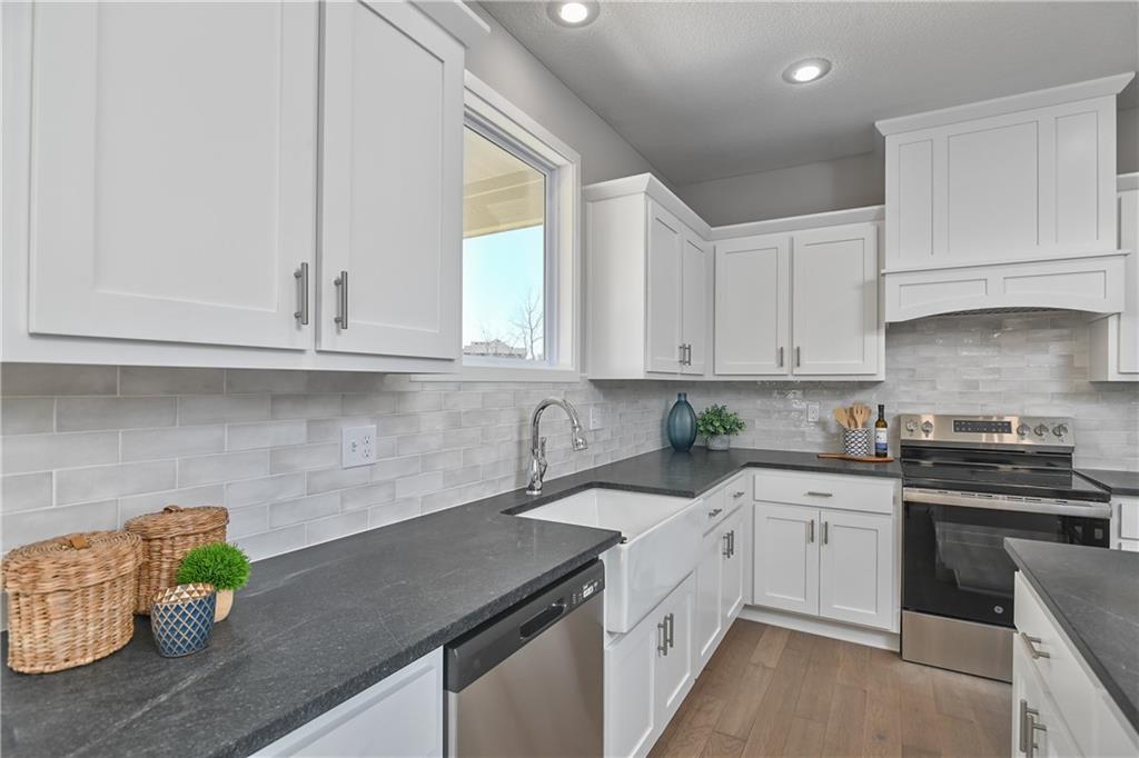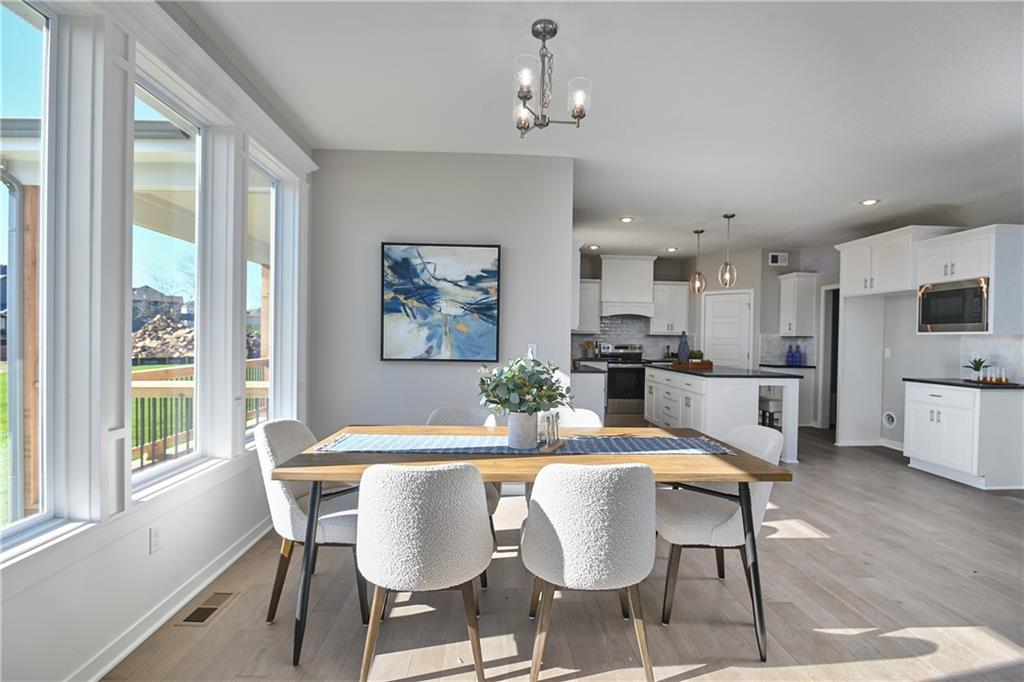 Popular Harlow 5 | 5 Bedrooms | 4 Baths | 3-Car Garage | Prairie Farms This stunning 2-story Harlow 5 home offers 5 bedrooms, 4 baths, and a spacious 3-car garage in the highly sought-after Prairie Farms community. From the moment you enter, you’ll be impressed by the beautiful turned staircase and gleaming hardwood floors. The formal dining room features built-in cabinetry on both sides and flows seamlessly into a bright, open great room with a cozy fireplace and abundant natural light. The adjacent dining area and chef’s kitchen are an entertainer’s dream—highlighted by hardwood floors, granite countertops, a large center island, apron-front sink, painted custom cabinets with soft-close doors and drawers, upgraded hardware, stainless steel appliances, built-in microwave, and a generous walk-in pantry. A main-level bedroom with a closet offers flexibility as a guest suite, office, playroom, craft space, or more. Upstairs, the luxurious owner’s suite boasts a spa-like bathroom with double granite vanities, tile floors, a free-standing soaking tub, and a walk-in tiled shower. A spacious walk-in closet connects directly to the conveniently located laundry room. Two secondary bedrooms share a Jack & Jill bath, each with its own private vanity. A fourth upstairs bedroom features its own private bath and walk-in closet. Additional highlights include a huge unfinished basement with abundant storage potential, an in-ground sprinkler system, and more. Community amenities include a large swimming pool, cabana, playground, and walking trails. Plus, Prairie Farms is adjacent to the newly renovated Lake Olathe, offering paddleboarding, fishing, hiking, and more—making this a perfect place to call home!