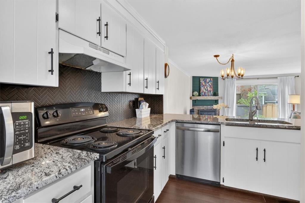 Updated Townhome in the wonderful Four Colonies Community with a rare GARAGE! Great amenities are included--and with a low HOA. Updates in the last 5 years include: Granite Countertops and New Microwave, Dishwasher and Oven in the Kitchen, Granite Vanity tops in the bathrooms, updated Cabinet Hardware, and Light Fixtures, New privacy fence in back yard, New Garage Door, New Garage Door opener, Reclaimed Wood fireplace mantel, decorative shiplap wood above fireplace, Entry hall Vestibule with wood seat, and a decorative shiplap wood back. Basement has a large finished Rec room and a large storage/laundry unfinished area. Cute patio area with flower beds. Move right in and enjoy the Tennis Courts and Swimming Pools for Summer!