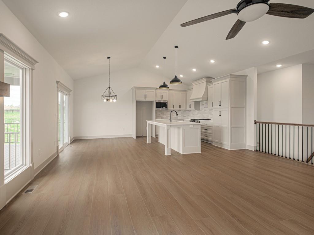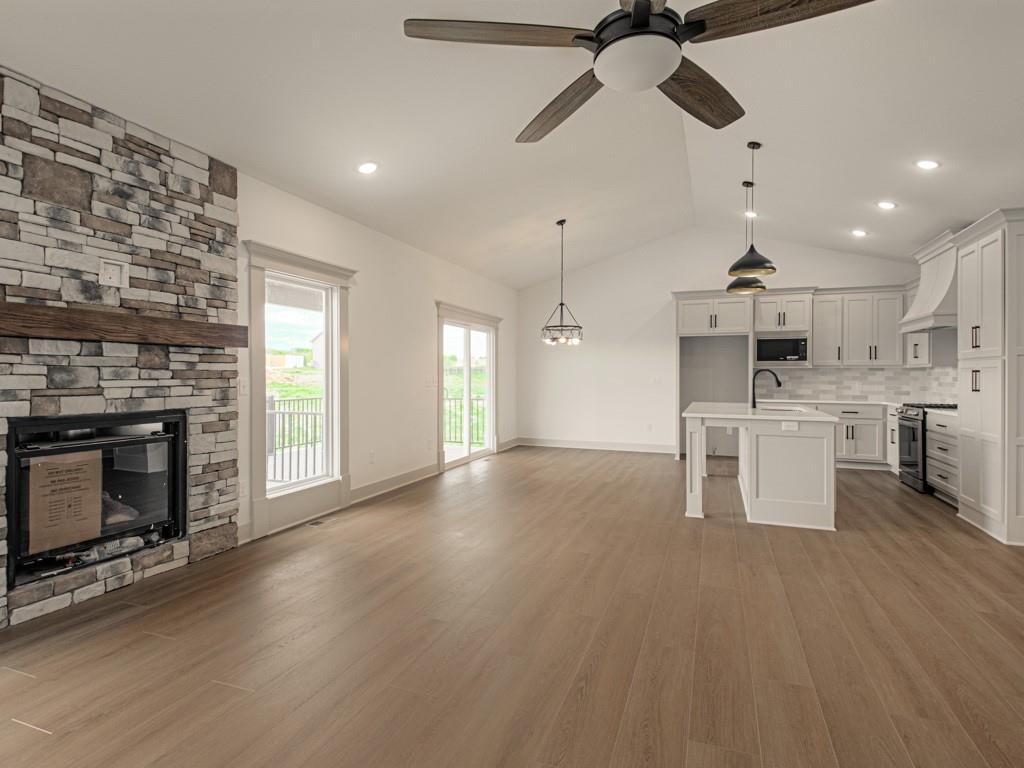 Brand-New True Ranch in Unincorporated Platte County! Looking for space, style, and one-level living? This stunning 4-bedroom, 3.5-bath open-concept true ranch in Running Horse Subdivision delivers exceptional craftsmanship and modern comfort throughout. As you step inside, you will find the extra-wide entry that flows into a bright, expansive living area featuring beautiful hardwood floors and a striking stone fireplace. The chef’s kitchen is the heart of the home, showcasing a large island, abundant cabinetry, and a walk-in pantry, perfect for everyday living and entertaining. The dining area opens to a covered deck, ideal for morning coffee, weekend BBQs, or relaxing evening sunsets. The main level offers true convenience with laundry, three of the bedrooms, including the private primary suite complete with a spa-like bath and spacious walk-in closet. The finished lower level expands your living space with a large family room, an additional bedroom, a full bath, and ample storage. Walk out to a partially covered patio and enjoy the beauty of your spacious lot, perfect for play time, gatherings or quiet evenings. This property offers the perfect blend of location, space, and style; and is ready to welcome you home!