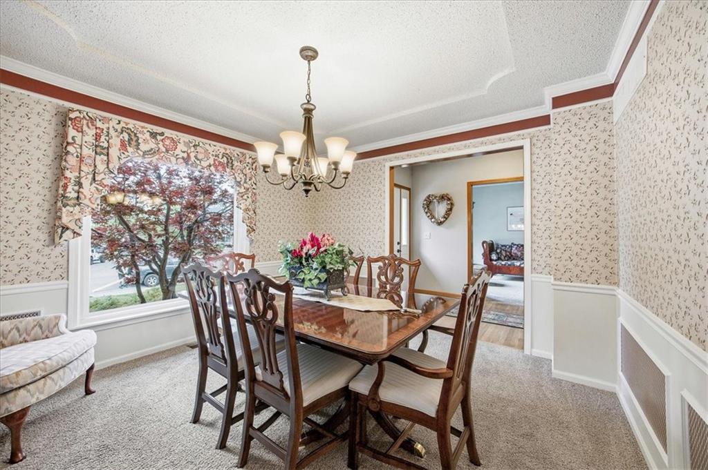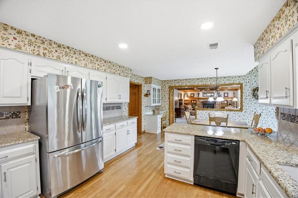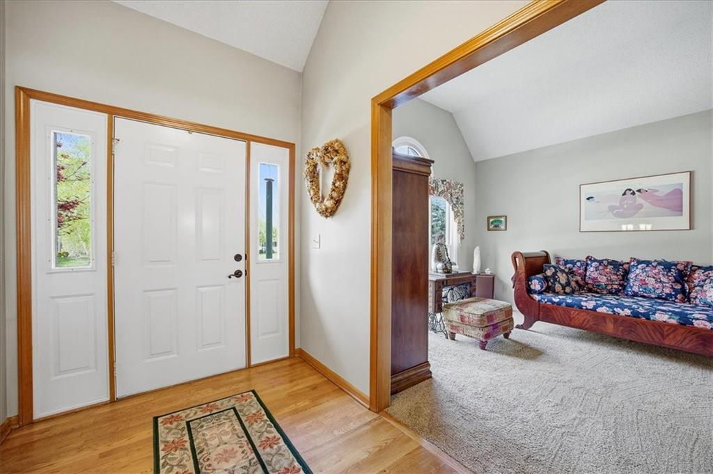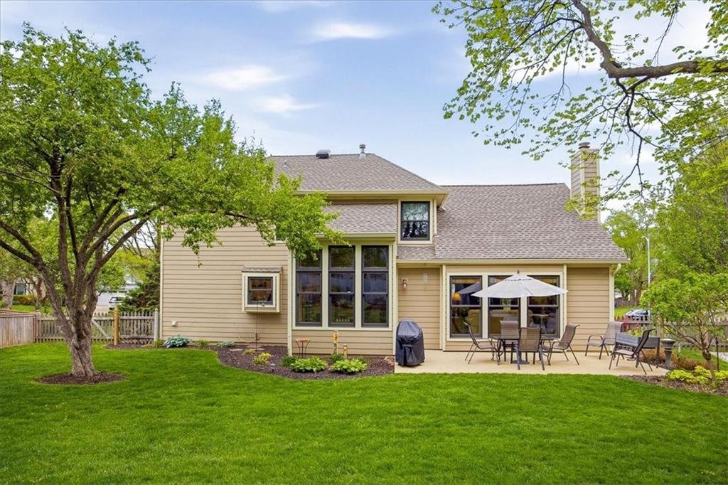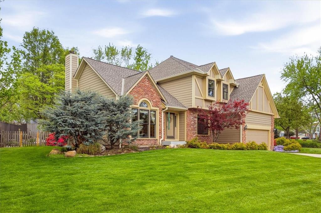 Welcome to your peaceful retreat at 11332 S Rene St in Olathe’s desirable Homestead Creek! This meticulously maintained 4-bedroom, 2.5-bathroom home blends traditional elegance with incredible peace of mind, featuring a new 50-yr Timberline composite roof (2023), upgraded 6" gutters (2023), and James Hardie Plank siding (2016). Step into a sun-drenched foyer with soaring vaulted ceilings, warm oak hardwoods, and upgraded decorative lighting that continues into the dining and breakfast rooms. The sophisticated layout features a formal dining room with a large picture window, custom wainscoting, and a tray ceiling. A versatile front den behind classic French doors offers a quiet retreat, while the great room impresses with a brick fireplace, coffered wood ceiling, and new LED pot lights. All windows have been upgraded to Marvin-made-to-order windows for maximum efficiency. The chef’s kitchen is a standout, offering vast cabinet and counter space. It features granite countertops, a decorative tile backsplash, a built-in desk, and a charming plant ledge over the sink. Just off the kitchen is a main-floor laundry and half bath. Retreat upstairs to the primary suite featuring tray ceilings, a spa-like ensuite with a tub, and his-and-her closets, three additional bedrooms—two with true walk-in closets, all offering plenty of storage space. Outside, the 0.26-acre lot boasts professional-grade landscaping (2017) with advanced drainage and pop-up downspouts. Enjoy the private, fenced-in backyard from the large concrete patio surrounded by low-maintenance plantings. A massive 1,355 sq. ft. full basement offers endless potential for a home gym, theater, or play area. This home is perfectly positioned in the heart of Olathe with easy access to interstates and offering a blend of suburban peace and urban convenience.