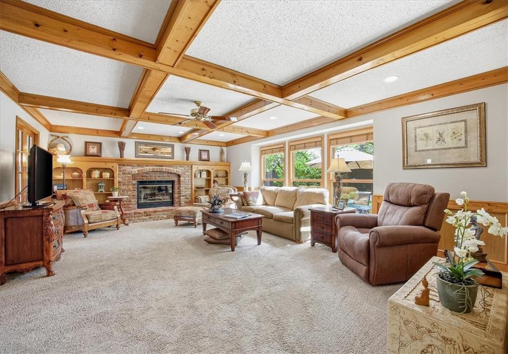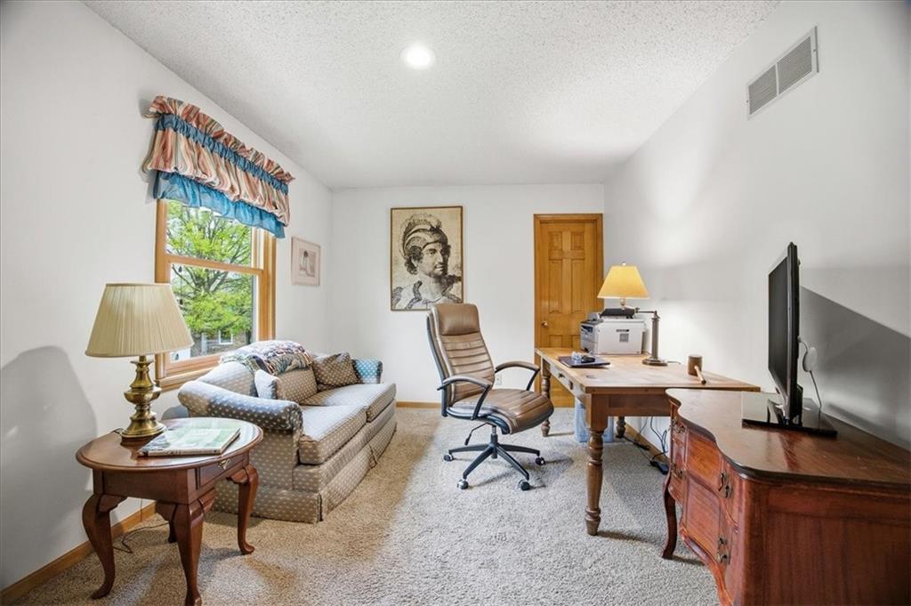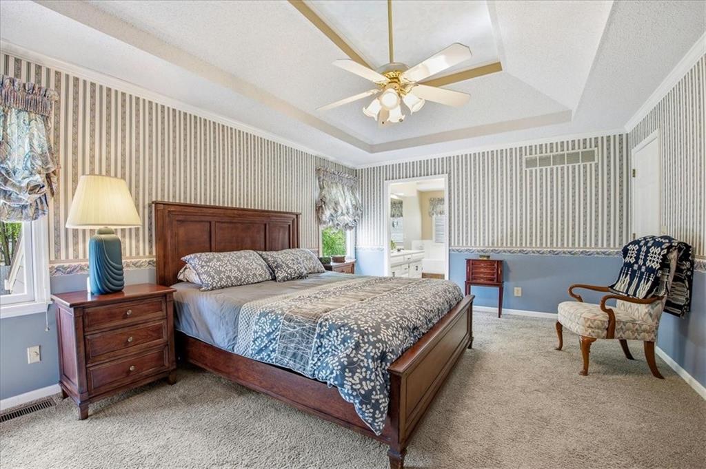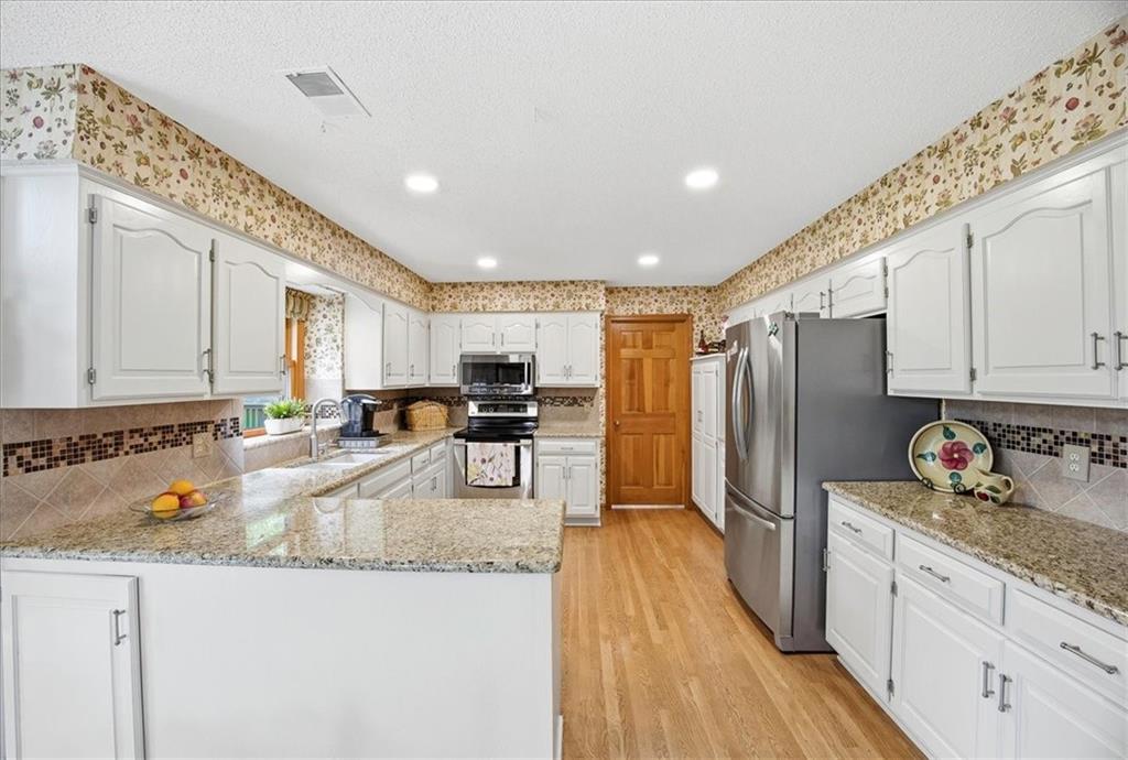 Welcome to your peaceful retreat at 11332 S Rene St in Olathe’s desirable Homestead Creek! This meticulously maintained 4-bedroom, 2.5-bathroom home blends traditional elegance with incredible peace of mind, featuring a new 50-yr Timberline composite roof (2023), upgraded 6" gutters (2023), and James Hardie Plank siding (2016). Step into a sun-drenched foyer with soaring vaulted ceilings, warm oak hardwoods, and upgraded decorative lighting that continues into the dining and breakfast rooms. The sophisticated layout features a formal dining room with a large picture window, custom wainscoting, and a tray ceiling. A versatile front den behind classic French doors offers a quiet retreat, while the great room impresses with a brick fireplace, coffered wood ceiling, and new LED pot lights. All windows have been upgraded to Marvin-made-to-order windows for maximum efficiency. The chef’s kitchen is a standout, offering vast cabinet and counter space. It features granite countertops, a decorative tile backsplash, a built-in desk, and a charming plant ledge over the sink. Just off the kitchen is a main-floor laundry and half bath. Retreat upstairs to the primary suite featuring tray ceilings, a spa-like ensuite with a tub, and his-and-her closets, three additional bedrooms—two with true walk-in closets, all offering plenty of storage space. Outside, the 0.26-acre lot boasts professional-grade landscaping (2017) with advanced drainage and pop-up downspouts. Enjoy the private, fenced-in backyard from the large concrete patio surrounded by low-maintenance plantings. A massive 1,355 sq. ft. full basement offers endless potential for a home gym, theater, or play area. This home is perfectly positioned in the heart of Olathe with easy access to interstates and offering a blend of suburban peace and urban convenience.
