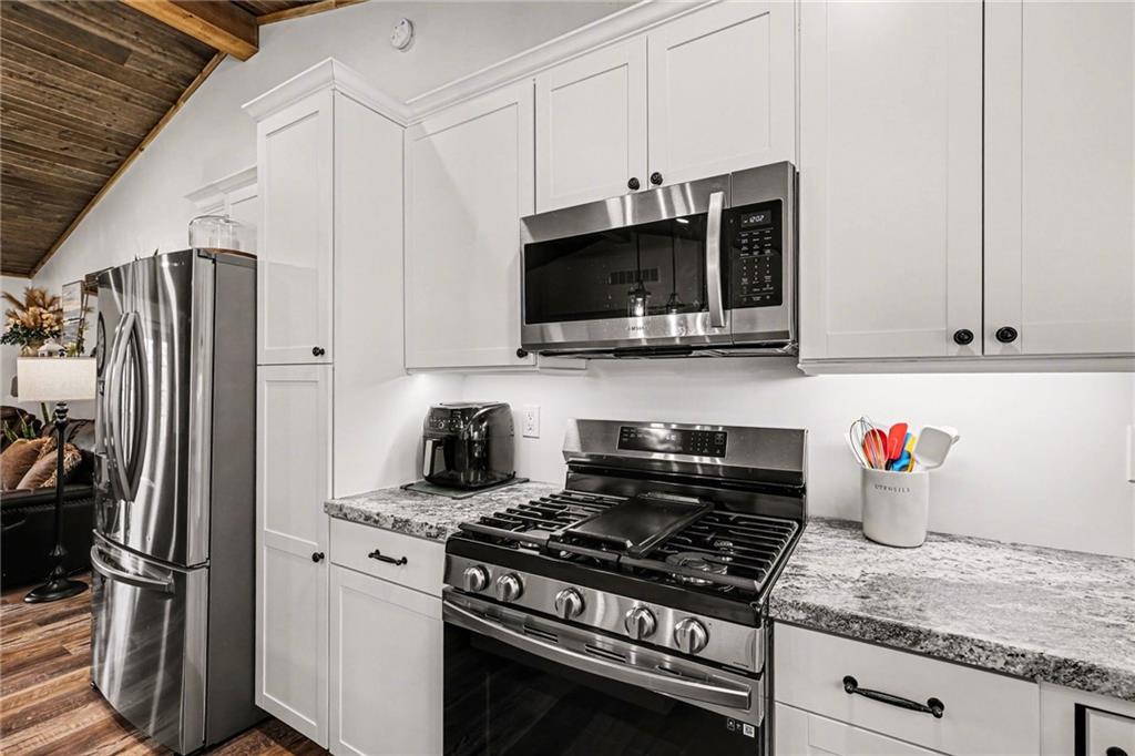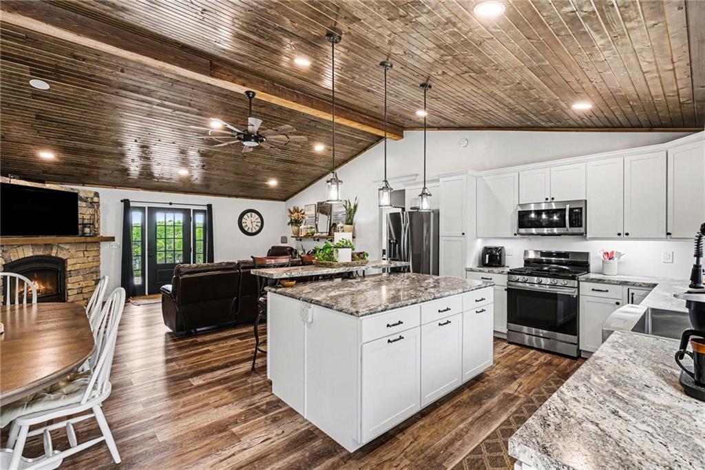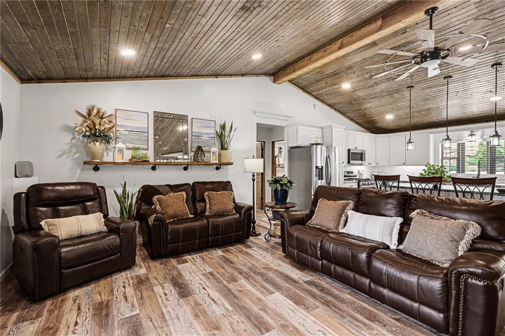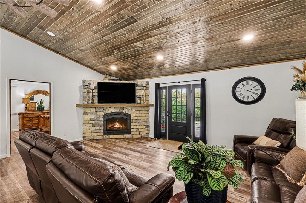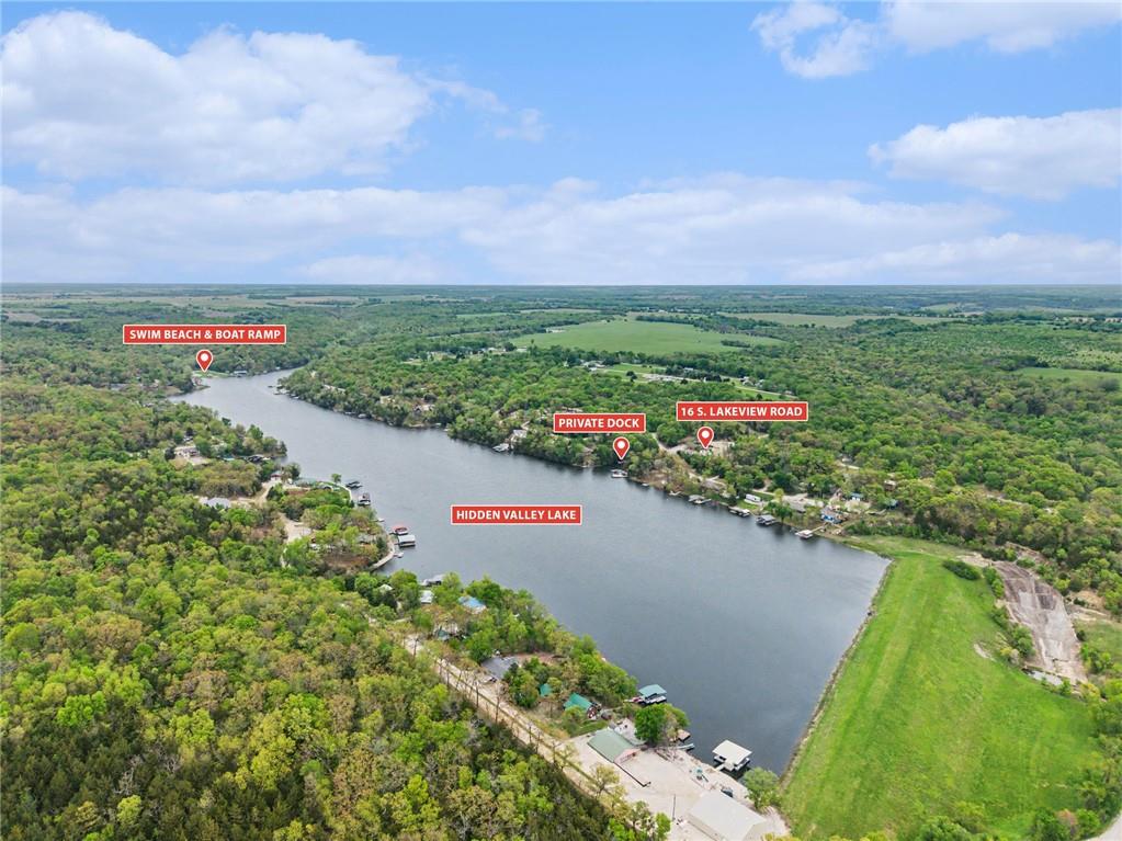 This immaculate, ranch lake home on serene Hidden Valley Lake comes with 6 lots totaling 1.5 acres, and allows access to the lake's 100 acres of water, fishing, boat ramp, clubhouse restaurant and parks! It’s truly the perfect blend of comfort, functionality, and style with its open floor plan and custom stained vaulted ceiling. Large living room features cozy gas fireplace w/ Bandera stone, and the bright kitchen with island/raised breakfast bar, 3 bedrooms and 2 baths provide the perfect space for hosting family & friends. Sellers spared no expense from the living spaces to the high-end antenna/radio/cell service. Very nice, encapsulated crawl space under the home with storage and electrical. A 2-car garage provides convenient access and additional space, while a separate connected 3rd-car garage offers extra room for storage, workshop, or water toys. Outdoors, enjoy your morning coffee on the quiet patio admiring the beautiful landscape. After a day on the lake, relax by the fire pit or spend time fishing. Small private dock makes getting on the water easy! Boats (< 22’), pontoons (< 28’) and personal watercraft are allowed on the lake. Ownership also grants access to Sugar Valley Lake (sister lake 20 mins away) including 9-hole golf course, a swim beach, pool, and club house with food and drinks at the Sugar Valley Grill. This secluded area is a great escape from the city and is 1.5 hours south of the Kansas City area. It’s perfect for weekend get-aways! 5th wheel or RV parking place with electrical in the back of the property with its own street entrance. Tax & HOA totals for all 6 lots. LISTING INCLUDES 6 lots (4 parcels): 16 S. Lakeview Rd. (Lot 63 - .25 acres), 23 Lakeview Rd. (Lots 62 & 22 - .37 acres), 29 Ware Rd. (Lot 70 - .48 acres), 33 Ware Rd. (Lots 68-69 - .40 acres). See map included in photos.