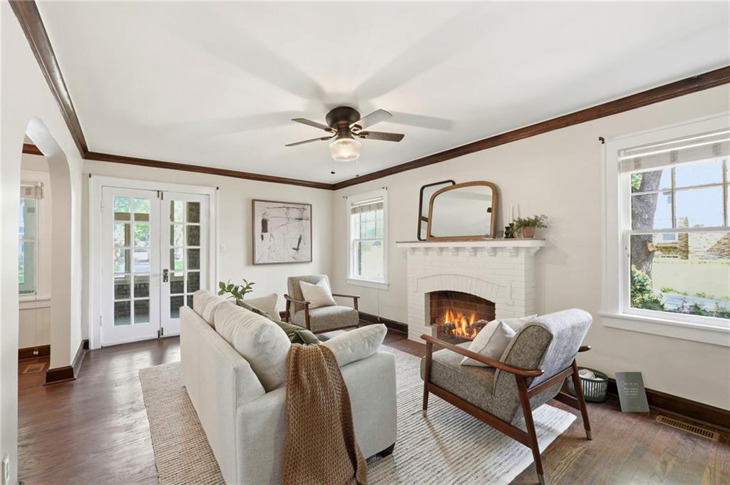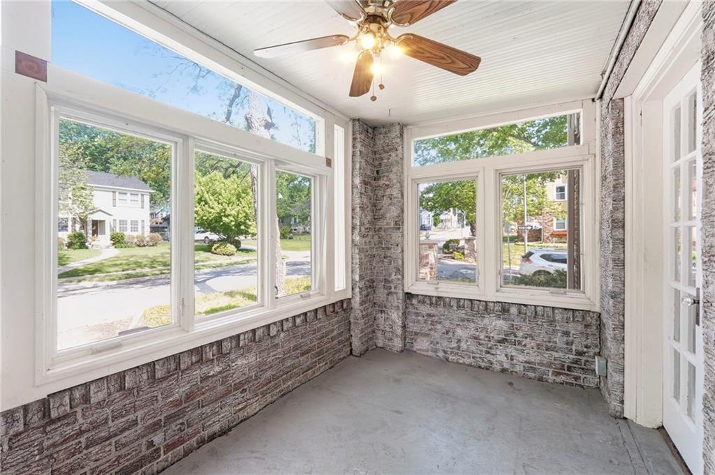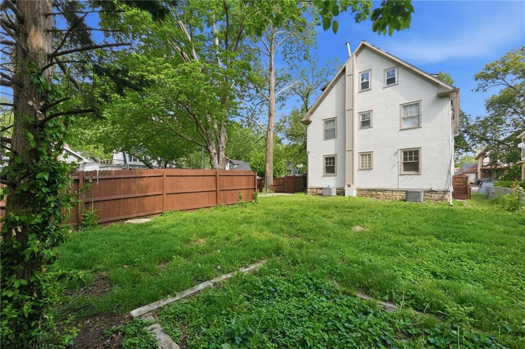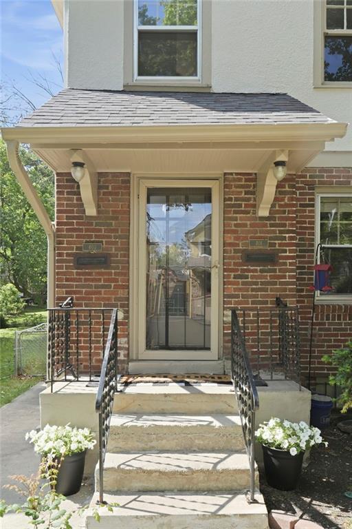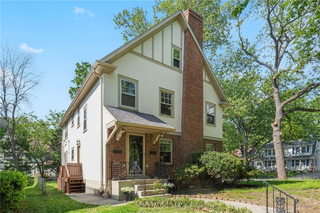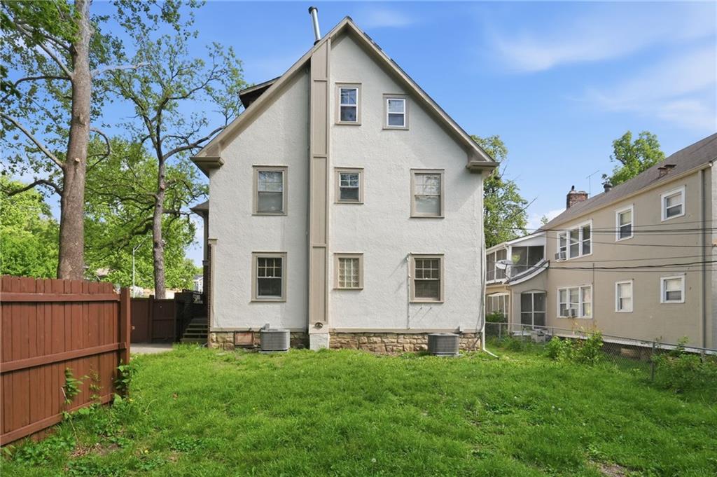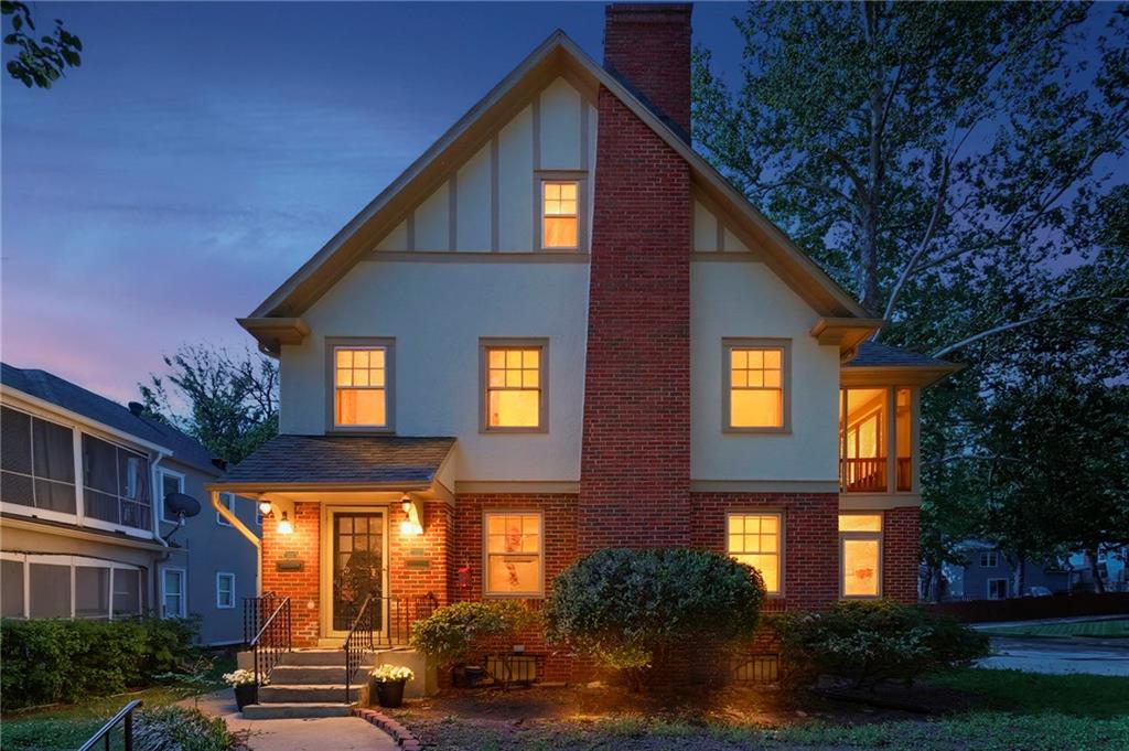 Charming over/under Brookside duplex in Oak Meyer Gardens with historic character, abundant natural light, strong owner-occupant and/or rental potential, and even more room to grow! Property includes +/- 850 sq ft of unfinished third-floor attic space offering potential to expand the upper unit or create additional living space. In total, 3 levels of living space plus an unfinished basement and garage. Backyard extends beyond the current fence, providing additional possibilities outside. Shared front entry with additional private, locking entrances for each unit. Lower main-level unit (1,178 sq ft) features 2 bedrooms and 1 bath, all on one level, with a private screened-in patio. Refinished hardwoods, timeless crown molding, original doors, and a brick fireplace. Upper two-story unit (1,414 sq ft) offers 4 bedrooms and 2 baths and would make an ideal owner-occupied space. Includes its own screened-in patio, brick fireplace, and refinished hardwoods in the living and dining areas. Carpet has been removed in all four bedrooms to reveal hardwoods in great condition. Seller will install new carpet prior to closing or provide a flooring credit for buyers who prefer to refinish. Each unit features dedicated laundry (machines stay) and its own newer HVAC system (installed 2021), hot water tank, and updated electrical panel.