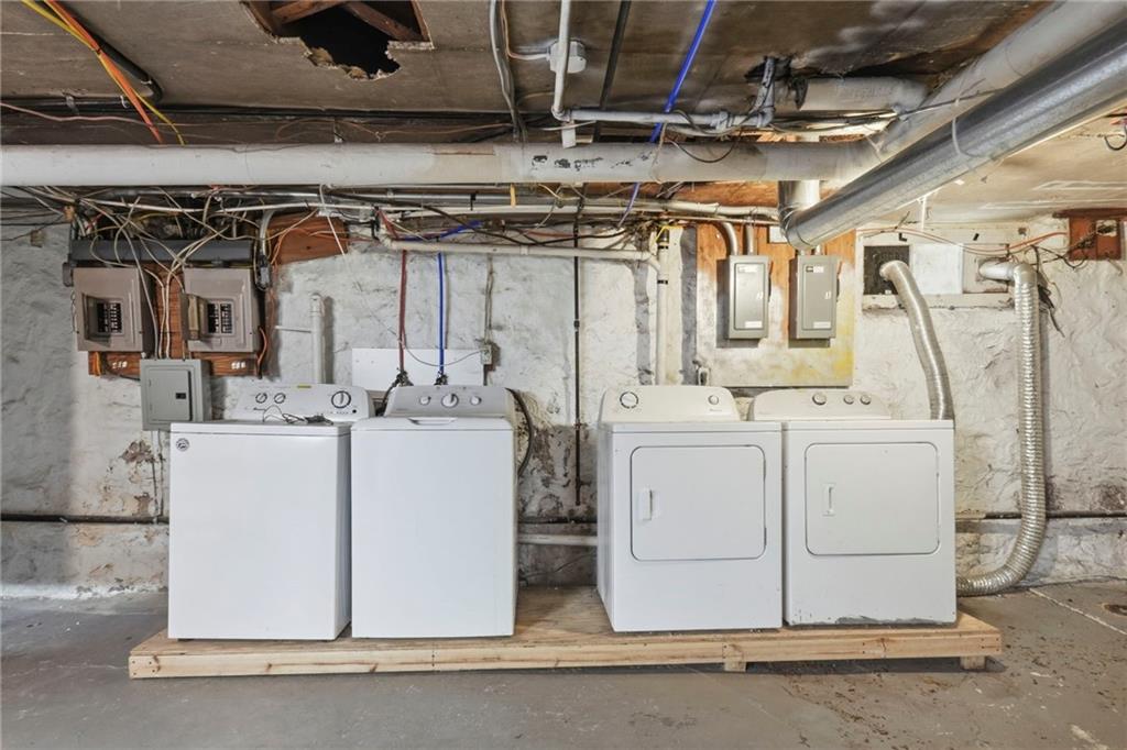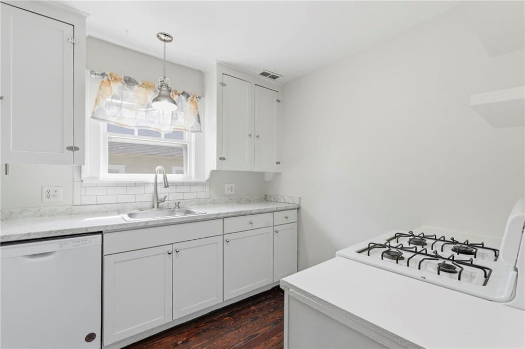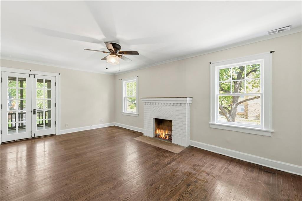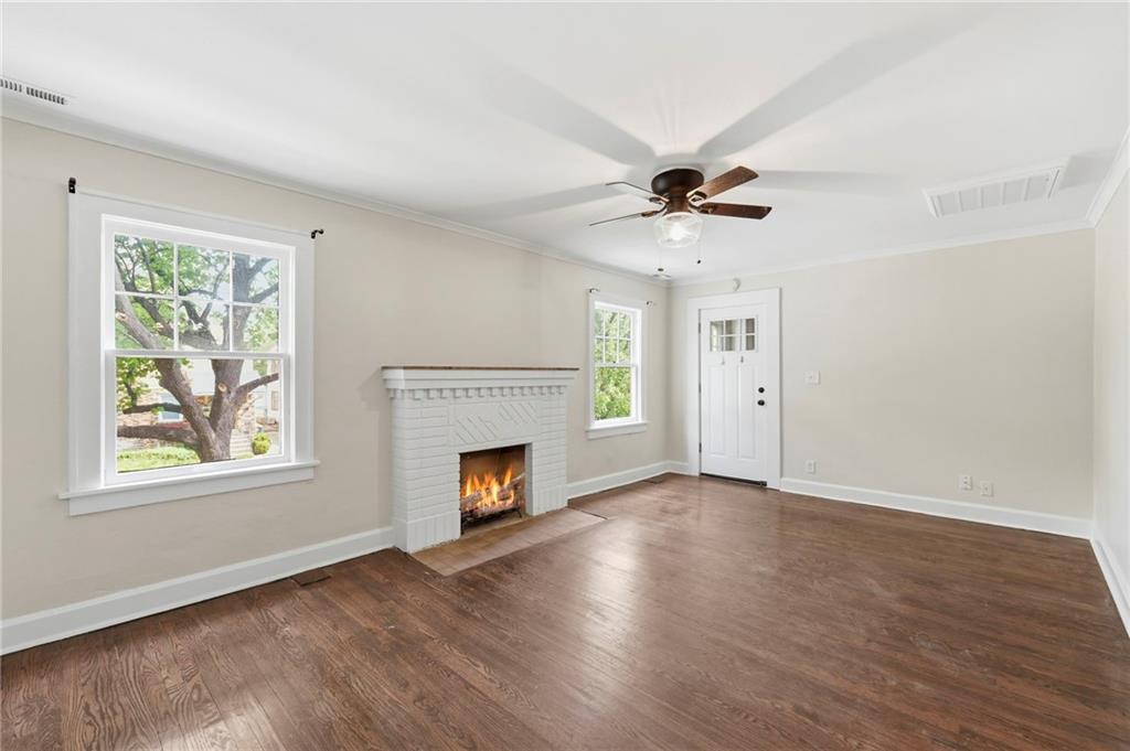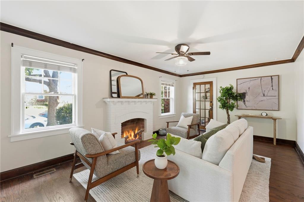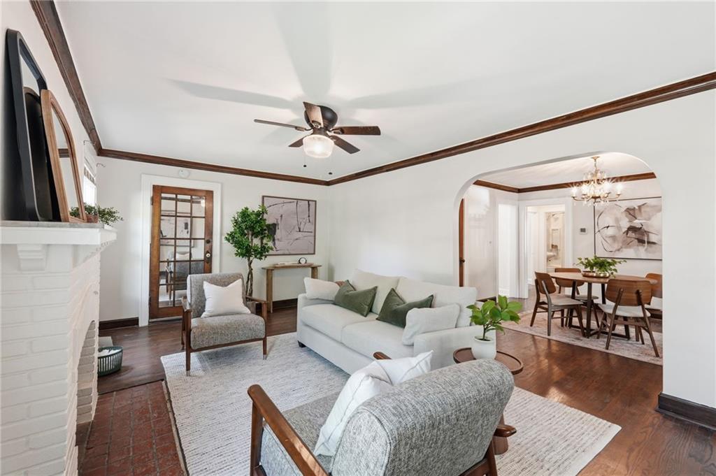 Charming over/under Brookside duplex in Oak Meyer Gardens with historic character, abundant natural light, strong owner-occupant and/or rental potential, and even more room to grow! Property includes +/- 850 sq ft of unfinished third-floor attic space offering potential to expand the upper unit or create additional living space. In total, 3 levels of living space plus an unfinished basement and garage. Backyard extends beyond the current fence, providing additional possibilities outside. Shared front entry with additional private, locking entrances for each unit. Lower main-level unit (1,178 sq ft) features 2 bedrooms and 1 bath, all on one level, with a private screened-in patio. Refinished hardwoods, timeless crown molding, original doors, and a brick fireplace. Upper two-story unit (1,414 sq ft) offers 4 bedrooms and 2 baths and would make an ideal owner-occupied space. Includes its own screened-in patio, brick fireplace, and refinished hardwoods in the living and dining areas. Carpet has been removed in all four bedrooms to reveal hardwoods in great condition. Seller will install new carpet prior to closing or provide a flooring credit for buyers who prefer to refinish. Each unit features dedicated laundry (machines stay) and its own newer HVAC system (installed 2021), hot water tank, and updated electrical panel.