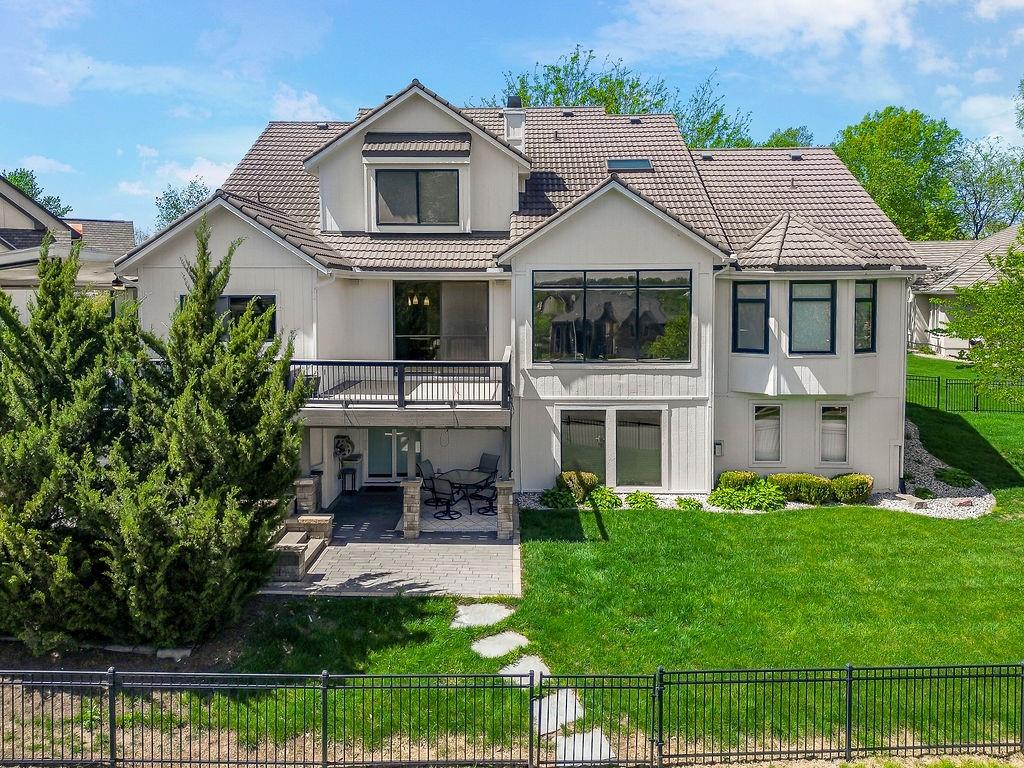 Welcome to this stunning and spacious 1.5-story home designed for both comfort and entertaining! The custom gourmet kitchen is a chef’s delight, boasting top-of-the-line Viking appliances, a gas range, and a generous island perfect for meal prep and casual gatherings. Step outside to your private retreat featuring an outdoor kitchen and a cozy fire pit—ideal for relaxing or entertaining year-round. Inside, the main level impresses with a formal dining room, a bright great room with expansive windows and a see-through fireplace, a private office, and a luxurious primary suite. Upstairs, you’ll find three spacious bedrooms and a versatile loft area—perfect for a playroom, reading nook, or extra workspace. The finished walkout lower level offers even more room to enjoy, including a family room, wet bar, rec area, and an exercise room. Nestled on a quiet cul-de-sac with a fenced yard and easy lake access, this home combines privacy, elegance, and convenience. A backyard gate leads directly to the sidewalk and dock, just steps away. This home truly has it all—style, space, and a perfect setting for everyday living or entertaining!