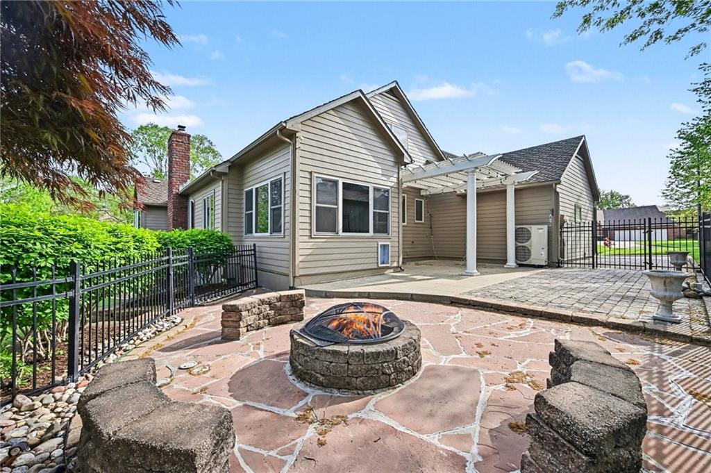 Located near the Lawrence Country Club, this expansive and beautifully maintained home offers exceptional space, updates and comfort throughout. The welcoming hardwood entry opens to an office with French doors. The spacious living room features gleaming hardwoods, a vaulted ceiling and a cozy fireplace. The oversized kitchen is a chef's dream-with quartz countertops, custom cabinetry, under-cabinet lighting, a gas range, built-in microwave, wine fridge and hardwood floors. There is an enclosed sunroom complete with ceiling fan, split heat/air and a nice doggie door. The main-level primary suite is spacious, has a massive walk-in closet and a wonderful, updated bathroom with a huge walk-in shower, custom cabinets and gorgeous tile flooring. A second main-floor bedroom has lots of room. There is a full bathroom in the hall with a wonderful skylight. There is a main floor laundry room as well as a laundry area in the lower level. The upstairs has two large bedrooms. The third bedroom has a large walk-in closet and beautiful plantation shutters. The fourth bedroom also boasts a nice walk-in closet. There is a bathroom on the second level that has a wonderful step-in shower. The lower-level walkout basement offers luxury vinyl flooring, a secondary kitchen with a huge island, sink and custom-built cabinets. The fifth bedroom is absolutely enormous with a large walk-in closet. There is a full bathroom in the lower level which makes this area perfect for guests or extended living. The lower-level walks out to a large patio. The big backyard has a gorgeous stone patio, pergola and a nice firepit. This home has beautiful landscaping, stone walkway in the front and a three-car garage. This stunning home combines abundant living space, quality craftsmanship, and a prime location near golf, trails, shops, schools and more. This is an ideal blend of luxury and comfort. Taxes and rooms sizes are approximate. Buyer to confirm schools and any information they deem important.