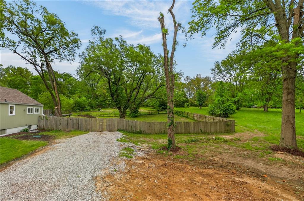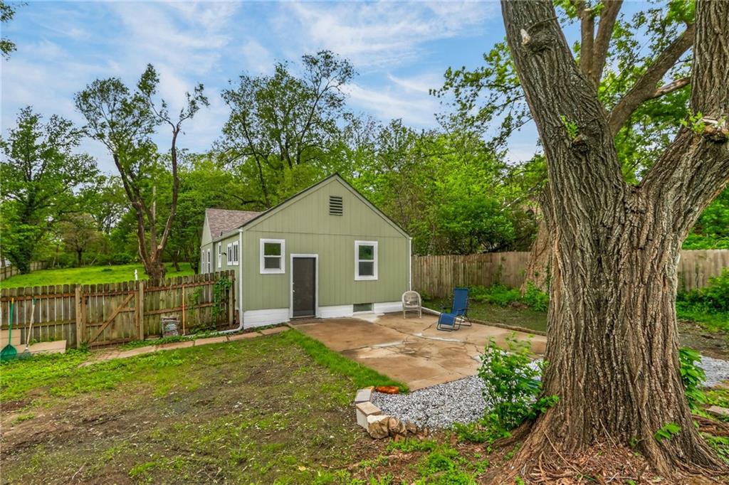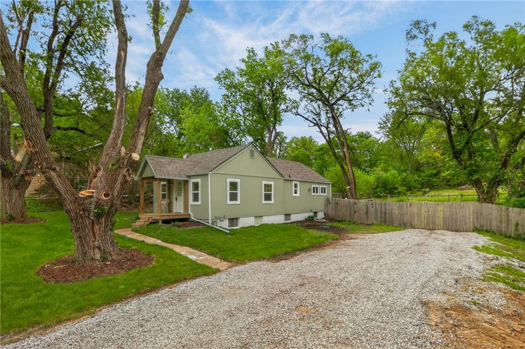 Charming bungalow on nearly an acre, in a residential area, close to shopping and restaurants! Kansas City address between Raytown and Lee's Summit. Discover the perfect balance of cozy indoor living and massive outdoor potential. This beautifully updated 2-bedroom, 1-bathroom home offers 840 sq. ft. of main-level living space, situated on a rare, nearly one-acre lot.