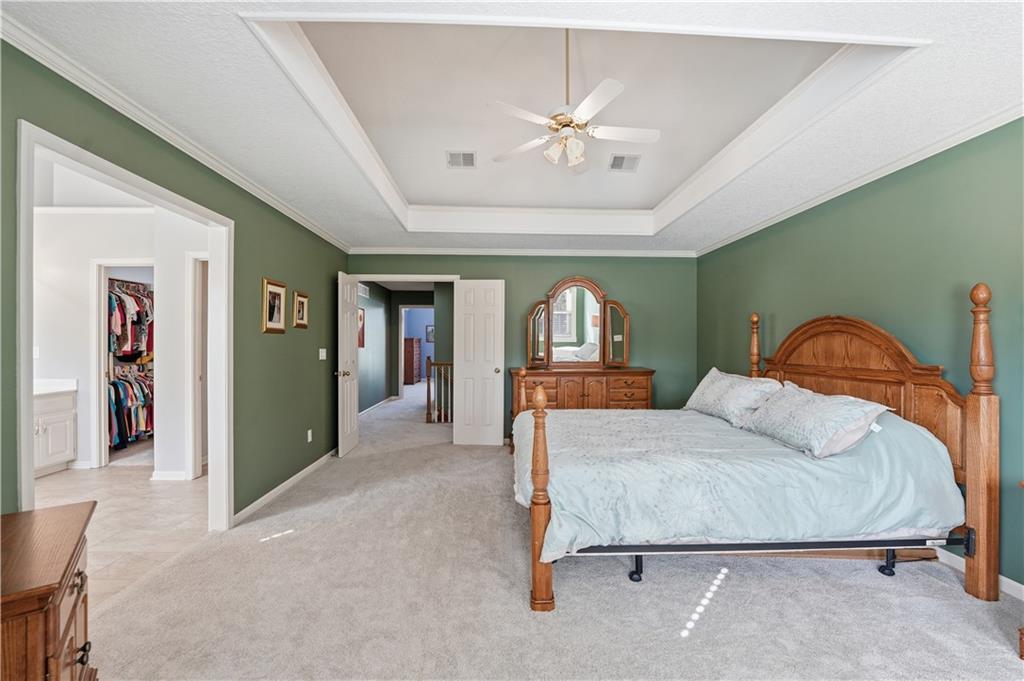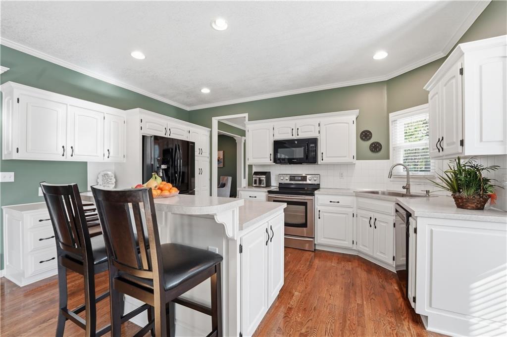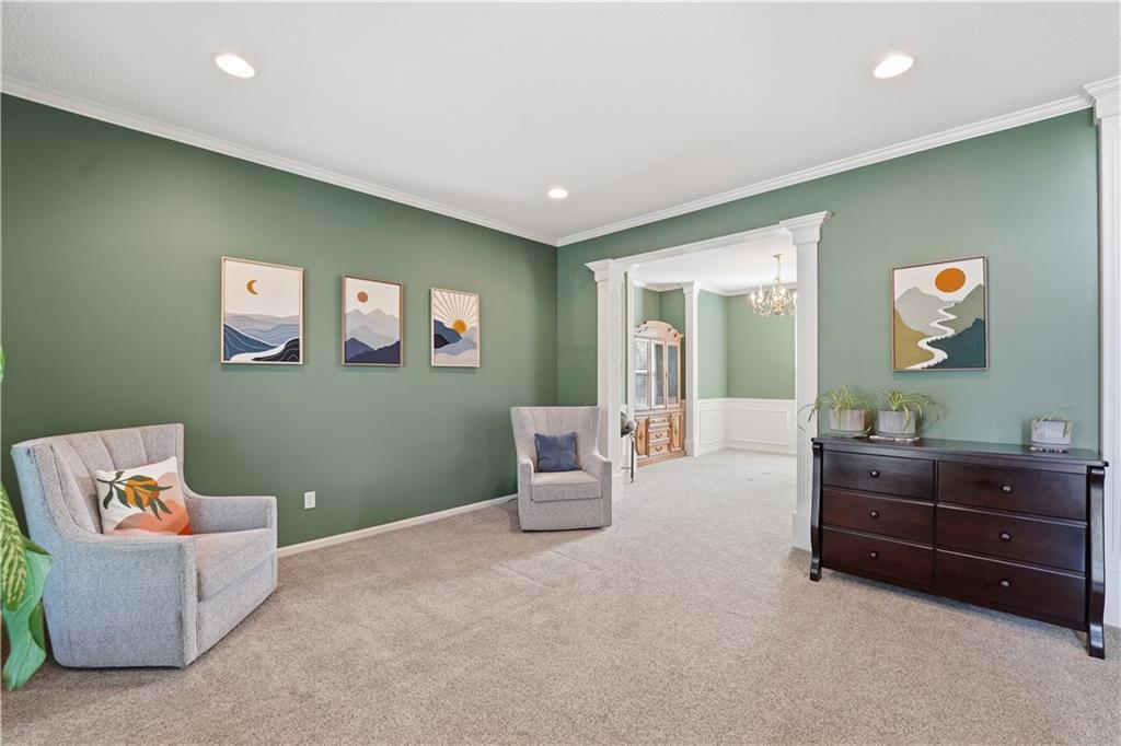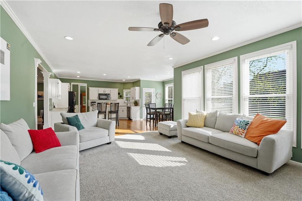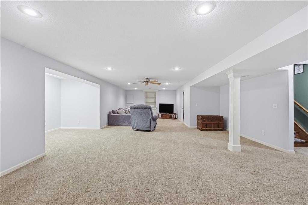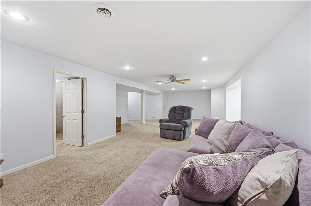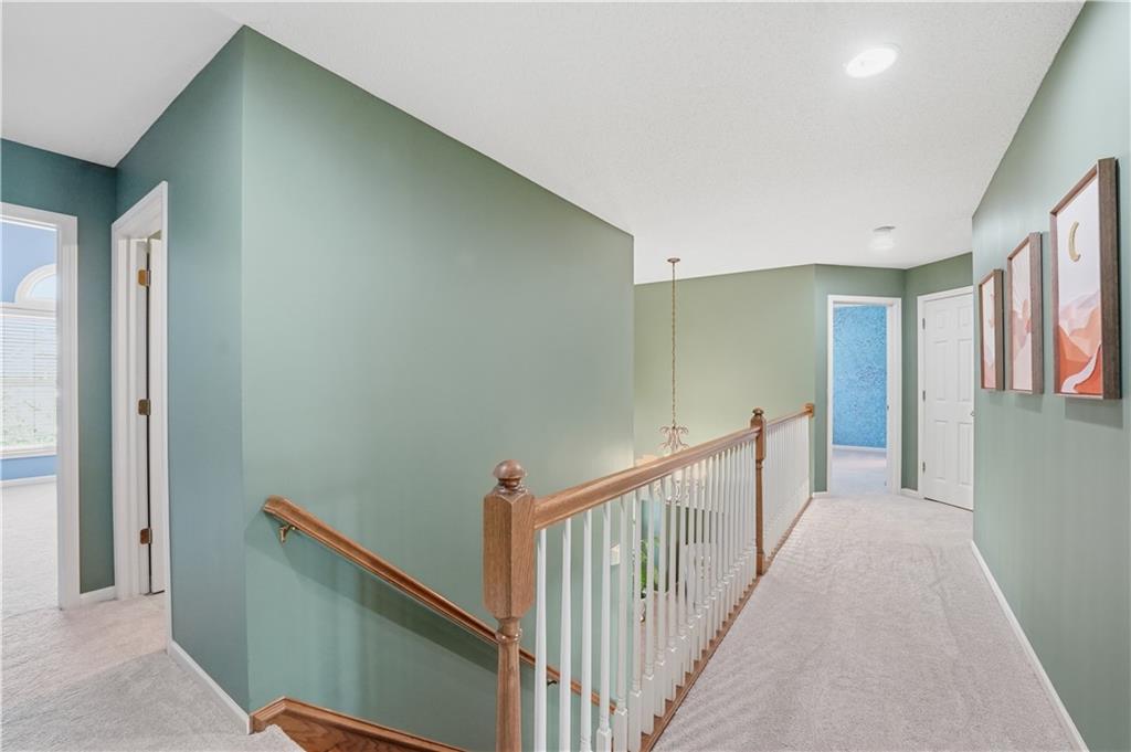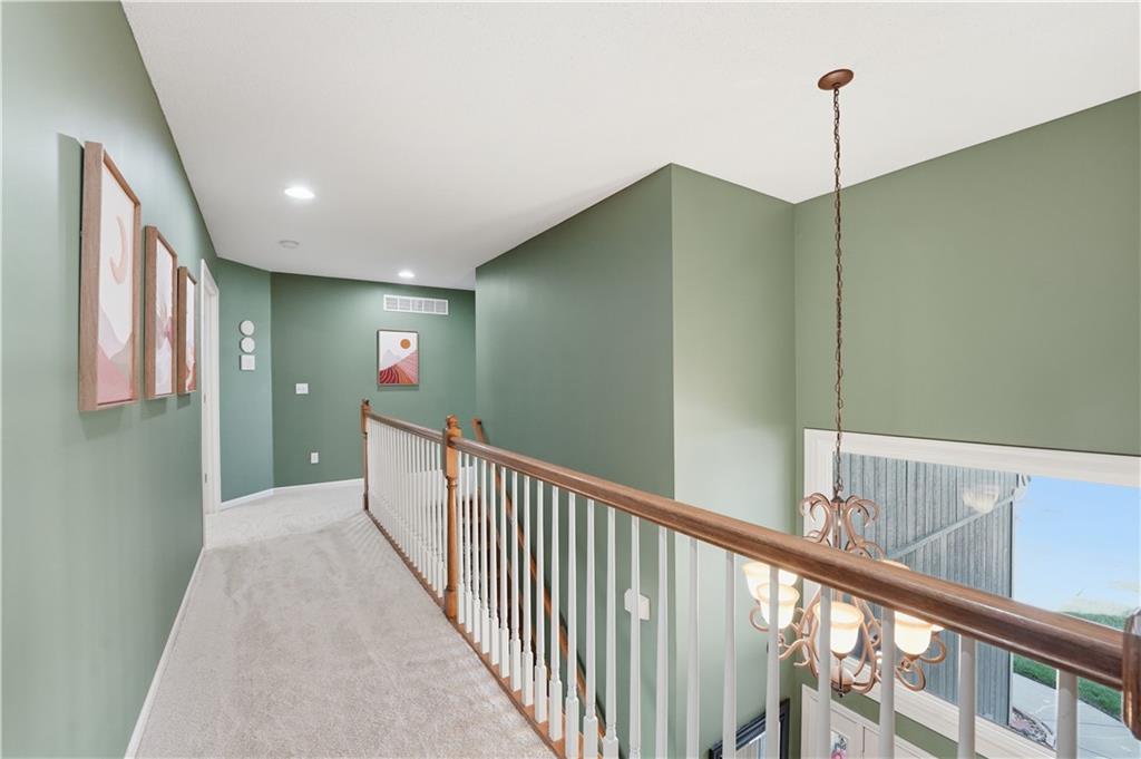 Very rare Blue Valley family home with a 3rd-car garage on a cul-de-sac lot with an in-ground pool! Nothing to do but move in and enjoy this spacious and functional family home. It features a front sitting room that can be used as a home office and a formal dining room. The heart of the home is the kitchen with a center island that opens to the large family room and kitchen dining room. Just off the kitchen is the spacious, fenced backyard and patio with an in-ground saltwater swimming pool, perfect for year-round relaxing, grilling, and entertaining. Upstairs are the large primary bedroom and sitting area with an en suite bathroom and an enormous walk-in closet; a junior suite with a full bathroom and two additional bedrooms; a Jack-and-Jill bathroom; and a laundry room. The large finished basement has plenty of space for a media room, home gym, and recreation area. It includes a fourth full bathroom. Recent updates include new interior paint, new carpet, and new bathroom and laundry room flooring. Outstanding location. Close to trails and a short distance to the Community Center. Close to restaurants and shops, and easy access to Hwy 69 and I-435.