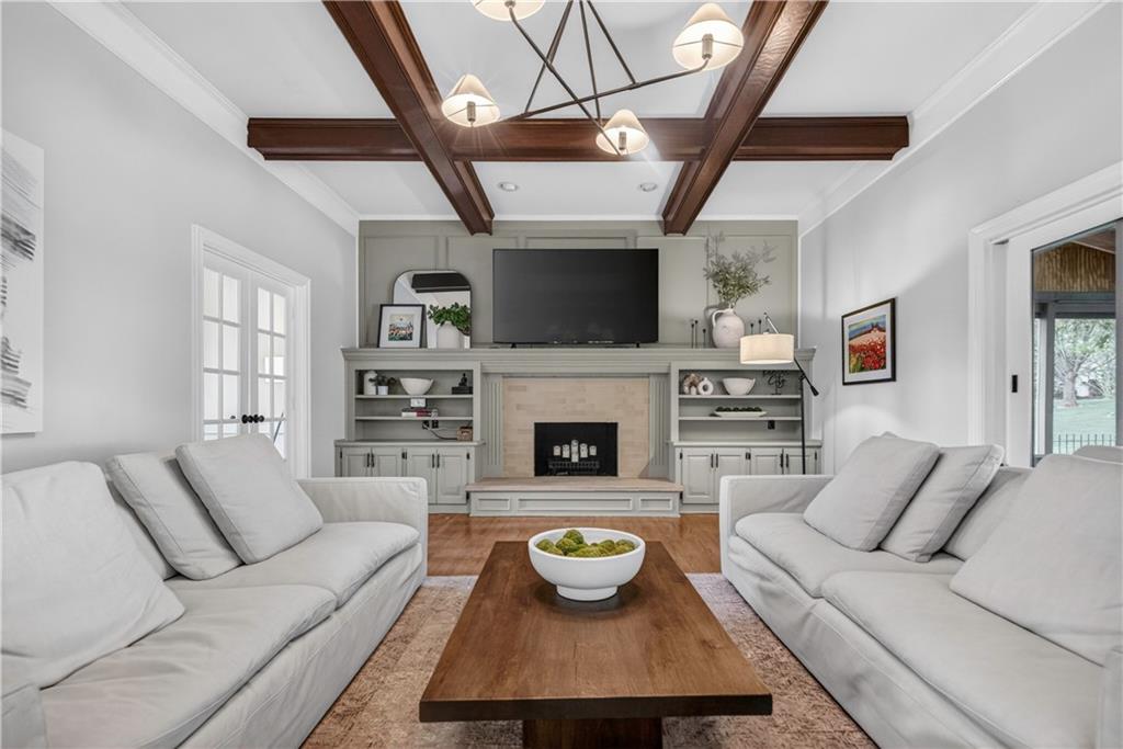 BEAUTIFULLY UPDATED SHOWSTOPPER PACKED WITH HIGH-END UPGRADES—DESIGNED TO IMPRESS AT EVERY TURN! Absolutely stunning backyard oasis featuring a screened-in porch and expansive patio with fire pit, all overlooking the in-ground pool and beautifully landscaped yard—perfect for relaxing or entertaining. Step inside to find rich wood floors throughout the main level and impressive 10-foot ceilings that enhance the open, airy feel. The Great Room showcases custom built-ins and a fireplace, while the Hearth Room offers additional built-ins and a charming brick fireplace for cozy gatherings. Chef’s kitchen is sure to please, boasting quartz countertops, a large center island with prep sink, stainless steel appliances including a gas range and second built-in oven, a hidden walk-in pantry and soft-close cabinetry. A formal dining room provides the perfect space for hosting dinners and special occasions. Main level also features a dedicated office, convenient laundry room and half bath. Upstairs, enjoy a spacious family room with fireplace (could be used as 5th bedroom). Luxurious primary suite includes a spa-like bath with double vanity, whirlpool tub and an oversized walk-in closet. Secondary bedrooms are generously sized—Bedroom 2 features a private bath and walk-in closet, while Bedrooms 3 and 4 share a bath, each with its own vanity and walk-in closet. Designed with the perfect blend of functionality and style for everyday living and entertaining. Prime location in the award-winning Blue Valley School District, just minutes from parks, shopping, dining and easy highway access. WELCOME HOME!