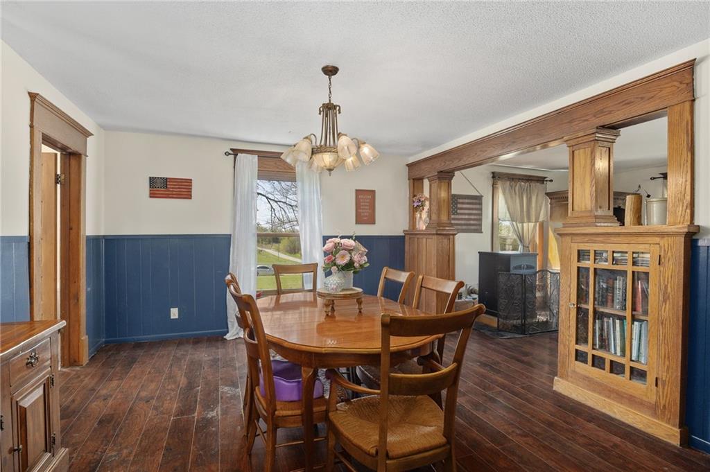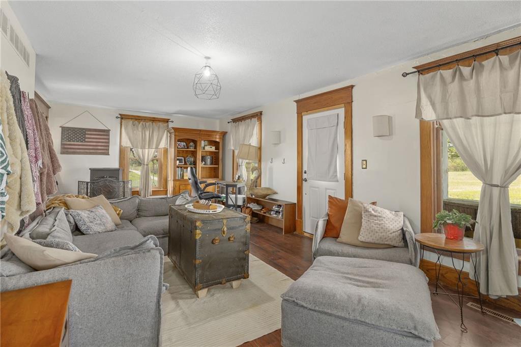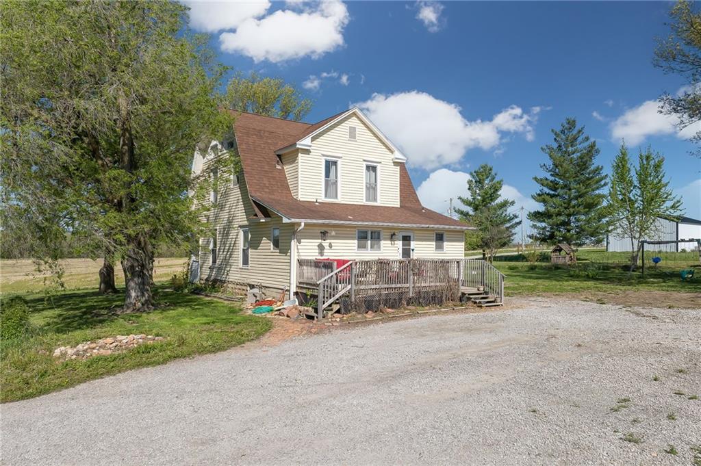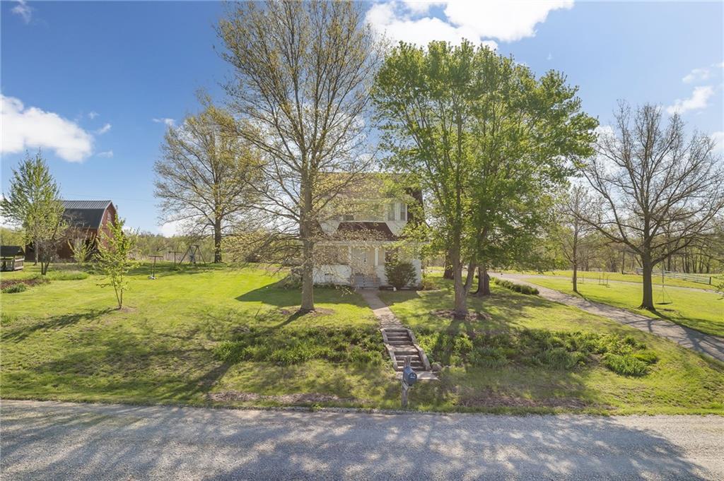 Welcome home to this picturesque 3-bedroom, 2-bathroom estate nestled on 7 beautiful acres just outside Union Star. Originally built in 1900, this home showcases timeless character and craftsmanship you simply don’t find today—from the inviting covered front porch to the distinctive siding and detailed dentil molding. Inside, the main level blends historic charm with modern updates. The kitchen features white cabinetry, butcher block countertops, and a stainless steel oven, offering both style and functionality. Just off the kitchen, a true mudroom provides convenient space for coats, shoes, storage, and includes a washer and dryer area. The traditional dining room highlights original wood detailing and flows seamlessly into a spacious family room complete with a cozy pellet stove. A charming staircase—accented by a built-in wood bench and original trim—leads to the second floor. Upstairs, you’ll find three generously sized, carpeted bedrooms and a full bathroom featuring a classic clawfoot tub. Outside, the property offers a versatile outbuilding ideal for storage, hobbies, or equipment. The mostly level acreage includes a gentle slope, providing both usability and scenic views. Conveniently located less than a quarter mile off Highway 169, this property offers privacy without sacrificing accessibility. Don’t miss this rare opportunity to own a piece of history with modern comforts in a peaceful rural setting.