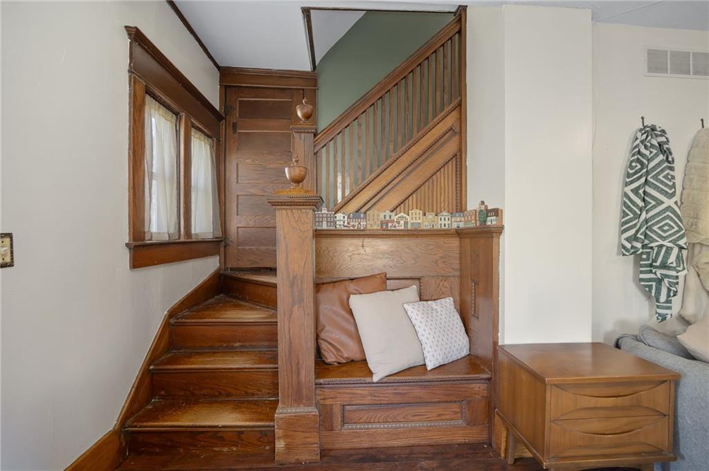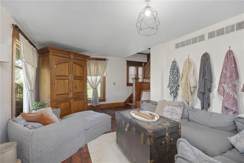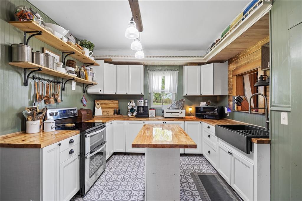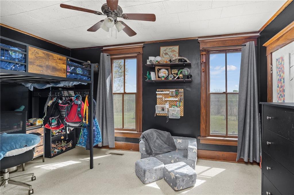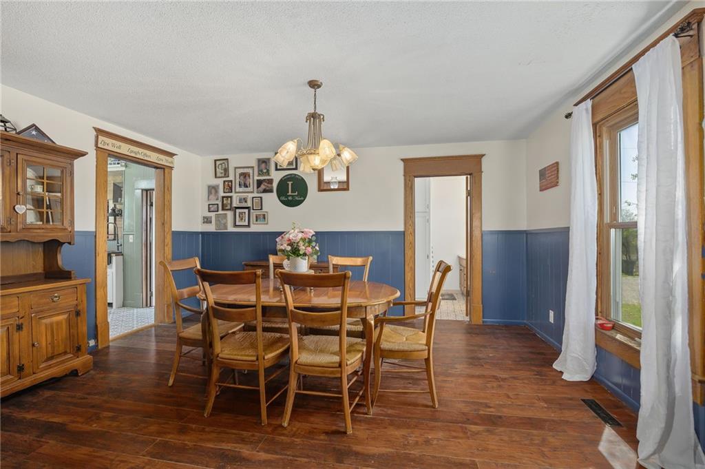 Welcome home to this picturesque 3-bedroom, 2-bathroom estate nestled on 7 beautiful acres just outside Union Star. Originally built in 1900, this home showcases timeless character and craftsmanship you simply don’t find today—from the inviting covered front porch to the distinctive siding and detailed dentil molding. Inside, the main level blends historic charm with modern updates. The kitchen features white cabinetry, butcher block countertops, and a stainless steel oven, offering both style and functionality. Just off the kitchen, a true mudroom provides convenient space for coats, shoes, storage, and includes a washer and dryer area. The traditional dining room highlights original wood detailing and flows seamlessly into a spacious family room complete with a cozy pellet stove. A charming staircase—accented by a built-in wood bench and original trim—leads to the second floor. Upstairs, you’ll find three generously sized, carpeted bedrooms and a full bathroom featuring a classic clawfoot tub. Outside, the property offers a versatile outbuilding ideal for storage, hobbies, or equipment. The mostly level acreage includes a gentle slope, providing both usability and scenic views. Conveniently located less than a quarter mile off Highway 169, this property offers privacy without sacrificing accessibility. Don’t miss this rare opportunity to own a piece of history with modern comforts in a peaceful rural setting.