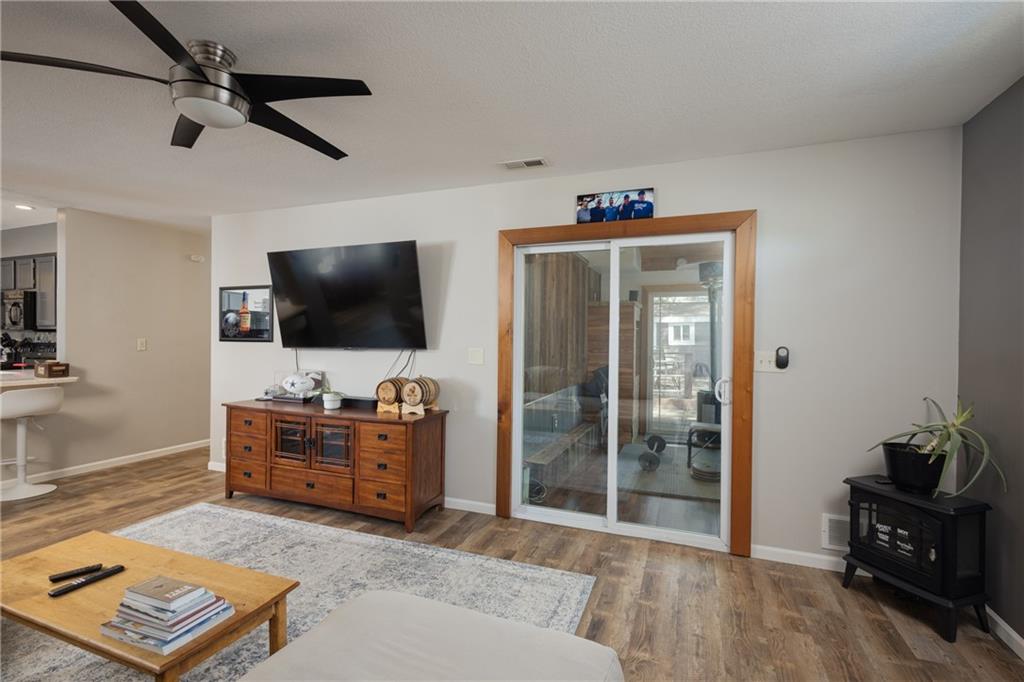 Don't miss this beautifully updated 2 bed, 2 bath duplex in a prime Lawrence location! This move-in ready home features modern updates throughout, offering the perfect blend of comfort, style, and functional single-level living. Step inside to find a bright, inviting open concept layout. The kitchen and living areas flow seamlessly, making this home ideal for both every day living and entertaining. Outside you will fall in love with the private, fully fenced backyard - complete with a charming deck, mature shade tree, and cozy patio perfect for morning coffee or relaxing evenings. The shed even adds additional storage and character to this adorable outdoor space. This one is a must-see!