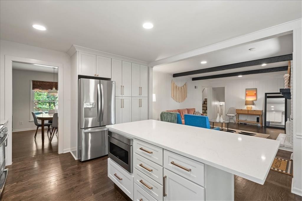 Beautifully updated, this inviting Overland Park home blends stylish finishes, functional living space, and strong curb appeal in the sought-after Round Hill neighborhood. With a stunning kitchen, fully renovated bathrooms, and quality improvements throughout, this move-in ready home delivers both comfort and everyday practicality. A well-designed layout creates a natural flow between multiple living areas, offering flexibility for entertaining, working from home, or daily routines. The kitchen anchors the home with sleek countertops, updated cabinetry, stainless steel appliances, and generous prep and storage space. It opens directly to the expansive family room, where a brick fireplace and oversized windows create a warm, comfortable setting for gathering or unwinding. Upstairs, the primary suite provides a relaxing retreat, highlighted by a renovated en-suite bath with marble countertops, trendy brass fixtures, and a clean, timeless tile aesthetic. Additional bedrooms are well-sized and adaptable, while the hall bath reflects a consistent level of finish and attention to detail. A drop zone and laundry room are conveniently located just off the garage, and a bonus room on the main level offers additional flexibility for play, work, or hobbies. Located within the Briarwood, Indian Hills, and Shawnee Mission East school boundaries, the home is also just minutes from Meadowbrook Park, offering access to trails, green space, and community amenities. Nearby shopping, dining, and everyday conveniences along 95th Street and Metcalf further enhance the location. With its thoughtful updates, flexible layout, and highly desirable setting, this home presents a compelling opportunity in one of Overland Park’s most established neighborhoods.
