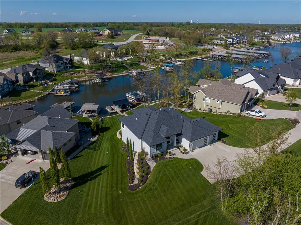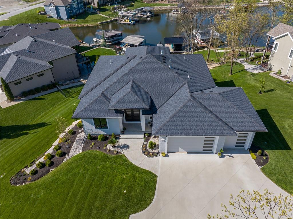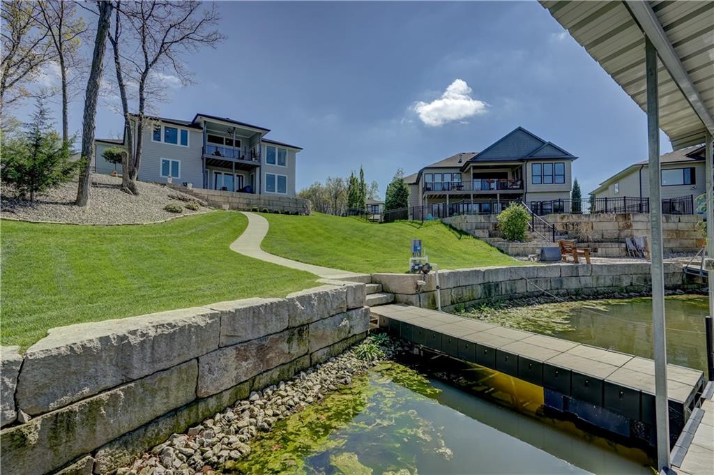 Stunning reverse 1.5 story lakefront home tucked away on a private cul-de-sac lot with awesome water views and direct lake access. This newer 4-bedroom, 3.5-bath home offers an open and spacious layout designed for both everyday living and entertaining. The kitchen is beautiful with custom cabinets, quartz countertops, & Stainless appliances. Enjoy private lake views from the main living areas and step out onto the covered deck to relax or take in the scenery. The finished walkout basement provides additional living space, bedrooms, and easy access to the backyard oasis. Beautifully maintained with extensive landscaping, irrigation system, and a sidewalk leading to your private dock for effortless days on the water. House is located in a cove so perfect for fishing, swimming, and floating with no boat traffic. A rare opportunity to own a move-in ready waterfront home with luxury features, privacy, and incredible outdoor living.