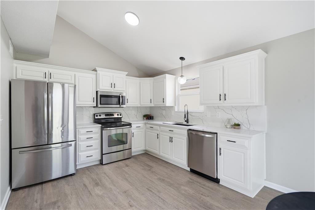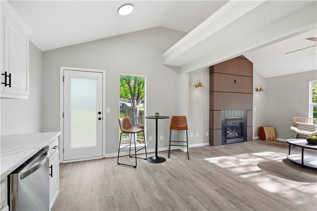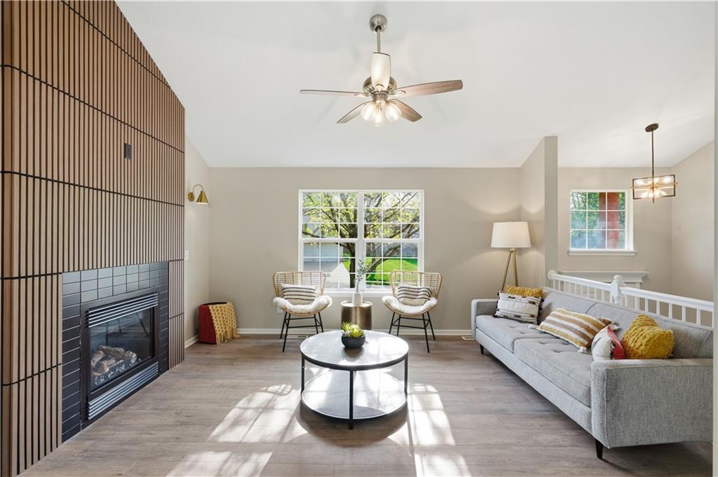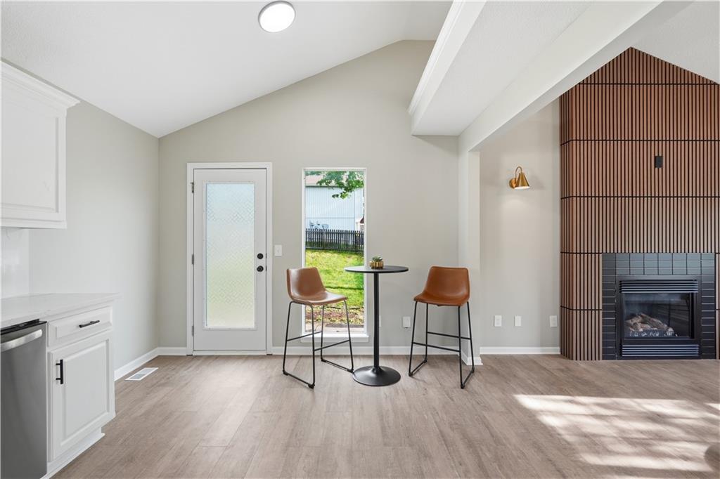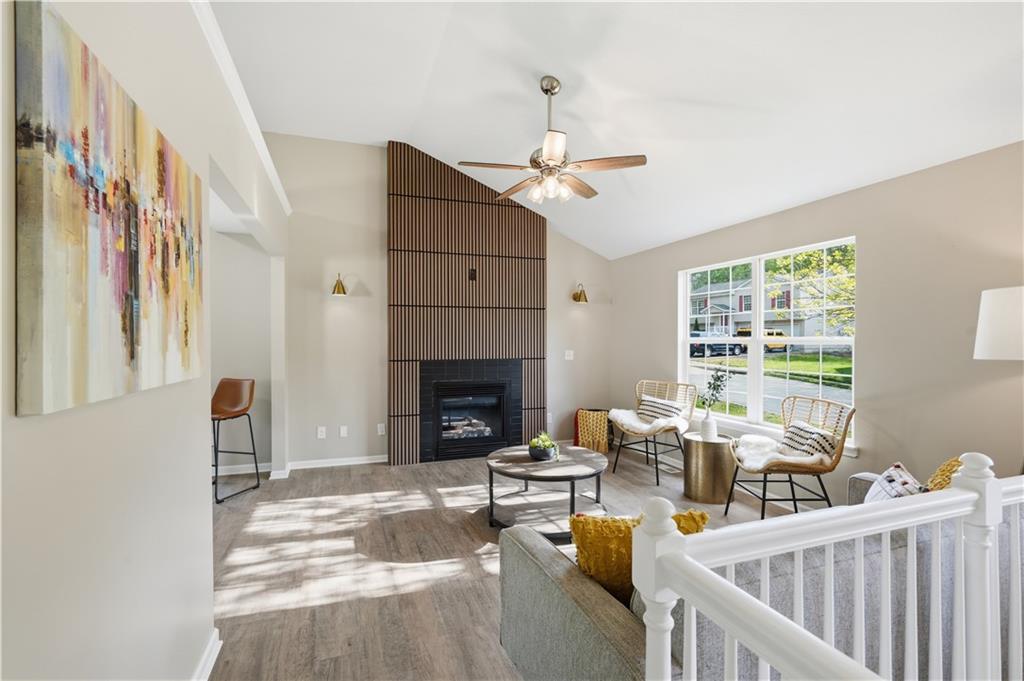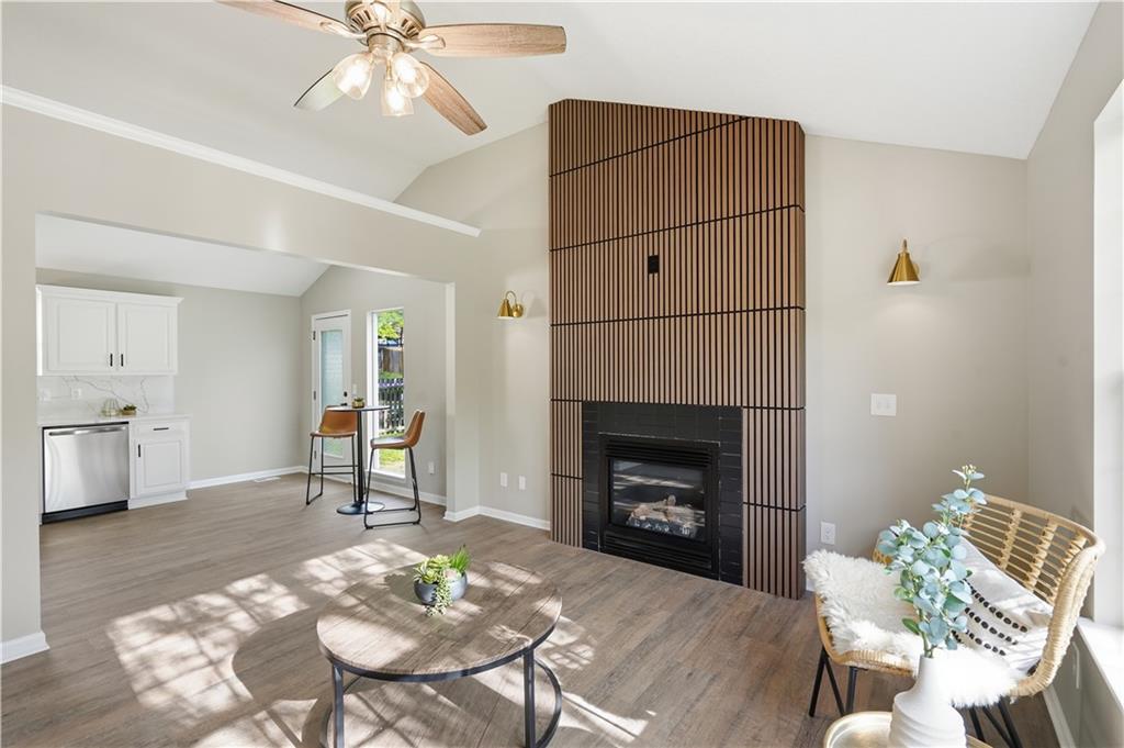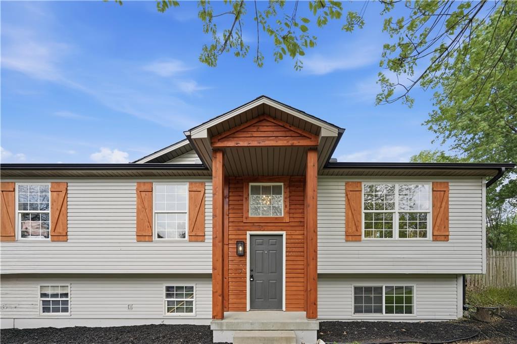 This fully renovated residence, situated on a corner lot in the heart of town, offers an array of impressive features. From top to bottom, the home showcases a sparkling new aesthetic, thanks to numerous recent upgrades. The exterior showcases a new roof, gutters, paint, and cedar accent siding, ensuring a striking appearance. Inside, the main level presents new flooring throughout, updated fixtures, a modernized kitchen with new appliances, new HVAC, and renovated bathrooms. The main living area features vaulted ceilings and a newly constructed fireplace, while the primary suite offers a walk-in shower, double vanity, and spacious walk-in closet. Two additional bedrooms and a full bathroom are located across the hall, and the lower level provides a spacious living area and half bath ideal for entertainment or flexible use.