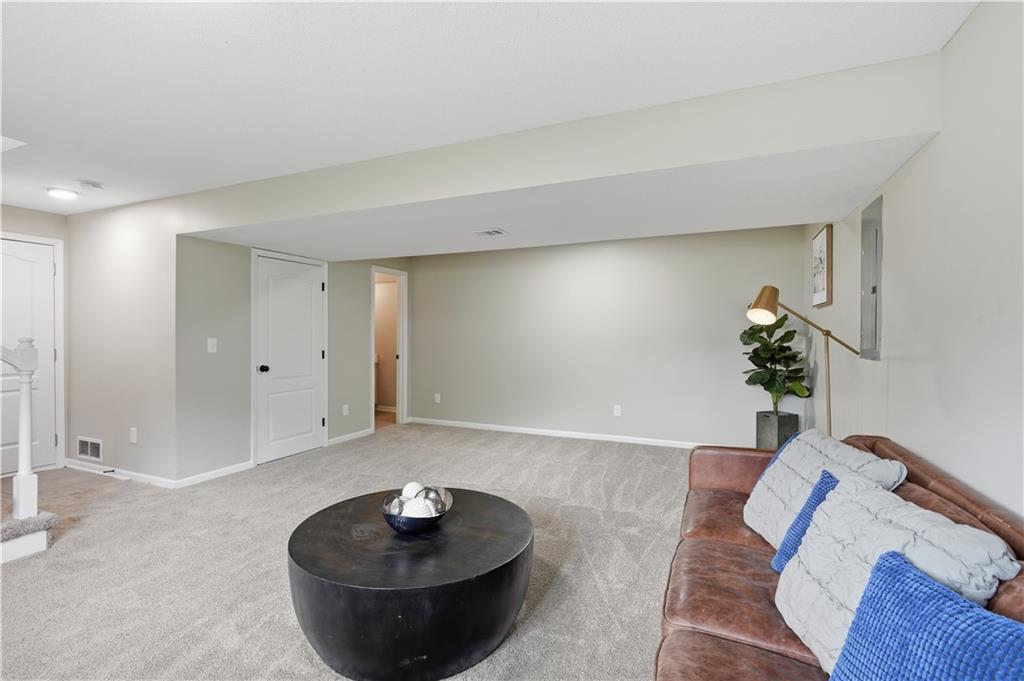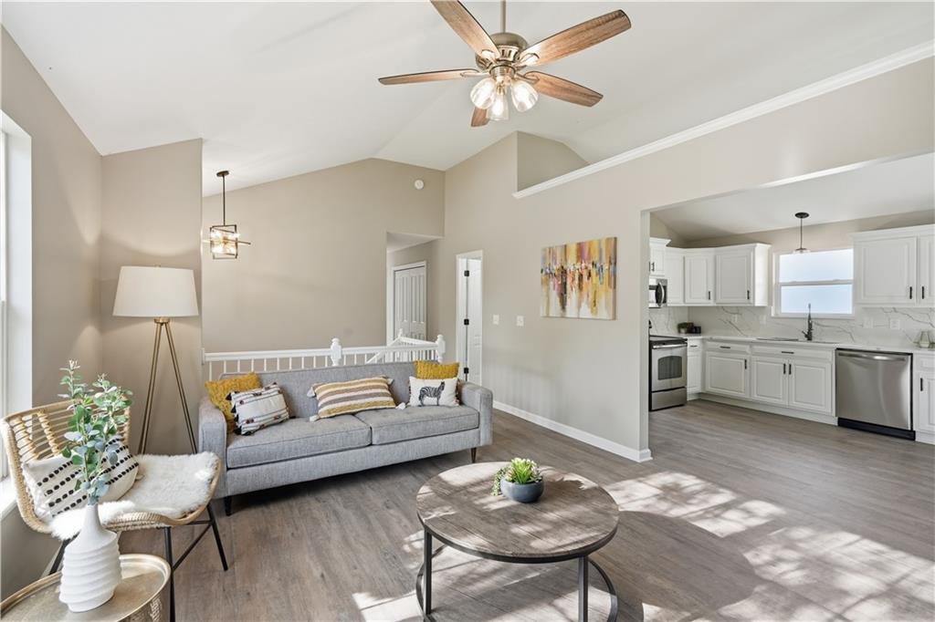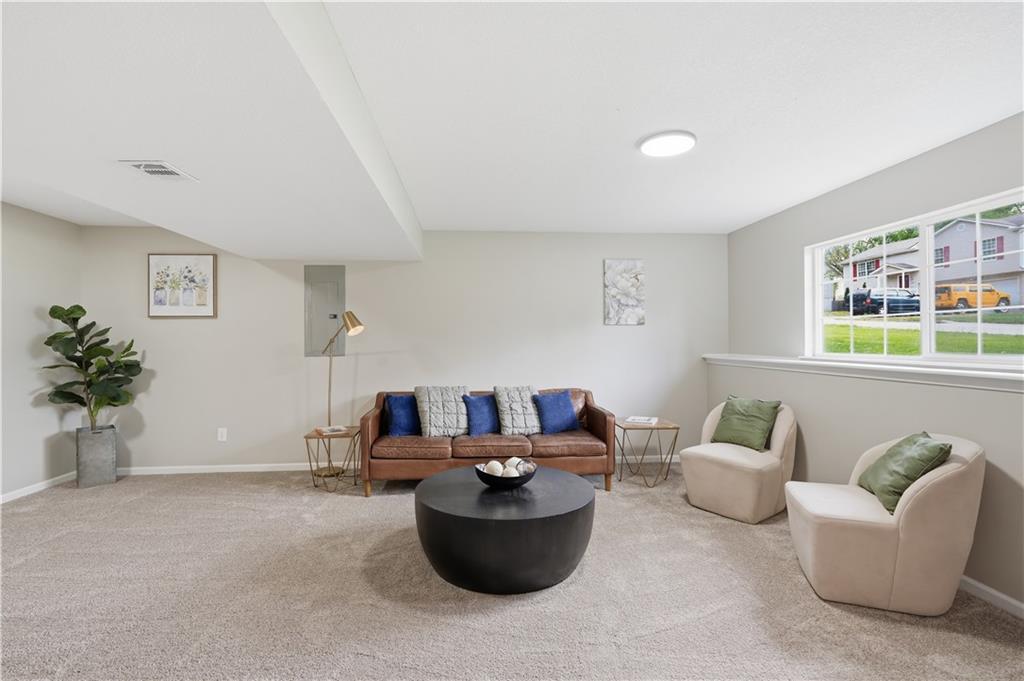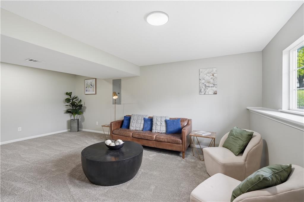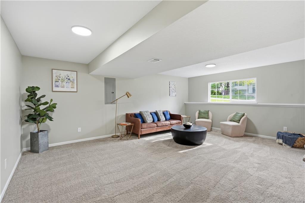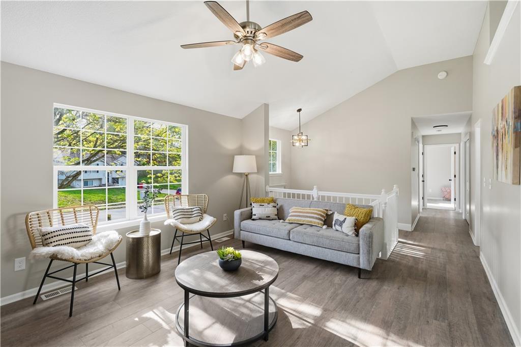 This fully renovated residence, situated on a corner lot in the heart of town, offers an array of impressive features. From top to bottom, the home showcases a sparkling new aesthetic, thanks to numerous recent upgrades. The exterior showcases a new roof, gutters, paint, and cedar accent siding, ensuring a striking appearance. Inside, the main level presents new flooring throughout, updated fixtures, a modernized kitchen with new appliances, new HVAC, and renovated bathrooms. The main living area features vaulted ceilings and a newly constructed fireplace, while the primary suite offers a walk-in shower, double vanity, and spacious walk-in closet. Two additional bedrooms and a full bathroom are located across the hall, and the lower level provides a spacious living area and half bath ideal for entertainment or flexible use.