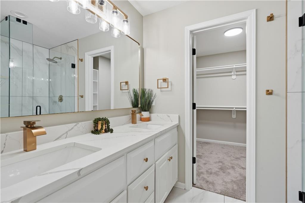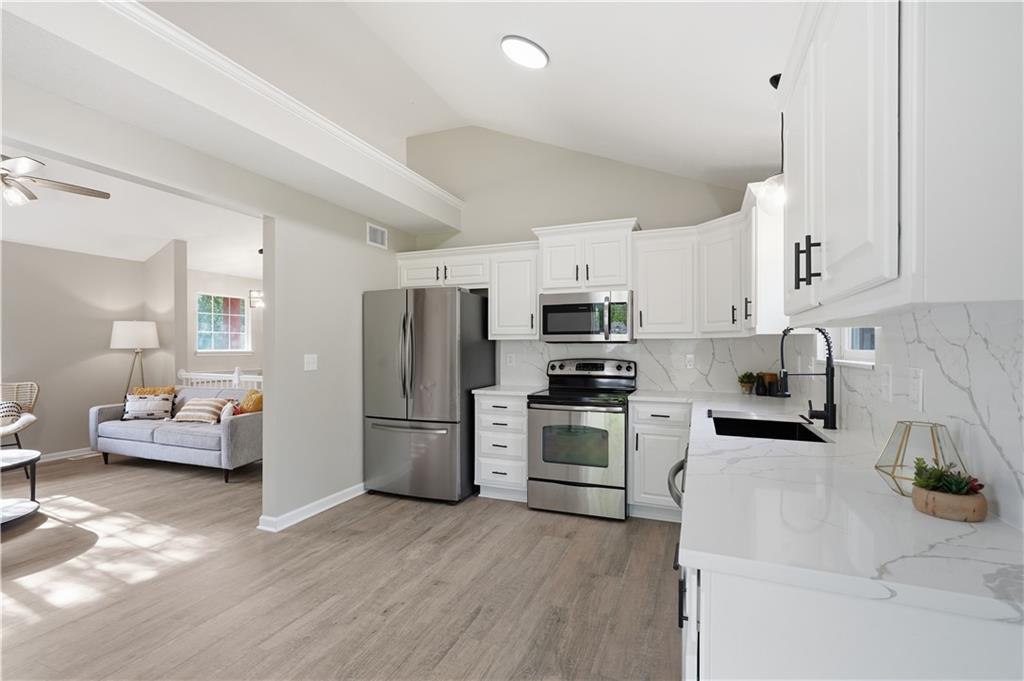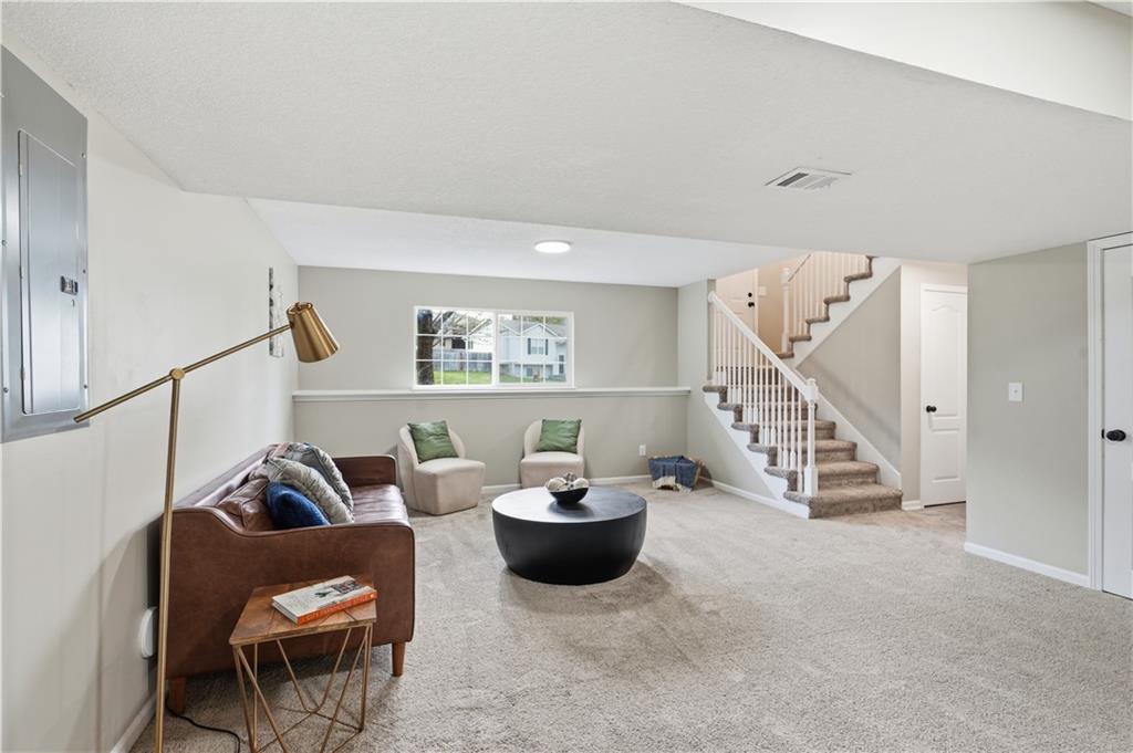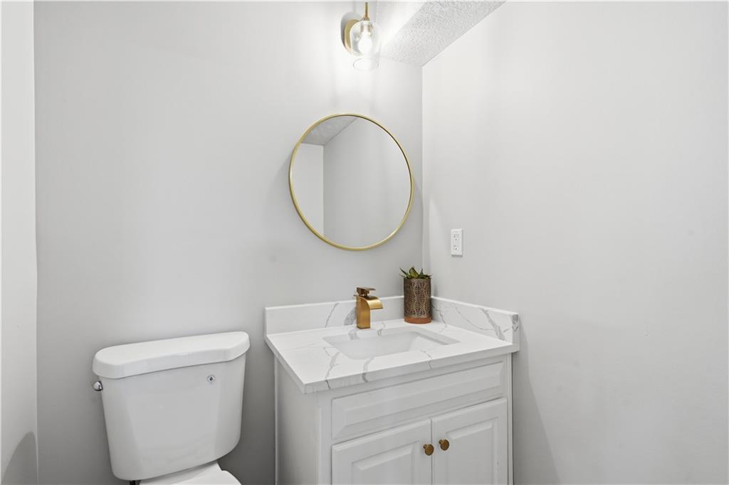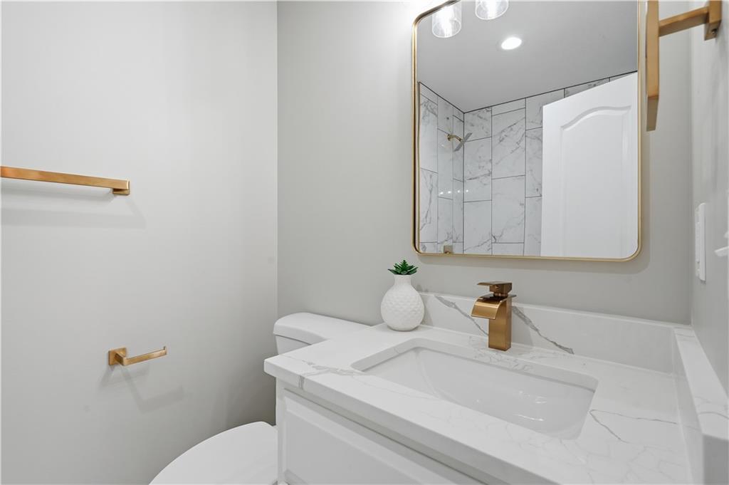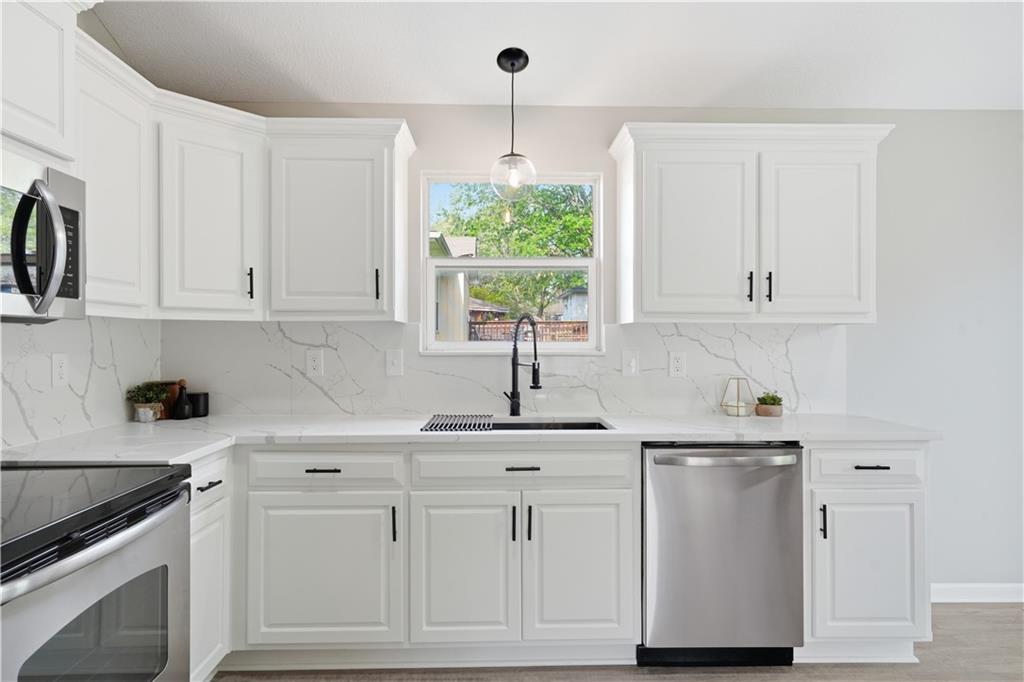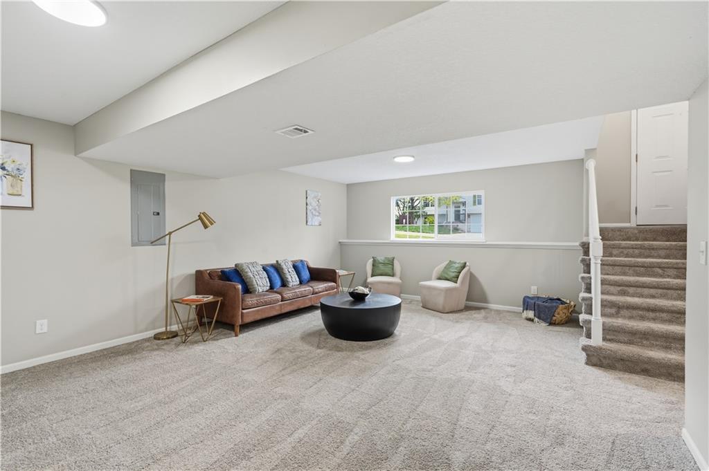 This fully renovated residence, situated on a corner lot in the heart of town, offers an array of impressive features. From top to bottom, the home showcases a sparkling new aesthetic, thanks to numerous recent upgrades. The exterior showcases a new roof, gutters, paint, and cedar accent siding, ensuring a striking appearance. Inside, the main level presents new flooring throughout, updated fixtures, a modernized kitchen with new appliances, new HVAC, and renovated bathrooms. The main living area features vaulted ceilings and a newly constructed fireplace, while the primary suite offers a walk-in shower, double vanity, and spacious walk-in closet. Two additional bedrooms and a full bathroom are located across the hall, and the lower level provides a spacious living area and half bath ideal for entertainment or flexible use.