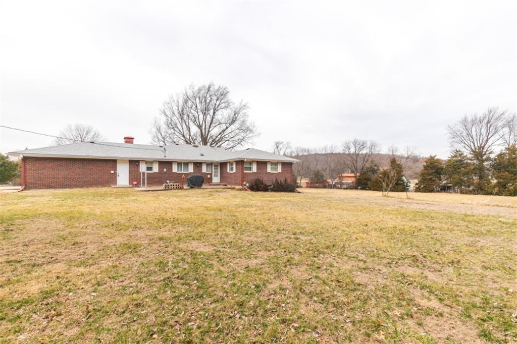 ENJOY THE FEEL OF COUNTRY AND THE SUNSET FROM A LARGE PICTURE WINDOW IN THIS CUSTOM BUILT ONE OWNER HOME HONORABLY NAMED "SUNSET RISE" BY ITS OWNER. THIS LEAVENWORTH ALL BRICK TRUE RANCH SITS ON 2.8 ACRES ON THE NORTH SIDE OF TOWN! Over 3600 square feet of living area in this ranch w/3 car garage parking in home (2 on main level and 1 in basement plus a carport) and 3 car detached garage/workshop w/second story, new roof, electric service, insulated walls & ceiling on first story. Home is loaded w/ special features: Beautiful oak stained kitchen/great room cabinets. All doors on main level are oak veneer and beautifully stained. All the floors except the kitchen/laundry/bath rooms on main floor are oak hardwood floors and in great condition. Great room on main level w/real WBFP and big cedar beams. Home has Anderson double pane windows plus Anderson storm windows, home exterior surrounded by king size brick, native limestone windowsills, "The Wall" that separates the Great Room/Kitchen boast solid oak paneling & cabinetry w/12" cabinets throughout the wall. Central Vac System. Majority of the basement is finished w/ family room, rec area, 4th non-conforming bedroom, storage areas and oversized single garage and carport. Will have new pictures by Monday!