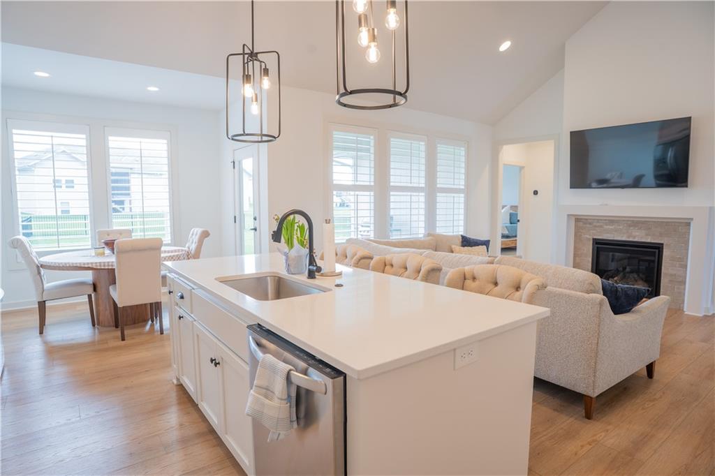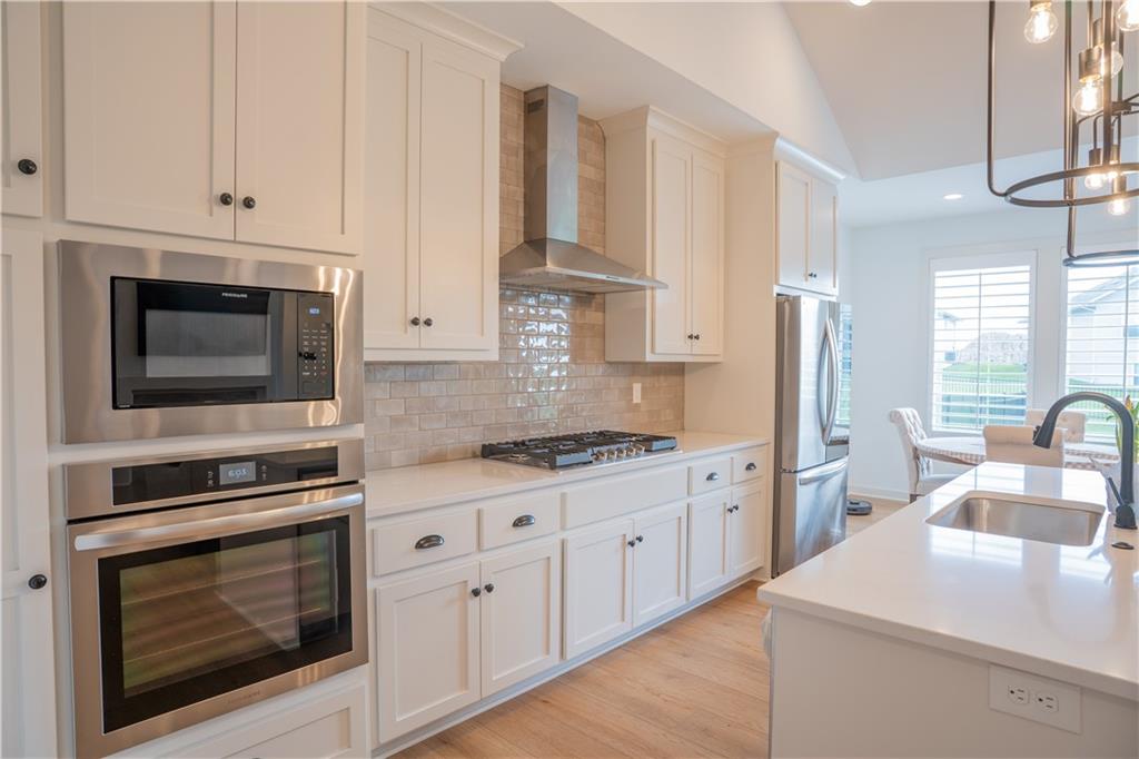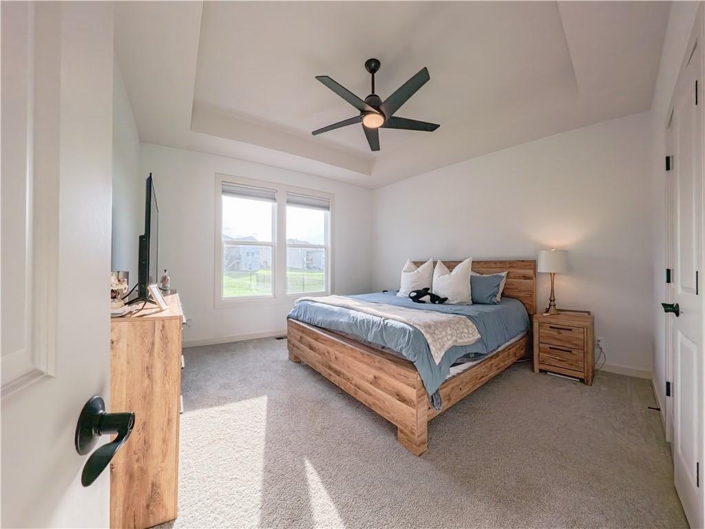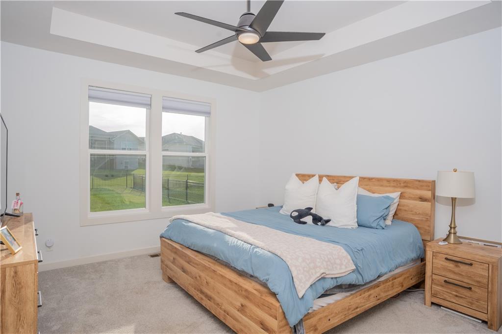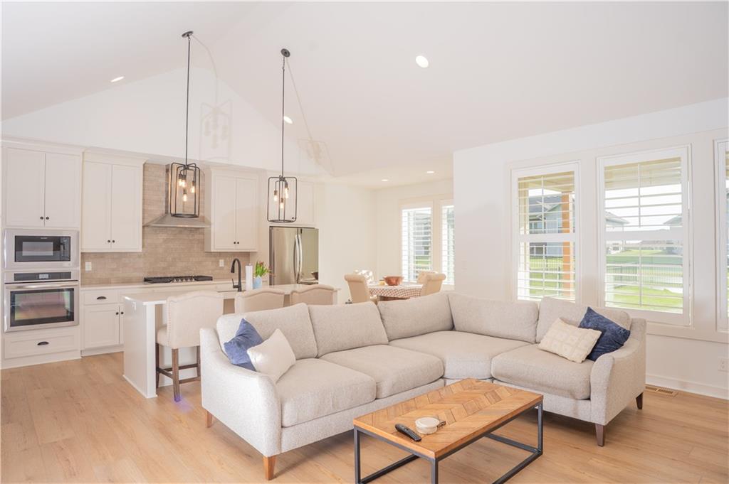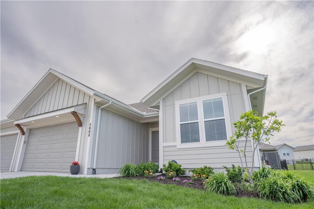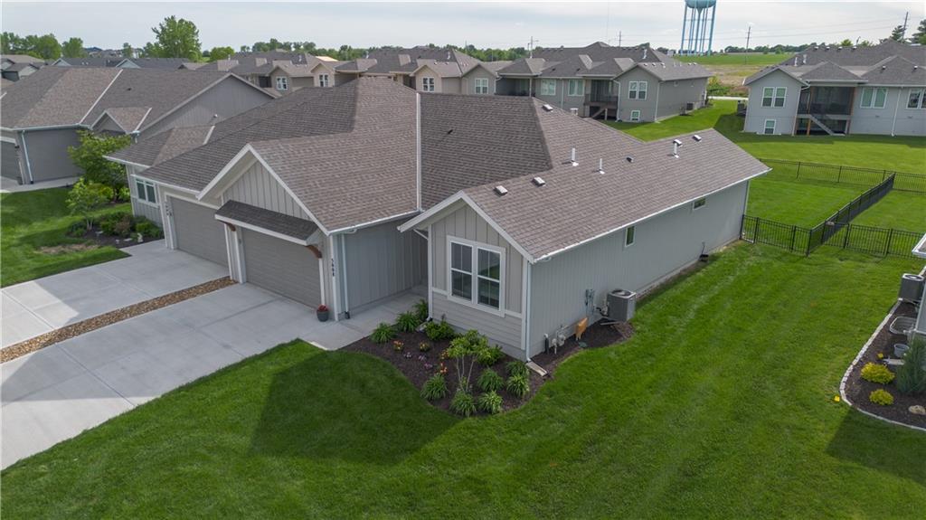 Stunning reverse-story home located in a cul-de-sac; move-in ready. Highlights include a spacious great room with gas fireplace and vaulted ceilings, a gourmet kitchen with gas cooktop, walk-in pantry, and large island. Kitchen and great room feature plantation shutters. The main-level owner’s suite offers a separate tub and shower, double vanities, and a walk-in closet. A second bedroom, full bath, laundry room, and mudroom complete the main floor. Bedroom blinds installed. Fresh paint in whole house. New lower level carpet. The finished lower level features a large rec. room, third bedroom, third full bath, and generous storage space. Fenced back yard. In-ground lawn irrigation. HOA covers lawn care, snow removal over 2", and exterior maintenance including roof, gutters, and paint. Falcon Lakes is a beautiful golf course community with excellent highway access—just 10 minutes from the Legends and about 30 minutes from the airport, downtown, or Lawrence. Served by Basehor-Linwood Schools. The property is being sold "AS IS".