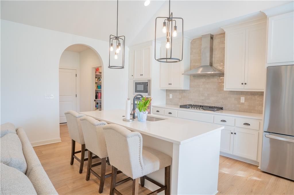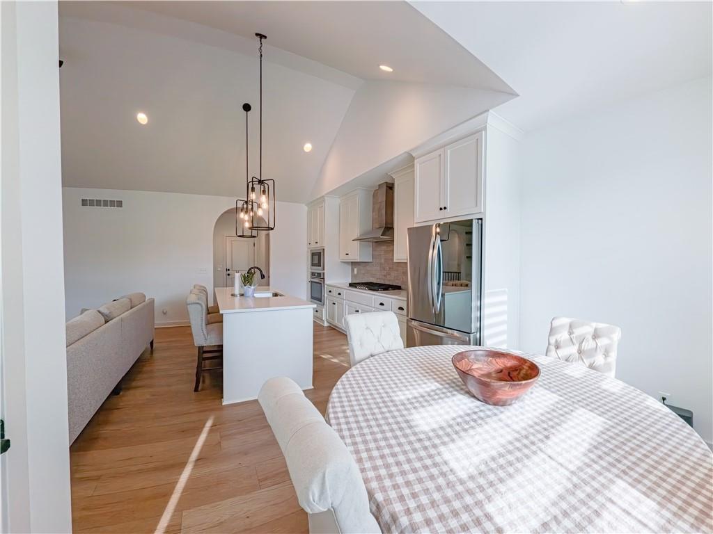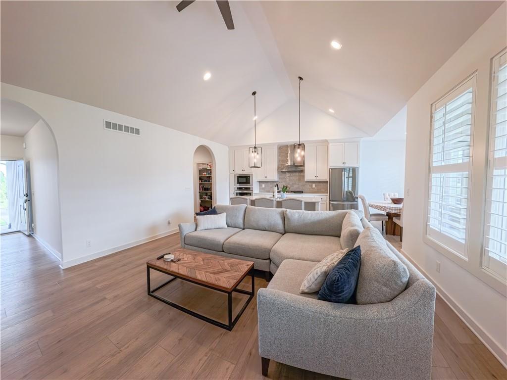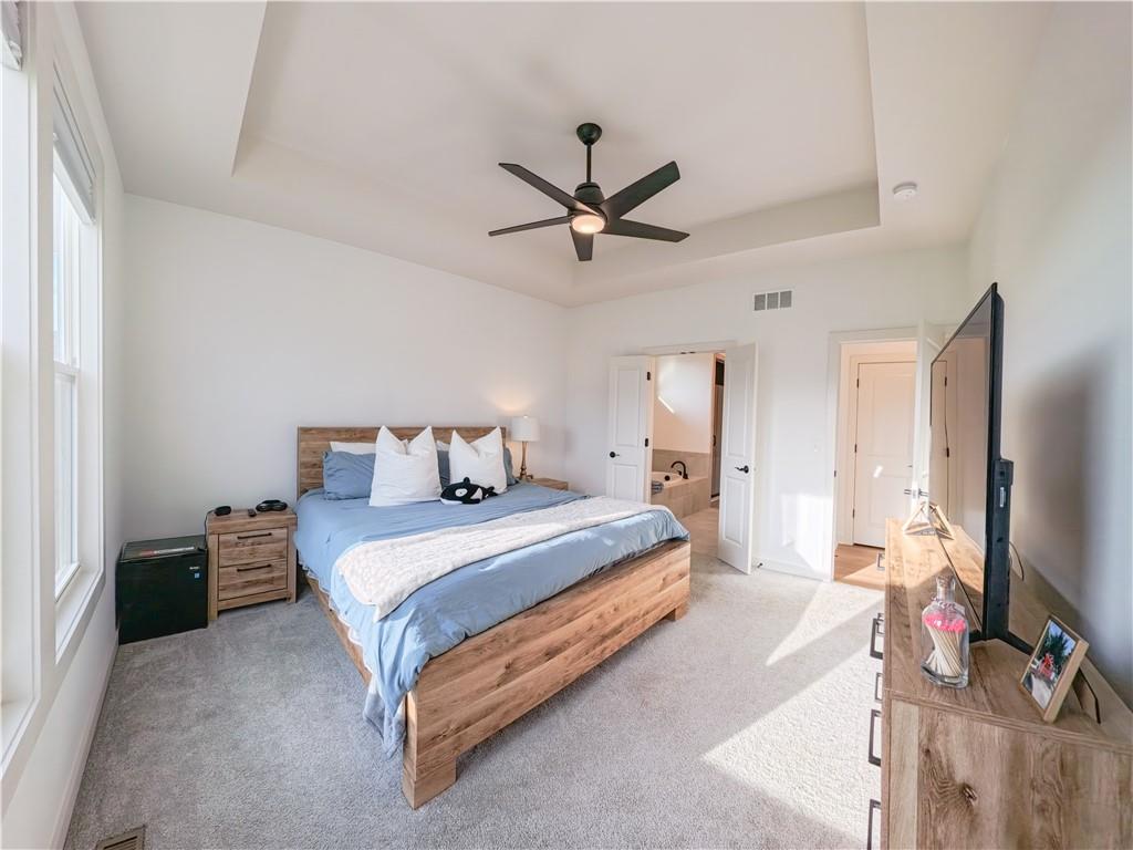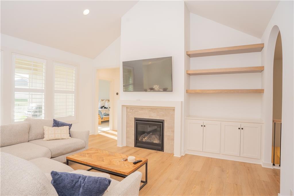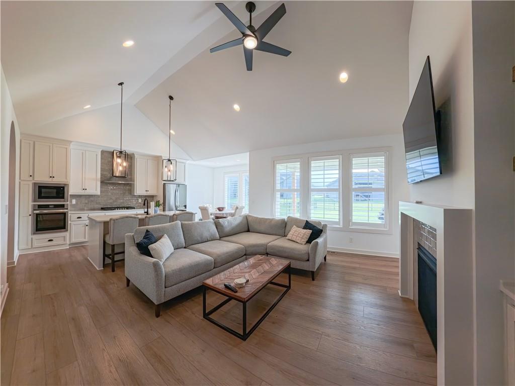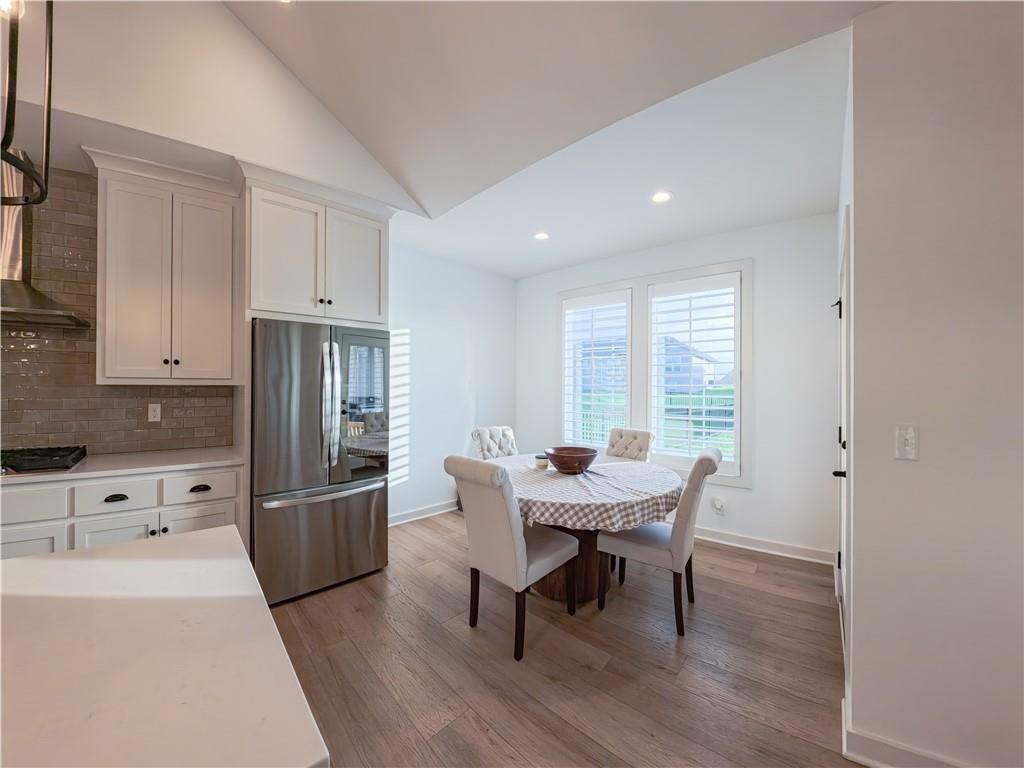 Stunning reverse-story home located in a cul-de-sac; move-in ready. Highlights include a spacious great room with gas fireplace and vaulted ceilings, a gourmet kitchen with gas cooktop, walk-in pantry, and large island. Kitchen and great room feature plantation shutters. The main-level owner’s suite offers a separate tub and shower, double vanities, and a walk-in closet. A second bedroom, full bath, laundry room, and mudroom complete the main floor. Bedroom blinds installed. Fresh paint in whole house. New lower level carpet. The finished lower level features a large rec. room, third bedroom, third full bath, and generous storage space. Fenced back yard. In-ground lawn irrigation. HOA covers lawn care, snow removal over 2", and exterior maintenance including roof, gutters, and paint. Falcon Lakes is a beautiful golf course community with excellent highway access—just 10 minutes from the Legends and about 30 minutes from the airport, downtown, or Lawrence. Served by Basehor-Linwood Schools. The property is being sold "AS IS".