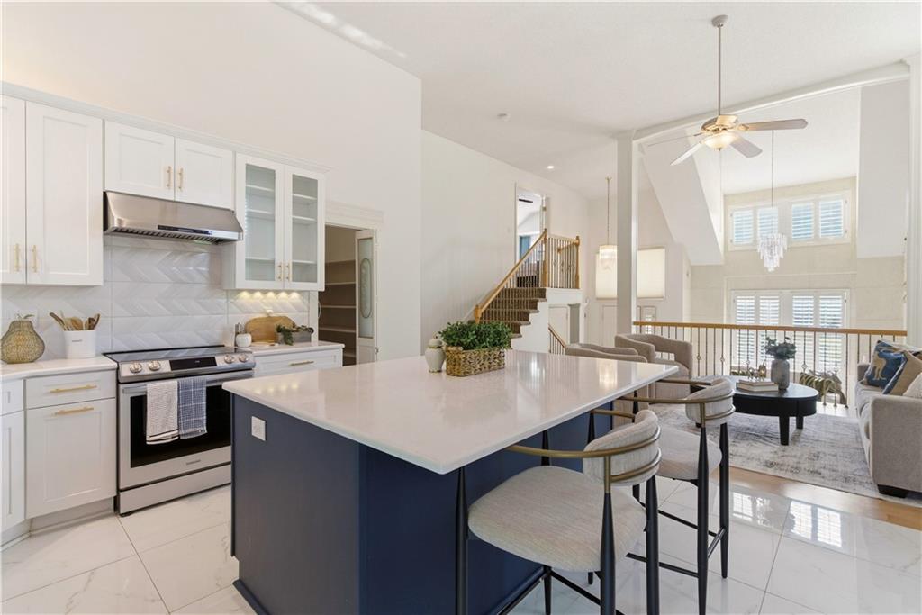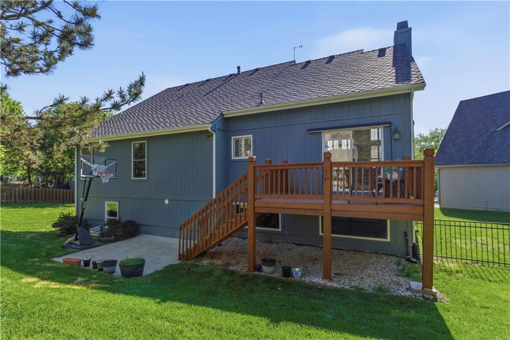 Chic, Fun, and Fully Updated! Ideally situated at the end of a quiet cul-de-sac, this unique custom-built home offers over 3,200 sq. ft. of finished living space. The interior is defined by a dramatic open floor plan featuring soaring 13-foot ceilings and high-quality finishes like Anderson windows and silent floor construction & plantation shutters. The heart of the home is a dazzling, remodeled kitchen complete with an expansive center island, new cabinetry, stylish backsplash, modern lighting, and premium appliances. Retreat to the totally private primary suite, which occupies its own dedicated level. This sanctuary features double-door entry, vaulted ceilings, a massive walk-in closet, and a spa-like bath with a jetted tub, sit-down vanity, and a custom shower with seating. The versatile layout includes two additional bedrooms on the main level and a lower-level bedroom with a bonus room, perfect for guests or a home office. Entertainment options abound in the huge family/media room, which comes ready for movie night with a projection screen TV. Behind the scenes, enjoy peace of mind with a brand-new roof and a high-end Trane furnace with zoned controls and a Honeywell humidifier. Step outside to a fully fenced lot, perfect for play or relaxation, with the basketball goal included! This move-in-ready gem combines architectural character with top-tier mechanicals in a location that can't be beat. Located in award winning Blue Vally Schools and Close to Shops at Prairie Fire, Blue Hawk and Corbin Park and easy highway access. Come check this beautiful residence out. So much space for the $$$