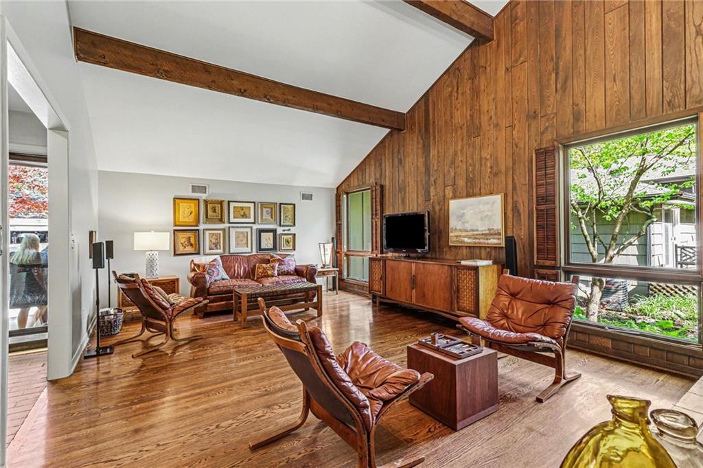 Welcome home to this Prairie Village midcentury ranch home, available on the market for the first time in its history. One family loving designed and built the home in 1964 and has enjoyed decades in this oasis nestled into the heart of PV ever since. A covered front stoop and formal entryway welcome you with design nods to midcentury roots. Enter to the stunning living room with warm wood detail and statement, one-of-a-kind walk around fireplace. Oversized windows welcome in natural light. Easy flow into the dining room finds more light and bright space with a wall of floor to ceiling windows. Exposed brick fireplace offers texture and visual interest. Kitchen is meticulous with updated appliances, double ovens, plenty of cabinet and counter space for prep and entertaining and a breakfast nook you won’t want to leave with beautiful views of the backyard. Gleaming hardwoods throughout and peaceful views from every room. 3 bedrooms on the main level that include a primary bedroom with an ensuite bath. Don’t miss the bedroom windows that make simple bedrooms feel intentional and inviting. Large hall bathroom. Basement is the full footprint of the home and finished with rec room, music and workout space with built-ins, craft/hobby area plus generous storage area and workshop. Thoughtful and intentional design continues in the backyard. A natural landscape fence offers privacy while keeping nature and serenity at the forefront. Hardscaped paths invite you to slow down and enjoy the surroundings. Front circle driveway leads to a two car garage tucked into lush greenery. The combination of unique design, the weaving of nature with the home’s interior and the opportunity to call the heart of Prairie Village home awaits you here. This home offers a special opportunity for a lifestyle that doesn’t come around everyday. Don’t wait to make this one yours.
