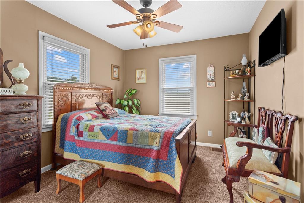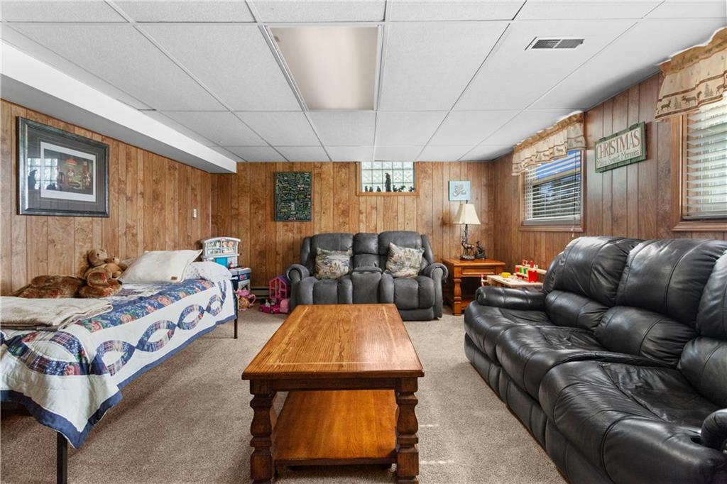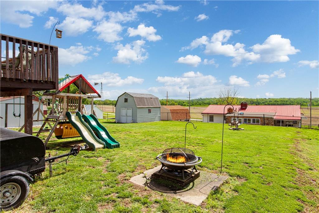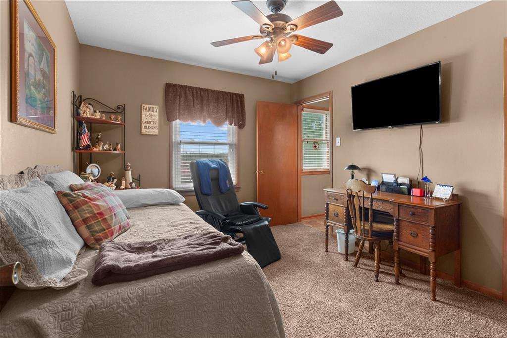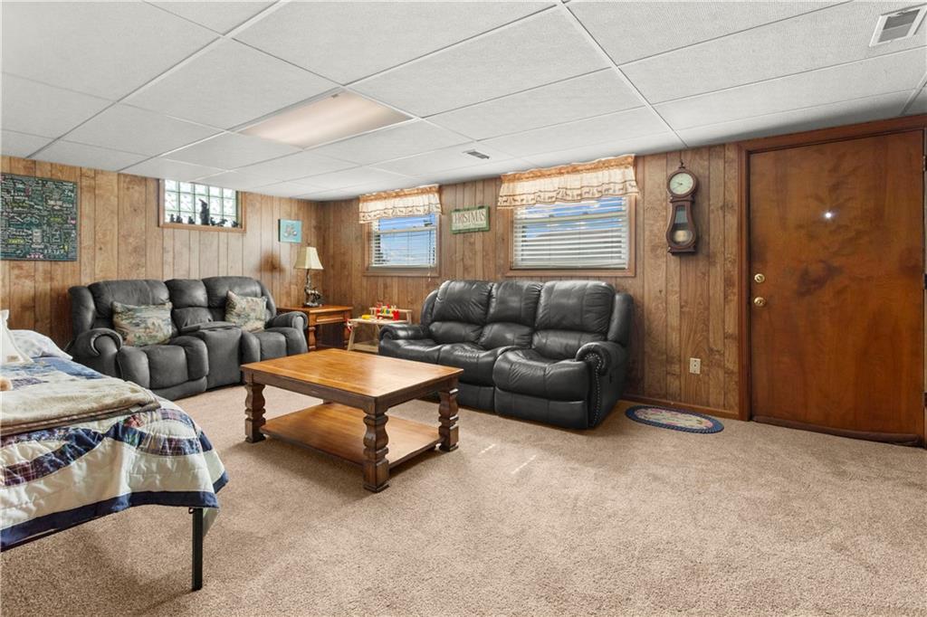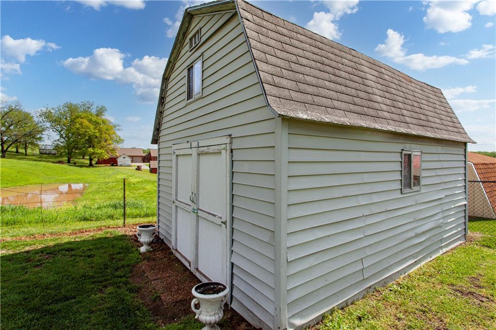 Enjoy the perfect balance of peaceful country living with the convenience of a short commute to the city in this move-in ready true ranch, offering generous space and thoughtful updates throughout. The spacious kitchen is ideal for everyday dining and entertaining, flowing seamlessly into a large, inviting living room. The main level features three bedrooms and a beautifully renovated bathroom, along with stainless steel appliances that remain with the home. The finished basement expands your living space with a sizable family room, a fourth non-conforming bedroom, and a second fully remodeled bathroom. You’ll also find a newly installed kitchenette—complete with a second refrigerator that stays—making it perfect for guests, multi-generational living, or additional convenience. There’s ample room for a craft area, workout space, and a laundry room with excellent storage options. A water softener is also installed and will remain with the home. From the rear exterior of the home, you’ll find a fully enclosed concrete safe room with all four walls constructed of cement—ideal for use as a storm shelter, workshop, or additional storage space. Spectrum Fiber has been installed and the hub is located in the garage. Step outside to a recently refinished deck, perfect for morning coffee or evening relaxation, overlooking a spacious backyard with two sheds and peaceful farmland views beyond. The home’s exterior features low-maintenance vinyl siding and brick, and all sewer lines were replaced in October 2020 for added peace of mind. The play-set in the back can stay! Located in the West Platte R-II School District, this property offers easy access to KCI Airport, the Legends shopping area, Zona Rosa, Weston, and Platte City, Leavenworth and Lansing. Situated on a quiet dead-end street, this charming home is one you won’t want to miss.