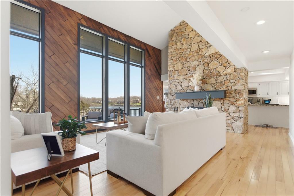 Discover the rare opportunity to own a premier first-tier property at 222 NW Locust St, perfectly positioned within the prestigious Lakewood community. This stunning 4-bedroom, 3-bathroom reverse 1.5-story home boasts a unique, light-filled floor plan that maximizes its coveted lakefront location, offering panoramic water views and seamless walk-out access to the shore. The interior features three cozy fireplaces, including one in the primary suite, while the expansive 4,580 square feet of living space provides an ideal layout for both grand entertaining and comfortable daily living. Residents enjoy the ultimate resort lifestyle with access to Lakewood’s world-class amenities—including a championship golf course, multiple swimming pools, tennis courts, and a private beach—all while being served by the award-winning Lee's Summit school district. Whether you are enjoying a quiet evening by the water or hosting friends in the finished walk-out basement, this home represents the very best of lakeside living in Lee's Summit.
