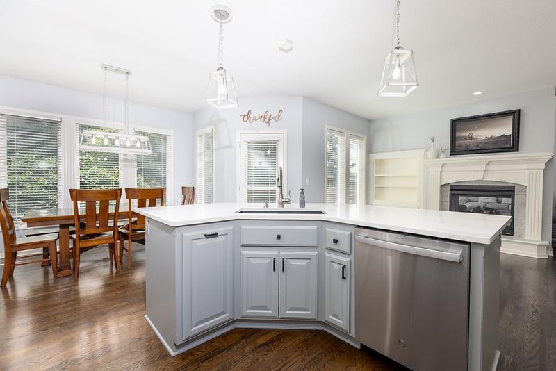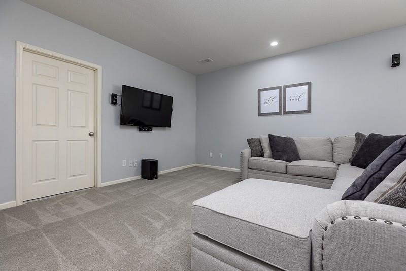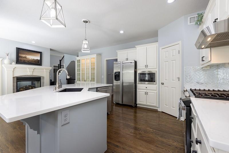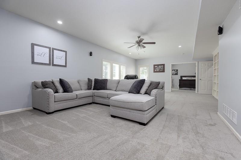 Your search is over! Everything that you want is right here in this very well-maintained, 1 1/2 story home! You will love Woodneath Farms with the spectacular amenities in the neighborhood including tennis courts, scheduled events, walkability to the pool, Mid-Continent Public Library and Shoal Creek Elementary school. Move-in ready is not an exaggeration! Stunning and comfortable this 5 bedroom, 4 1/2 bathroom home also includes a separate media room (2022), recreation room, 5th bedroom, 4th bathroom and plenty of storage in the walkout lower level. Hearth room, island kitchen with see-through fireplace was renovated in 2020. Upgrades include painted cabinetry, quartz countertops, subway tile backsplash, fireplace tile and new microwave (new gas range was added in 2022). Be sure to check out the large walk-in pantry! 7ft in length! Pleasing, stained hardwood path from front door to kitchen, formal dining/music room, hallway to garage, half bath, kitchen and table area were refinished in 2022. New carpet throughout was added in 2022. NEW roof and gutters in 2024. NEW Lennox furnace in 2023 (New Trane A/C and evaporator coil in 2017). Repainted garage, floor boards and enameled floor in 2023. AND, check out the room sizes! You will be very glad you put this home on your "MUST SEE" list!