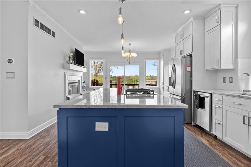 Completely updated and truly move-in ready, this home offers the best of lake living—without the hassle. The Villa HOA takes care of lawn care, so you can spend more time enjoying everything the lake lifestyle has to offer. Natural light fills the home through expansive north-facing windows, perfectly framing stunning lake views. The main level features a spacious primary suite, a second bedroom with its own en suite bath—ideal for guests or in-laws—and convenient main floor laundry. The fully renovated kitchen is designed to impress, showcasing custom cabinetry with loads of storage, upgraded stainless steel appliances, a gas cooktop, quartzite countertops, and versatile space for casual dining or entertaining. The walkout lower level is built for hosting, complete with a full wet bar, refrigerator, and a sink with a glass rinser. There’s ample room for recreation—pool and ping pong tables are included—along with a comfortable space to relax and watch the game, all while enjoying scenic lake views from the covered deck. Evenings are best spent outdoors around the fire pit with s’mores, or casting a fishing line right from your backyard. Beyond the home, the community of Lake Winnebago offers exceptional amenities, including access to the yacht club, seasonal events and entertainment, indoor and outdoor gathering spaces, equestrian facilities, parks, tennis and pickleball courts, and scenic walking trails. A new resort-style pool with competition lanes is set to be completed in 2026. Villa residents also enjoy exclusive perks such as private docks, complimentary use of villa pontoons, and full lawn and sprinkler system maintenance. Owner agent. All furniture available to stay and negotiable.