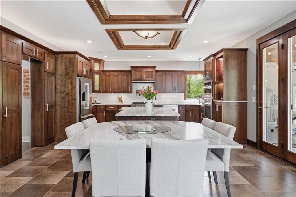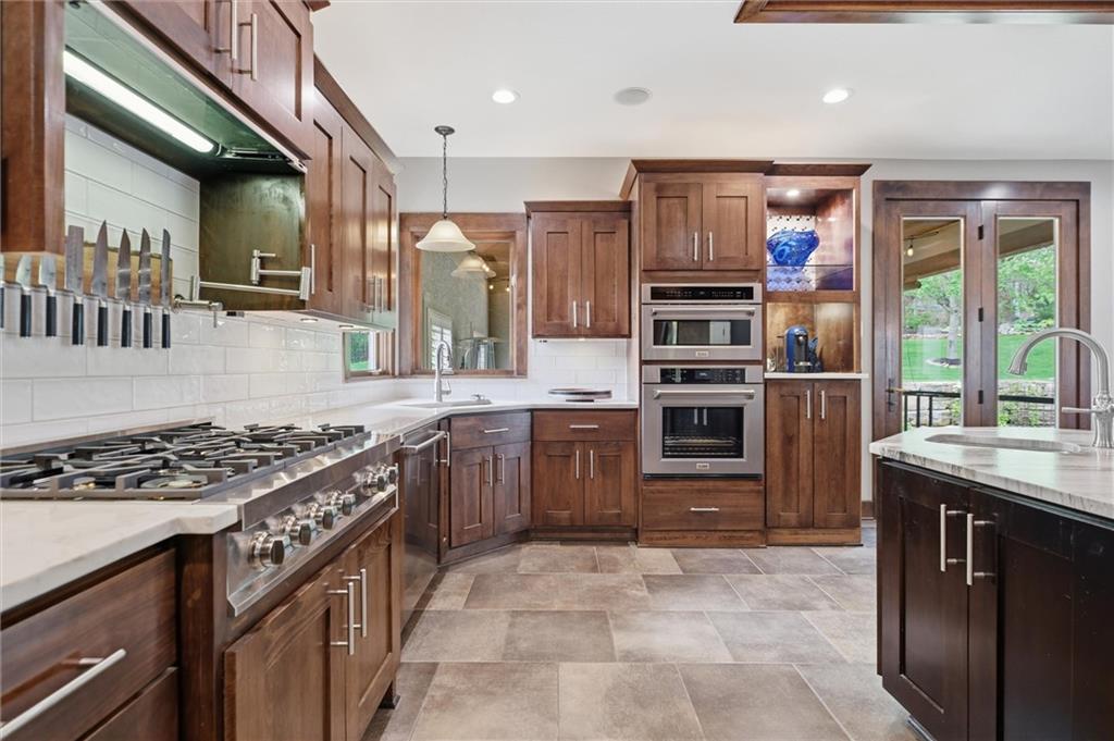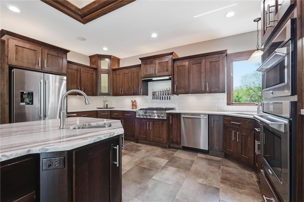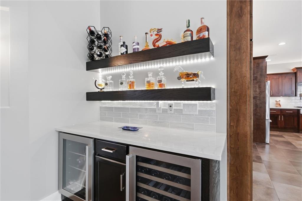 Welcome to a truly elevated living experience—where thoughtful design meets high-end upgrades at every turn. This stunning home features a chef’s dream kitchen with premium Bosch and Z-Line appliances, a prep sink, pot filler, glass washer, Brazilian marble island, and a fully equipped coffee station. Entertain with ease at the bar with wine/beverage refrigerator and expansive outdoor kitchen and living space. The open main level shines with new hardwood floors, fresh paint throughout, and smart WiFi dimmable lighting paired with surround sound inside and out. Enjoy year-round comfort with a high-end Bosch furnace and tankless water heater. The luxurious primary suite offers, his & hers walk -in closets, heated bathroom floors, a spa-like shower with multiple jets, and custom vanity with hidden power features. The fully finished lower level is ideal for multi-generational living or guests, complete with a second full kitchen, private garage entry, ADA-compliant features, and its own laundry hookup. From the oversized garage with cabinets and epoxy floor to the new concrete driveway apron, no detail has been overlooked. This is a rare opportunity to own a move-in ready home with luxury, function, and flexibility—schedule your private showing today before it’s gone!