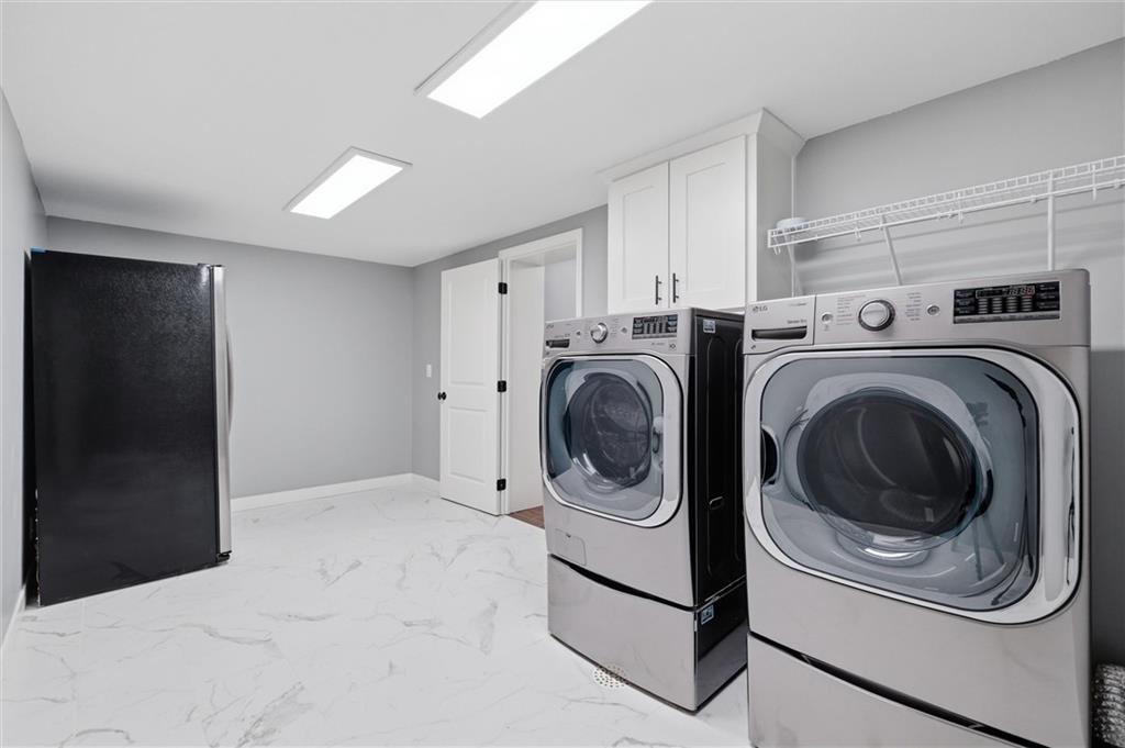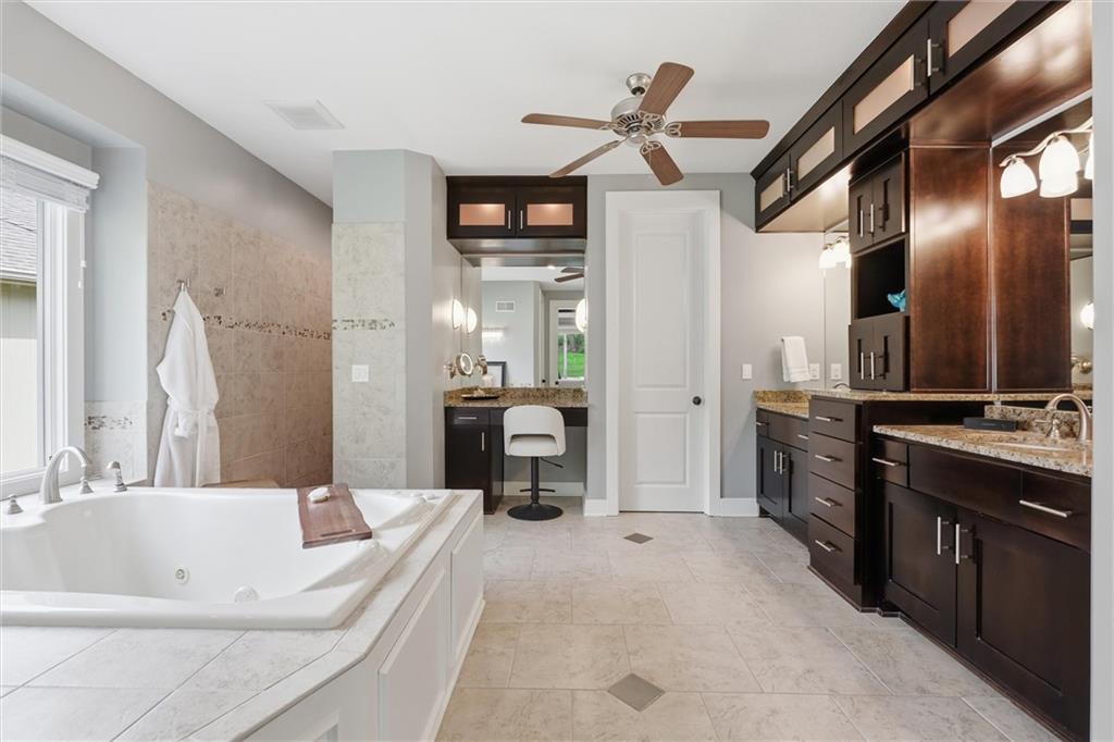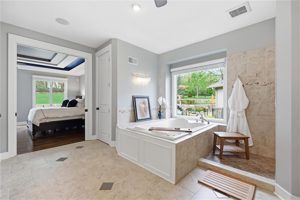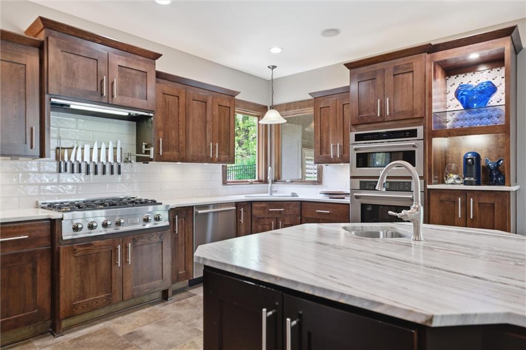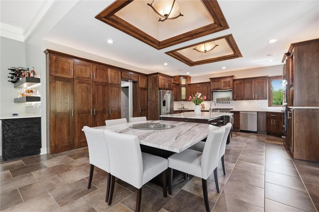 Welcome to a truly elevated living experience—where thoughtful design meets high-end upgrades at every turn. This stunning home features a chef’s dream kitchen with premium Bosch and Z-Line appliances, a prep sink, pot filler, glass washer, Brazilian marble island, and a fully equipped coffee station. Entertain with ease at the bar with wine/beverage refrigerator and expansive outdoor kitchen and living space. The open main level shines with new hardwood floors, fresh paint throughout, and smart WiFi dimmable lighting paired with surround sound inside and out. Enjoy year-round comfort with a high-end Bosch furnace and tankless water heater. The luxurious primary suite offers, his & hers walk -in closets, heated bathroom floors, a spa-like shower with multiple jets, and custom vanity with hidden power features. The fully finished lower level is ideal for multi-generational living or guests, complete with a second full kitchen, private garage entry, ADA-compliant features, and its own laundry hookup. From the oversized garage with cabinets and epoxy floor to the new concrete driveway apron, no detail has been overlooked. This is a rare opportunity to own a move-in ready home with luxury, function, and flexibility—schedule your private showing today before it’s gone!
