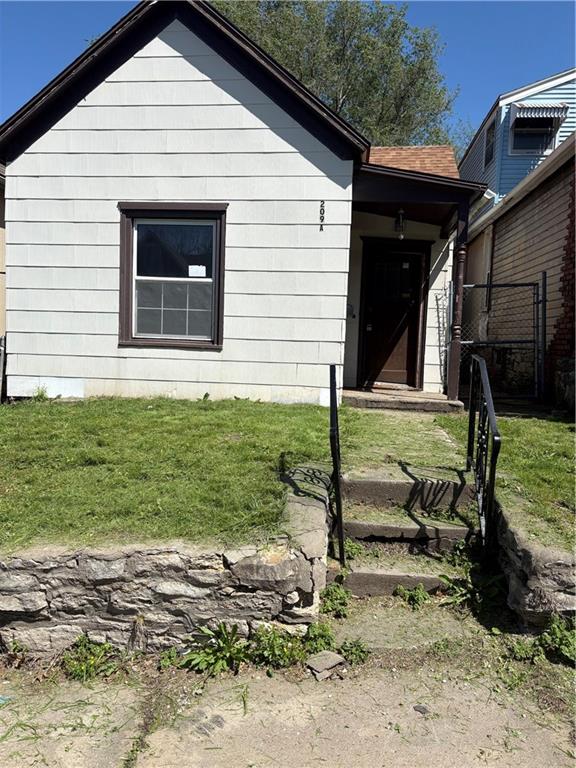 2 BDRM, 1 BTH BUNGALOW HOME W/NEW LAMINATE FLOORING THRUOUT. ROOF IS UNDER 7RS OLD, ORIGINAL WOOD WORK THRUOUT, HUGE LIVINGROOM AND DINING ROOM! LAUNDRY HOOKUPS IN BASEMENT, REFRIGERATOR & ELECTRIC STOVE/OVEN STAY WITH SALE OF PROPERTY. NEW VANITY IN BATHROOM, ENCLOSED BACKPORCH OFF KITCHEN OVERLOOKING PARTIALLY FENCED IN BACKYARD. OFFSTREET PARKING IN BACK OFF ALLEY THAT RUNS BEHIND THE HOUSES. BEING SOLD AS-IS!