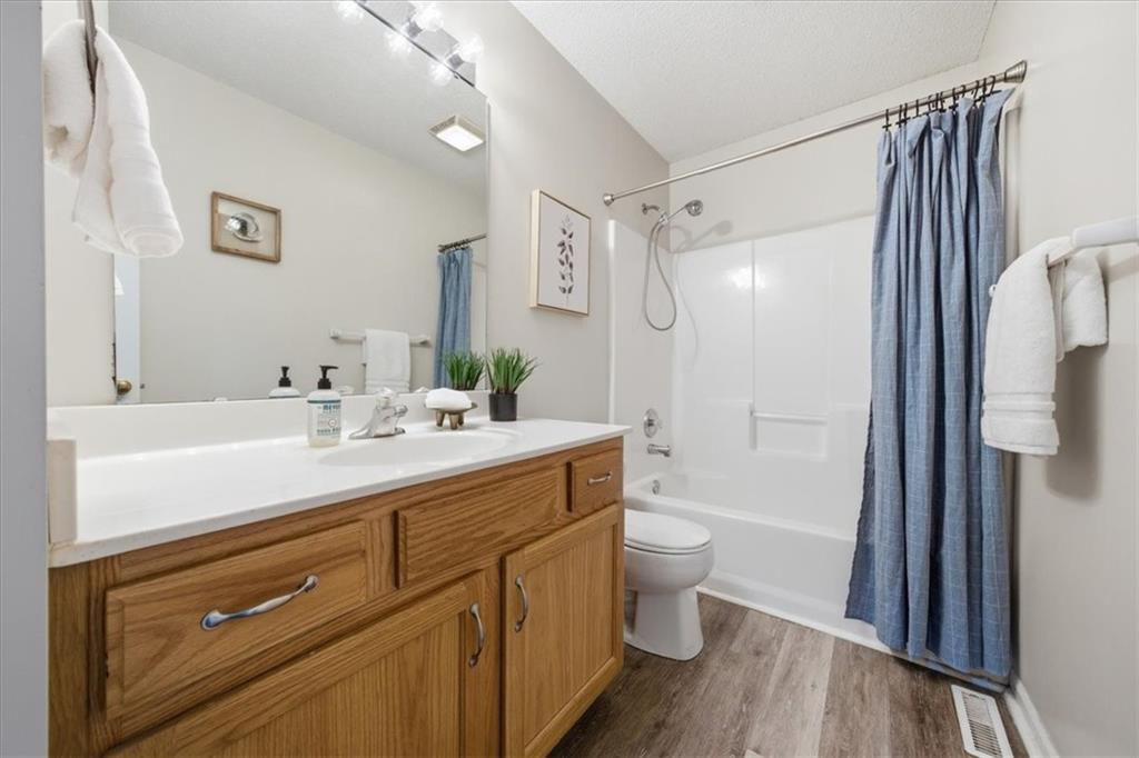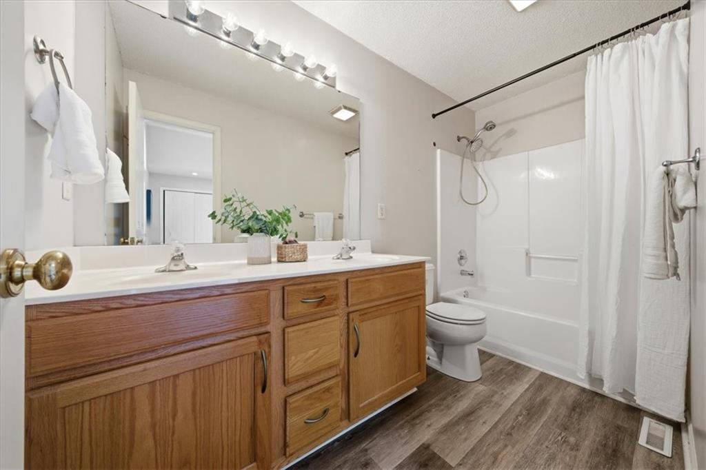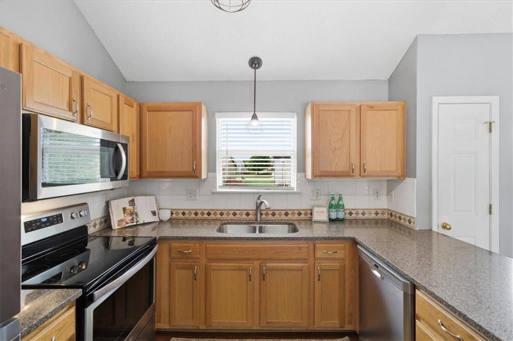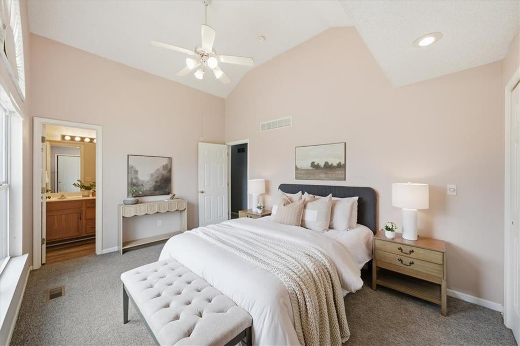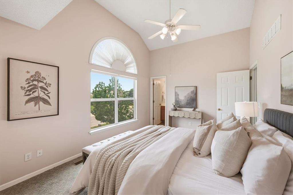 With an airy, open layout and soaring vaulted ceilings, this front-to-back split offers an inviting space that feels both spacious and comfortable from the moment you walk in. The main living area centers around a cozy fireplace and flows seamlessly into the kitchen and dining spaces, creating the perfect setting for everyday living and entertaining. The kitchen features elegant quartz countertops, a convenient pantry, and plenty of room to gather. Just off the dining area, step out onto the deck overlooking the fully fenced backyard, ideal for relaxing evenings, pets, or play. A patio below provides additional outdoor living space and easy access from the walkout basement. The primary suite also features a vaulted ceiling, along with generous double closets and a private en suite bath with a double vanity. The bright walkout basement with floor to ceiling windows adds flexibility for additional living space, recreation, or a home office while providing great indoor-outdoor flow to the patio and backyard. With thoughtful features, great natural light, and a fantastic Gardner location, this home offers comfort, space, and functionality all in one.