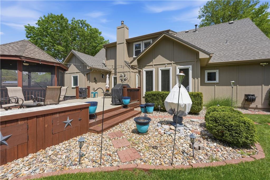 Welcome home to this beautifully updated 1.5-story residence. Featuring 4 bedrooms, 2 full baths, and 2 half baths. This home offers a spacious and flexible layout designed for comfortable living. The main-floor primary bedroom provides convenient, single-level living. The primary bathroom is well-appointed with double vanities, marble tub and a separate onyx shower for added comfort and convenience.The updated kitchen showcases painted cabinets, stainless steel appliances, and a functional layout perfect for everyday living and entertaining. On the main floor is also an office. Upstairs, you’ll find three large bedrooms and a full bath with a double vanity, along with a walk-in attic that provides excellent additional storage space. The finished basement includes approximately 800 square feet of living space and a half bath—ideal for a recreation room. An additional large unfinished area with built-ins offers the perfect space for hobbies, a workshop, or extra storage. Step outside to enjoy the expansive deck and charming screened-in gazebo with a ceiling fan. The backyard also includes a storage shed and a deck box for added functionality. A two-car garage completes the home. Recent upgrades include a new roof and 6 inch gutters installed in August 2025, offering peace of mind for years to come. With its thoughtful updates, generous space, and great indoor and outdoor features, this home is move-in ready and ready to impress.